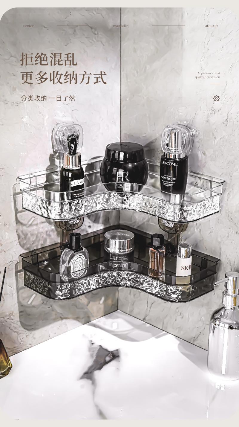 Suction cup corrugated bathroom corner shelf-transparent gray silver