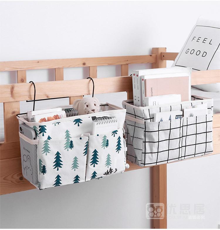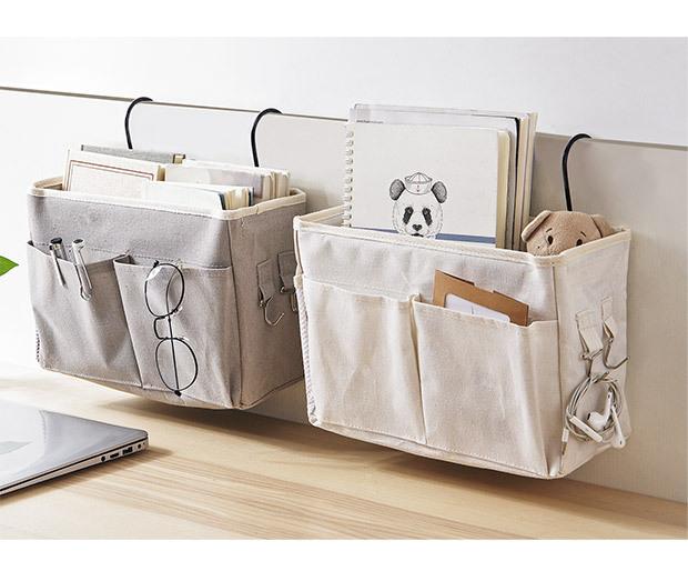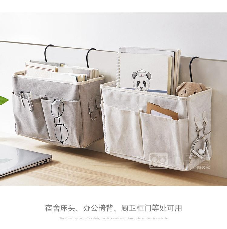 Compra Estante de almacenamiento nuevo de algodón y lino con doble gancho, bolsa de almacenamiento para artículos diversos, estante de almacenamiento para colgar junto a la cama del dormitorio de estudiantes, estante de almacenamiento de clasificación al por mayor en Joom.pro
