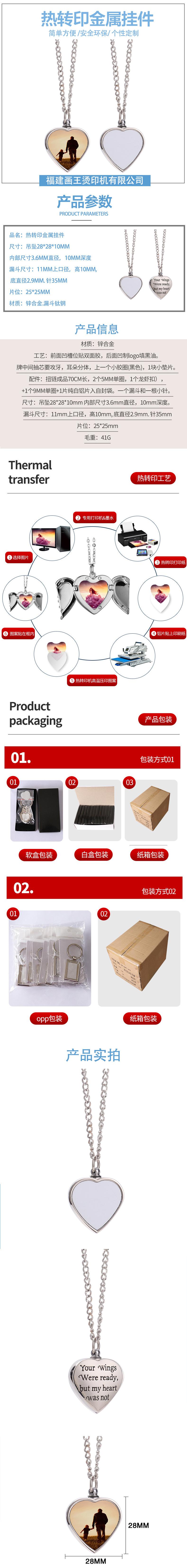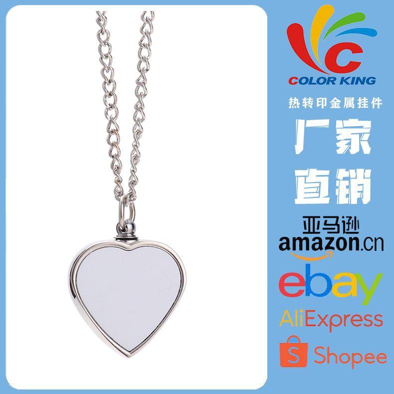 Suministro Transfronterizo Amazon Joyería Europea y Americana Collar de Cadena Plana Transferencia de Calor Pareja Metal Colgante en Forma de Corazón