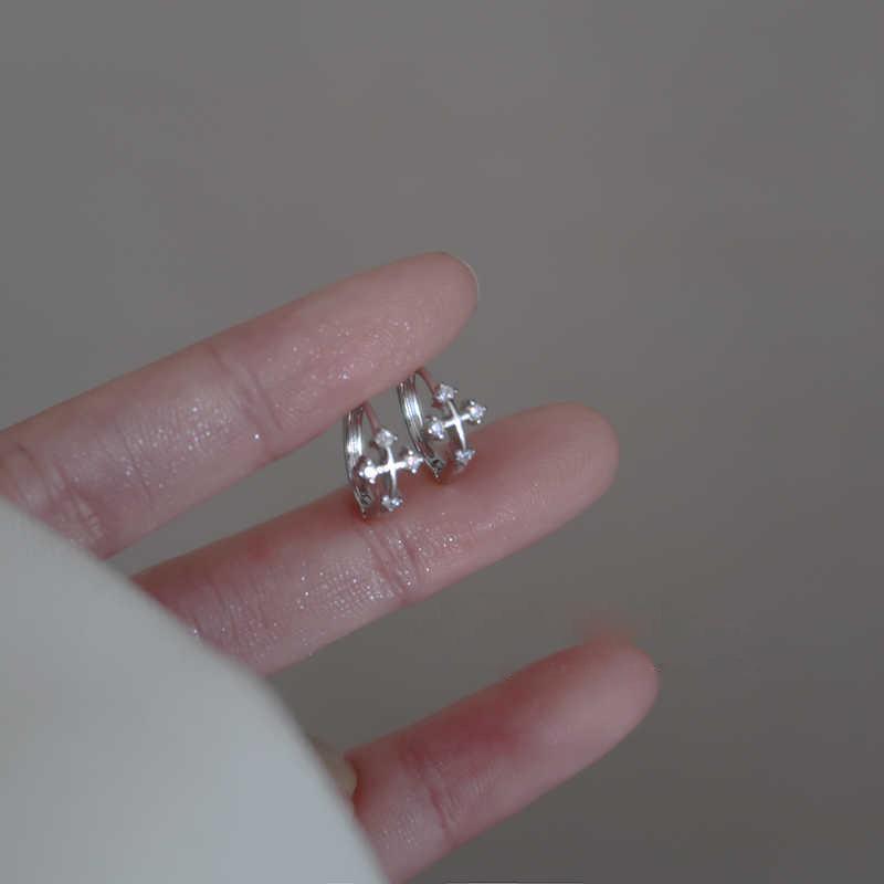 Pendientes de cruz con aguja de plata 925 pendientes de marea para mujer pendientes de nicho de alto sentido pendientes para mujer Corea del Sur 2024 nuevo