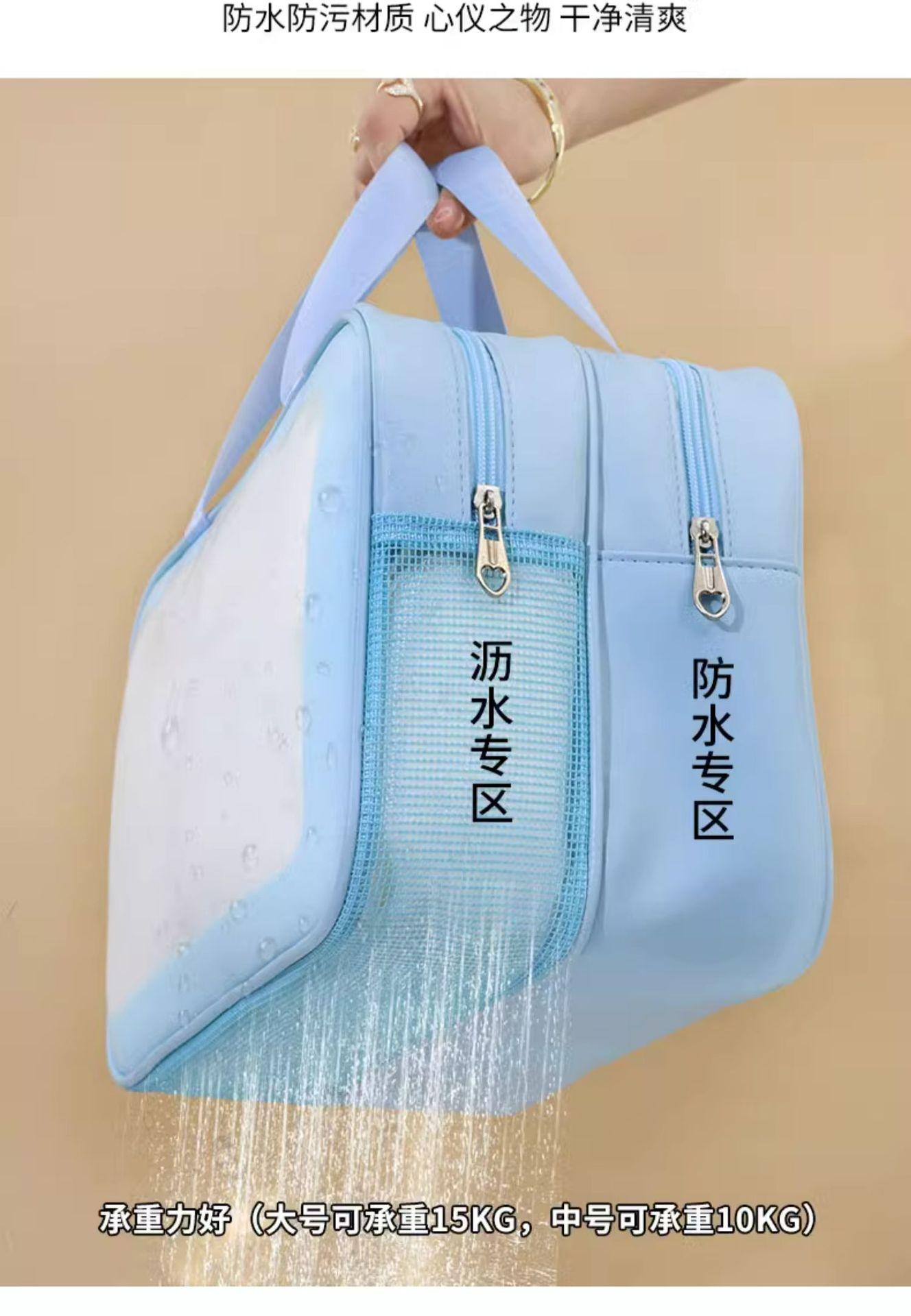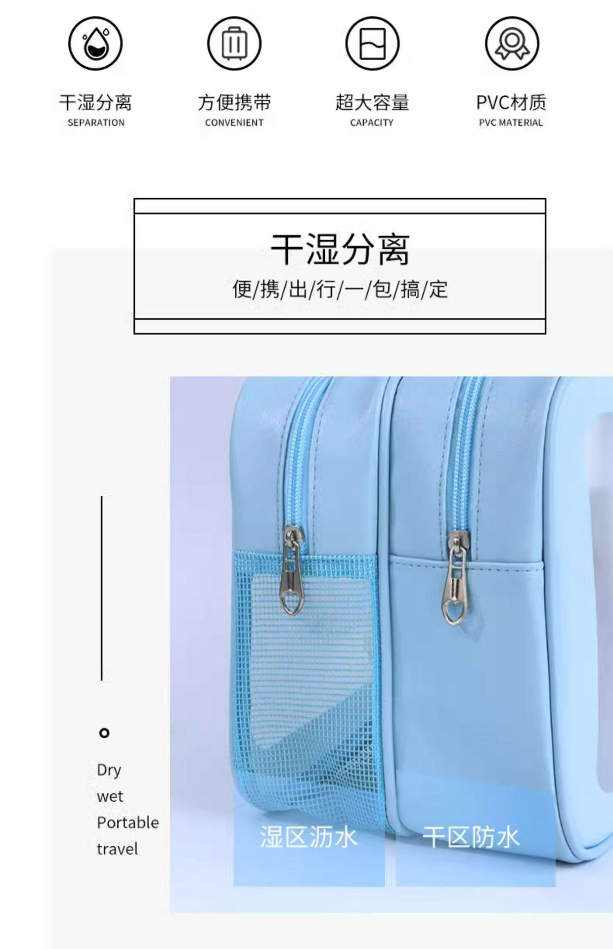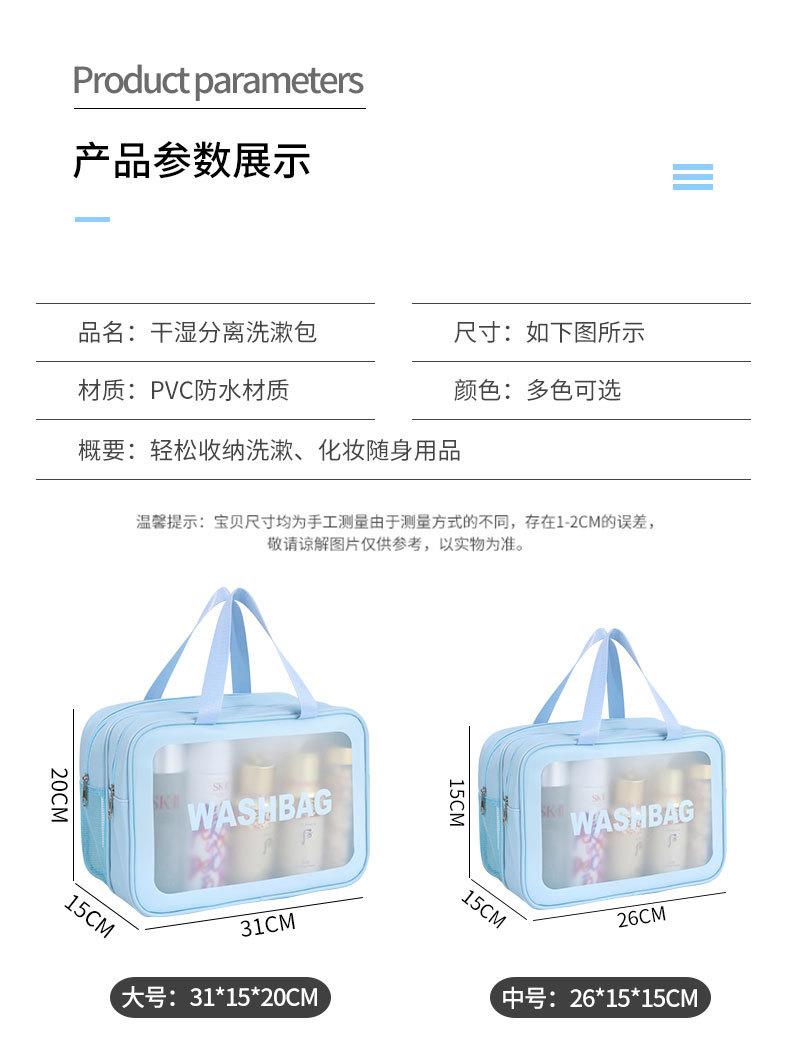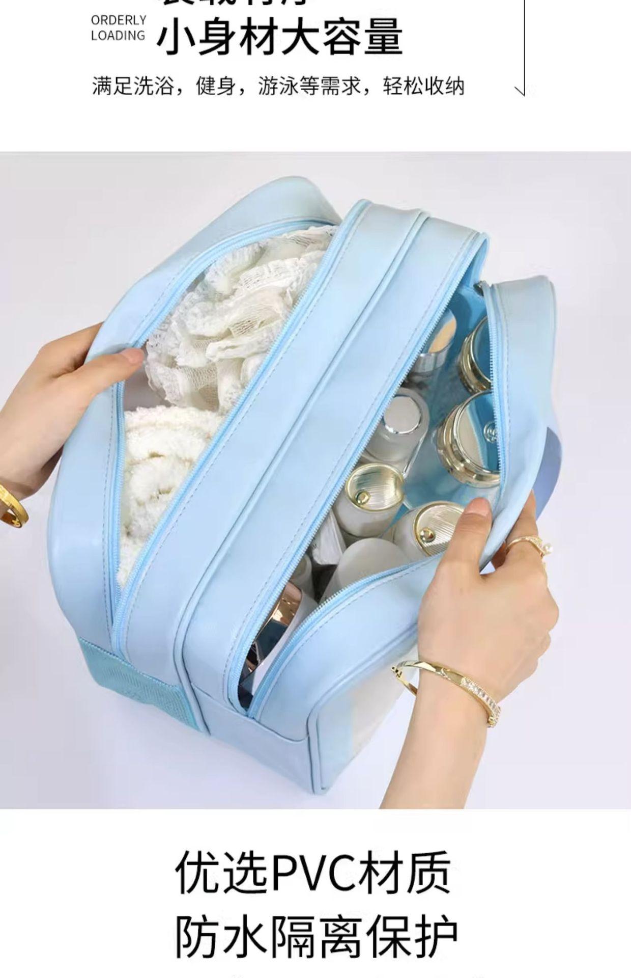Large size - haze blue - dry and wet separation [double layer - double hand carry] large capacity cosmetic bag...