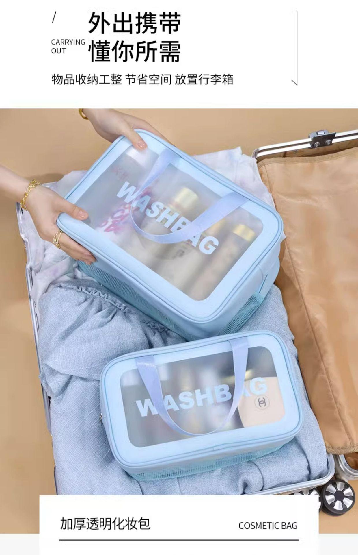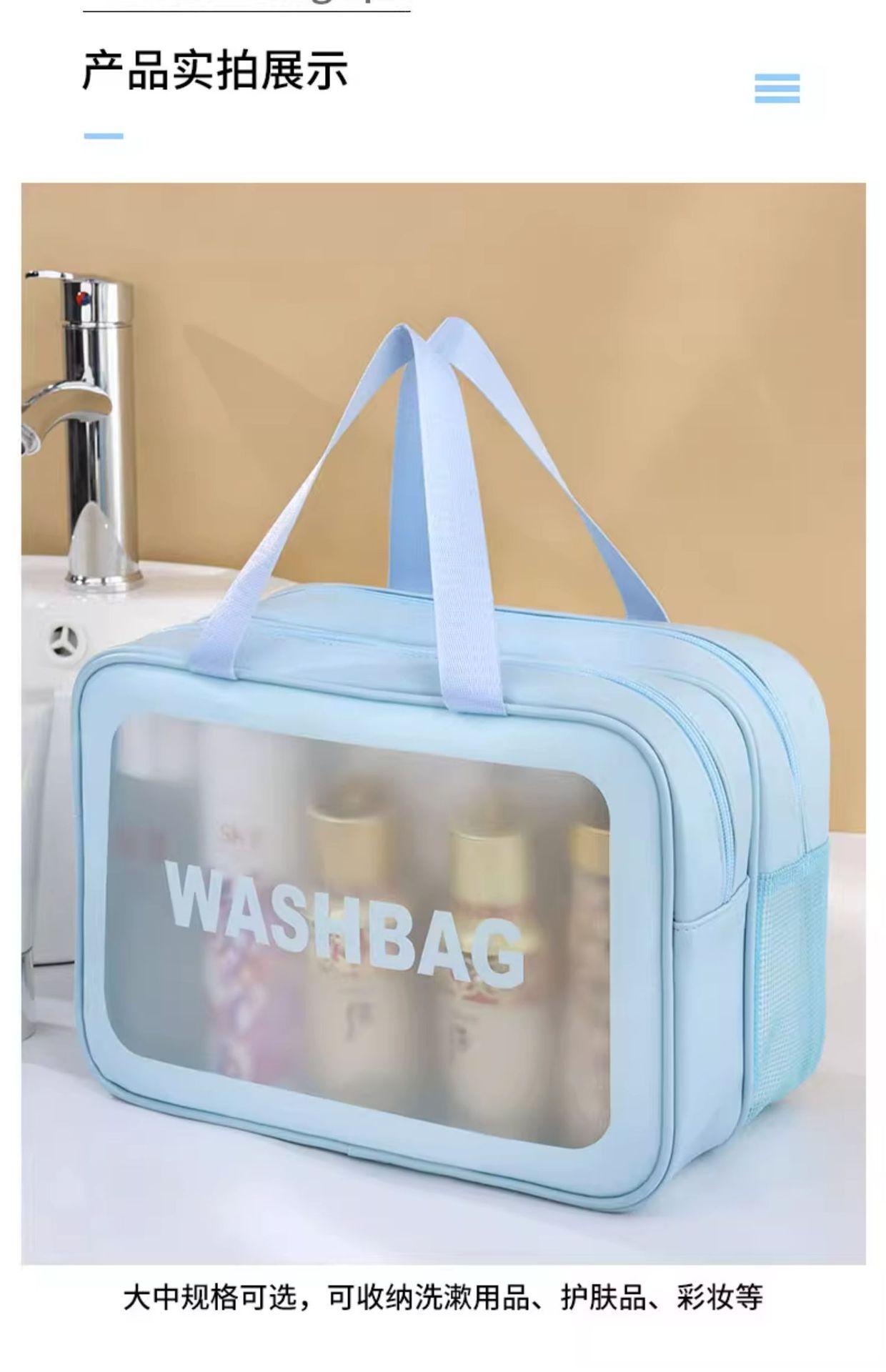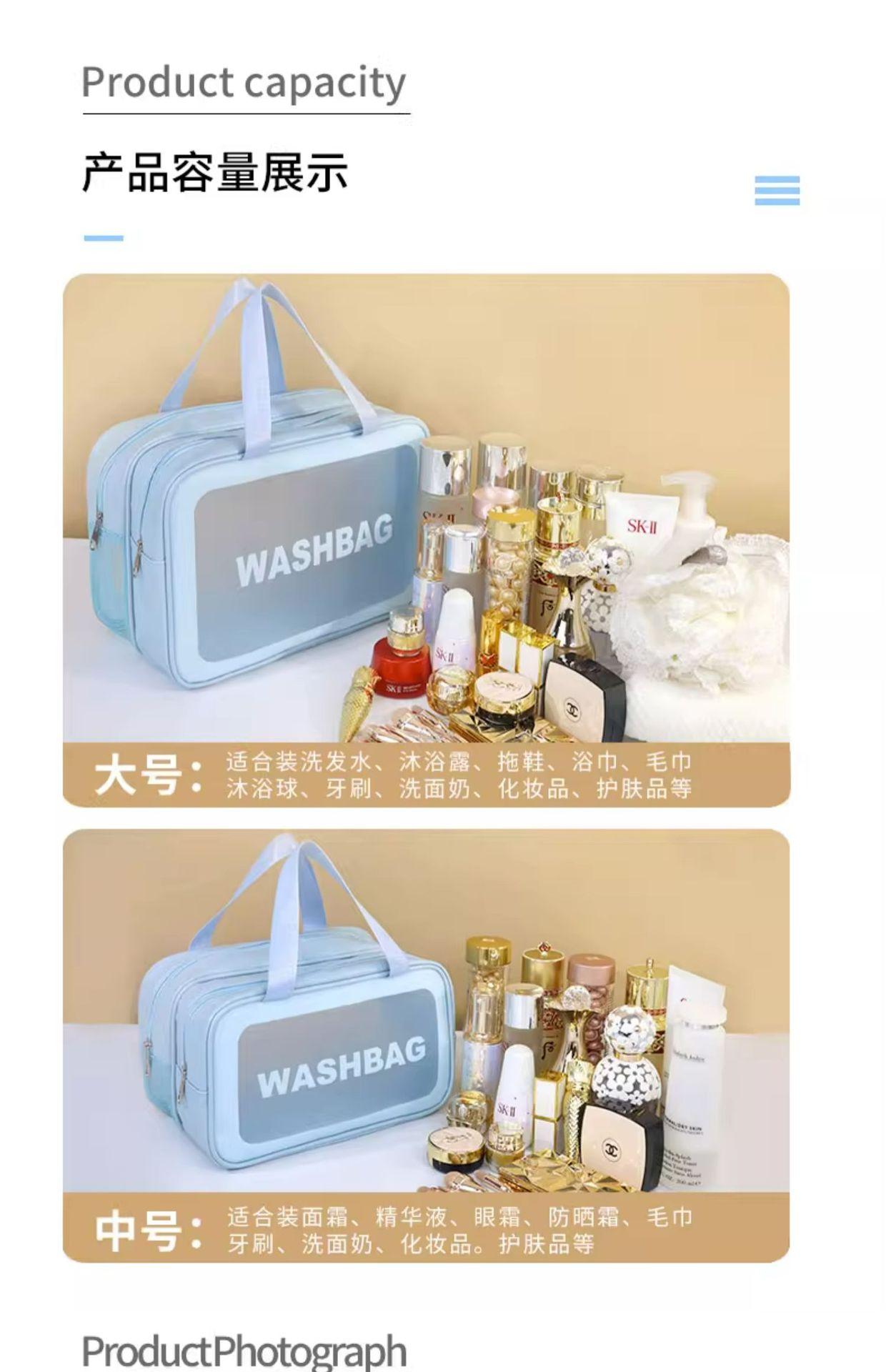 Large size - haze blue - dry and wet separation [double layer - double hand carry] large capacity cosmetic bag...