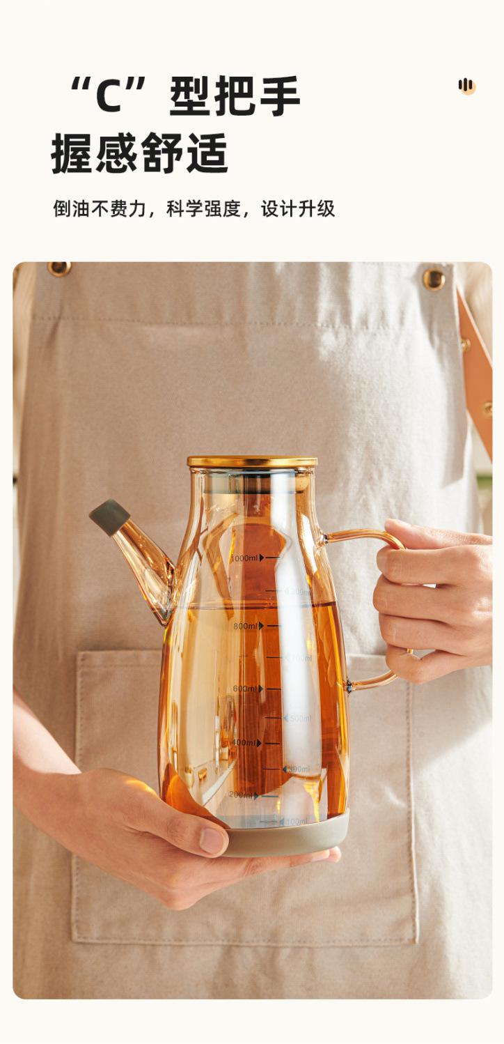 Compra Olla de aceite de vidrio sin colgar aceite cocina hogar vidrio de borosilicato alto botella de aceite resistente al calor alta temperatura control de aceite botella para condimentos al por mayor al por mayor en Joom.pro