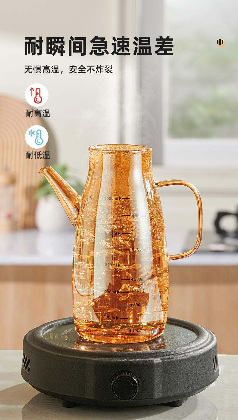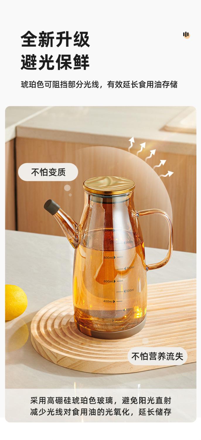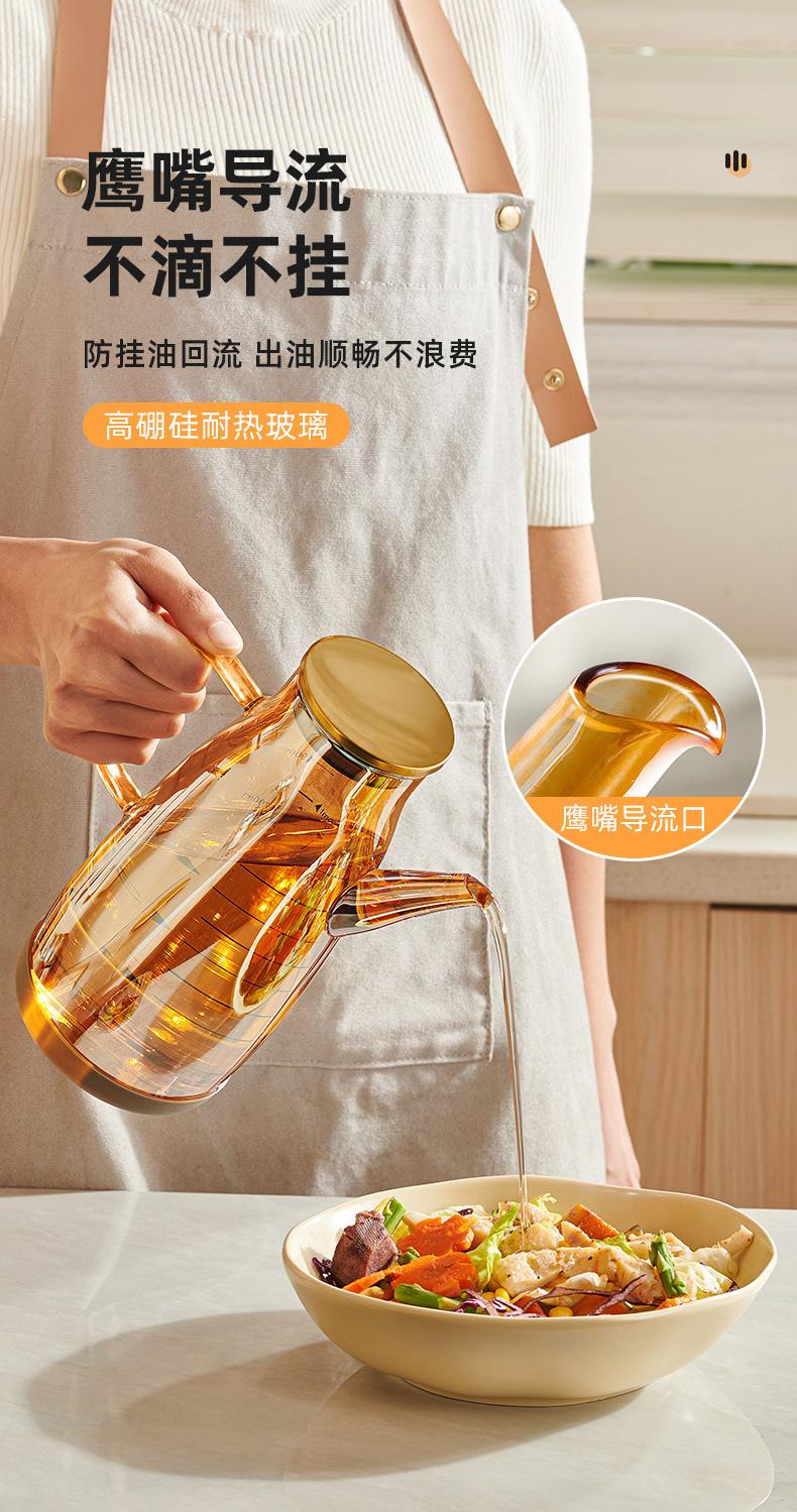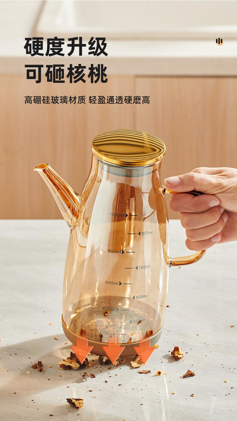 Olla de aceite de vidrio sin colgar aceite cocina hogar vidrio de borosilicato alto botella de aceite resistente al calor alta temperatura control de aceite botella para condimentos al por mayor