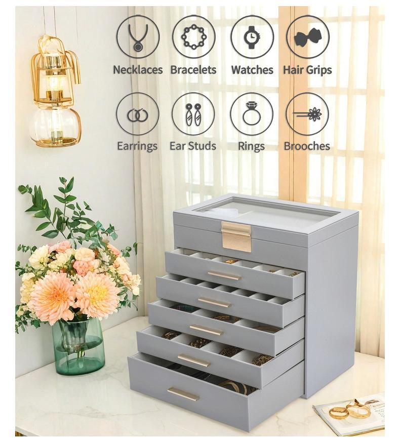 Compra Dropshipping Caja de Almacenamiento de Regalo para Dormitorio Transfronteriza Organizador de Ventana de PU Collar Pulsera Joyero Almacenamiento Joyero Venta al por Mayor al por mayor en Joom.pro