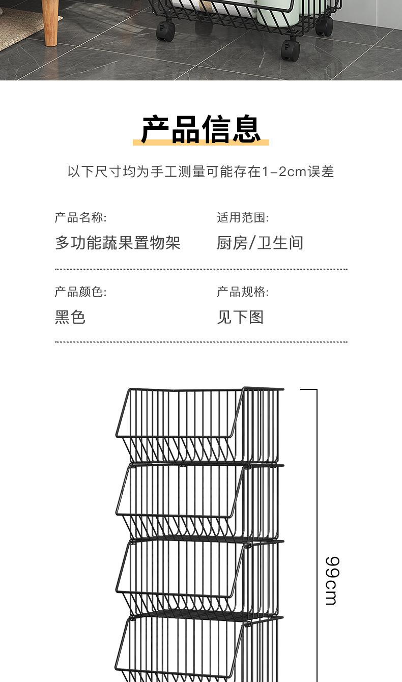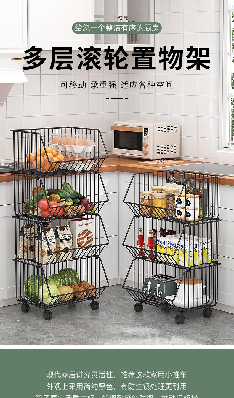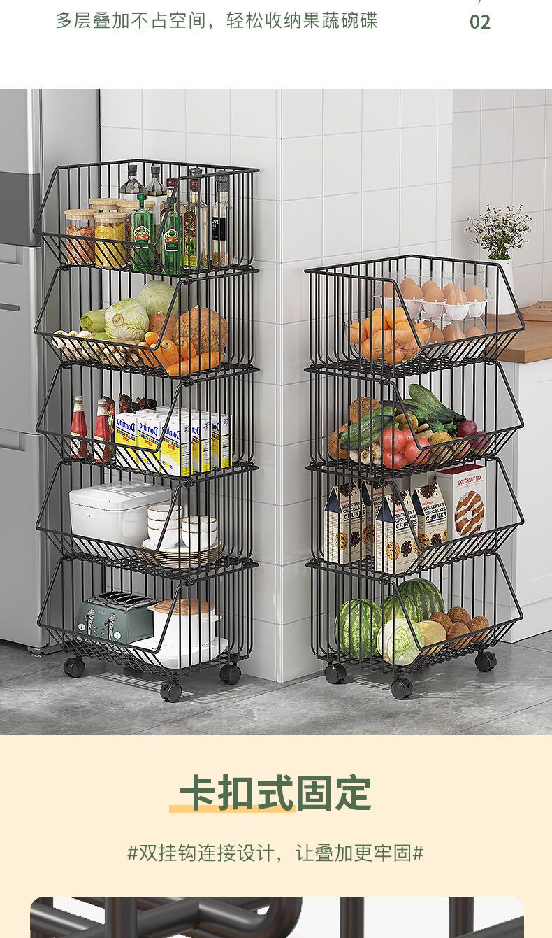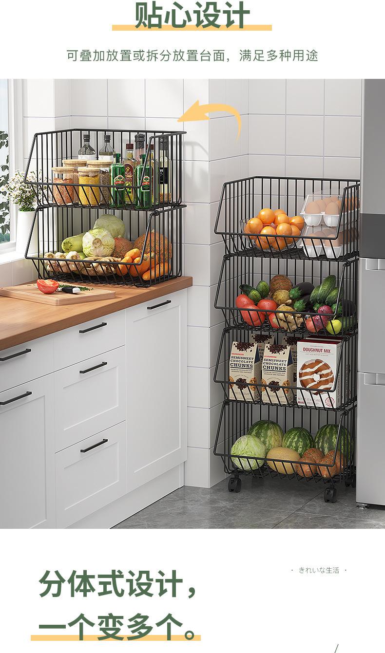 Estante de almacenamiento de verduras de cocina multifuncional Estante de almacenamiento de frutas Estante de almacenamiento de piso multicapa sin perforaciones Cesta de almacenamiento Cesta