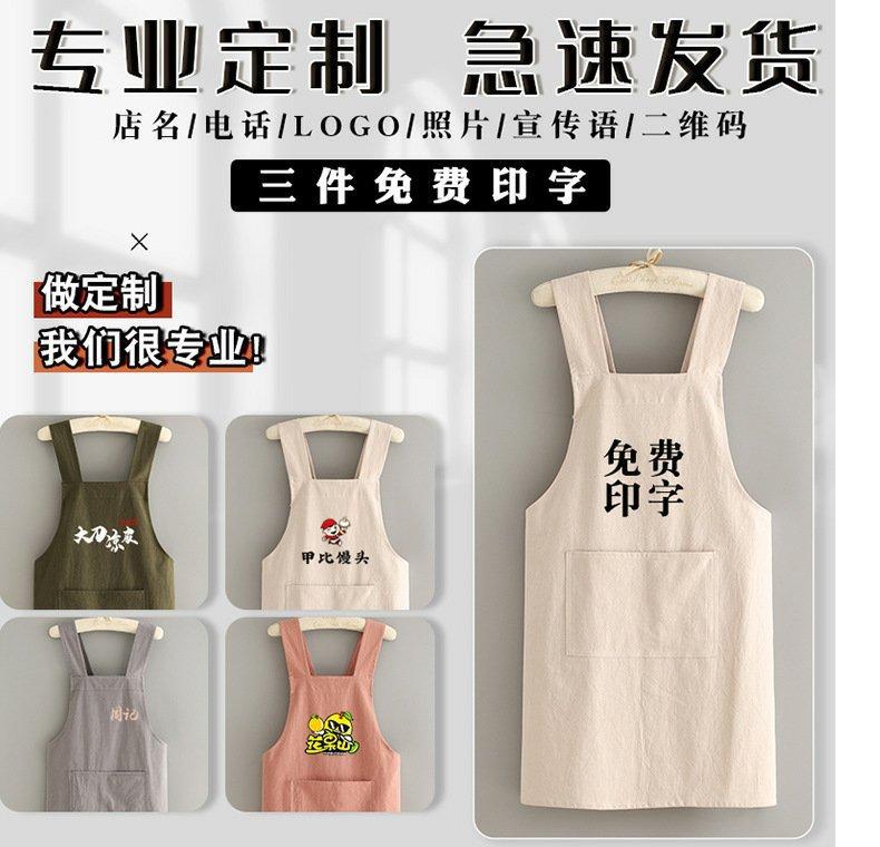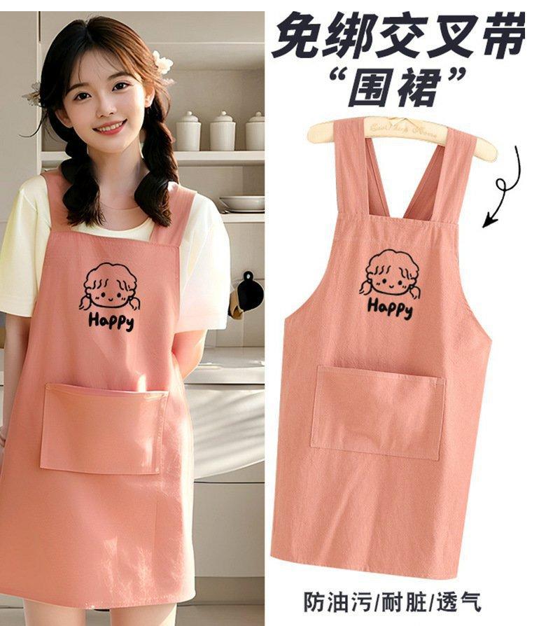 Delantal de tela arrugada de algodón transpirable, simple y antiincrustante, para cocina doméstica, ropa de trabajo para adultos, estampado de dibujos animados, cintura nueva