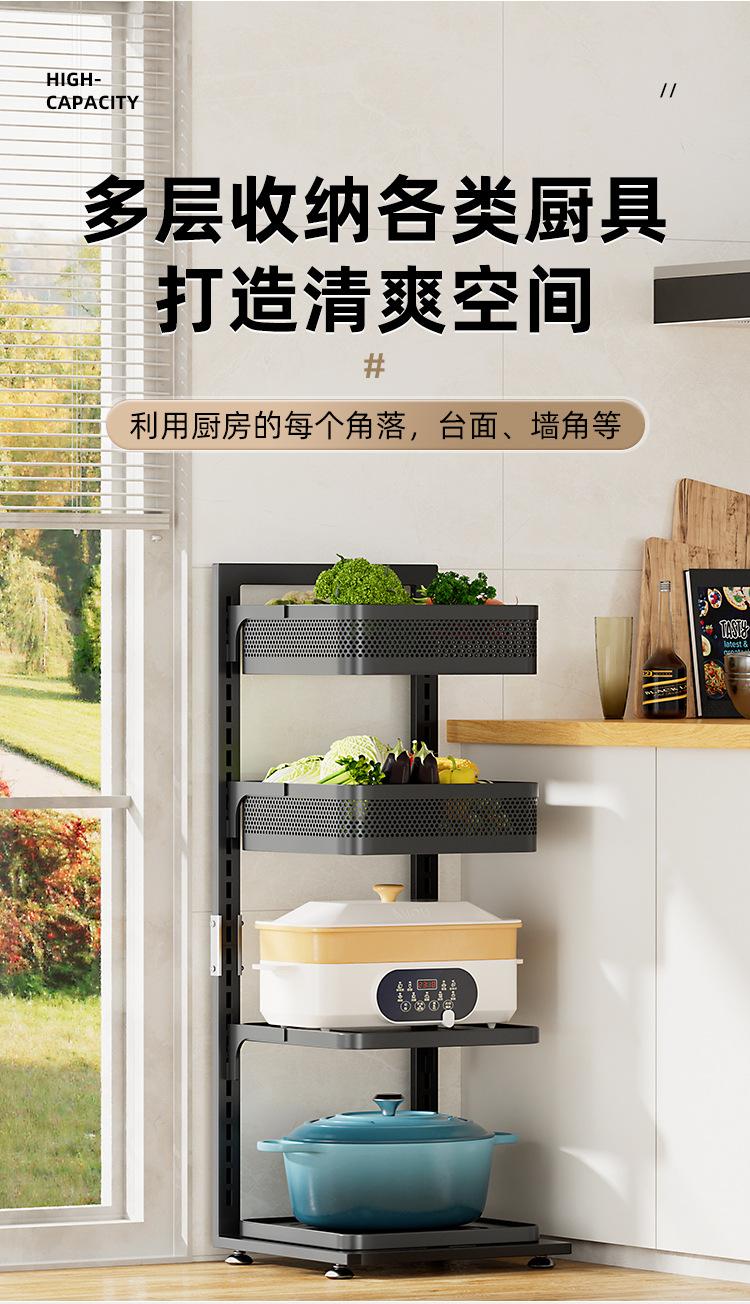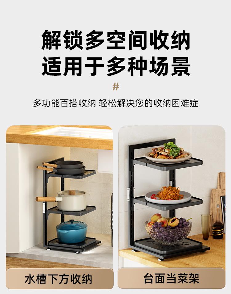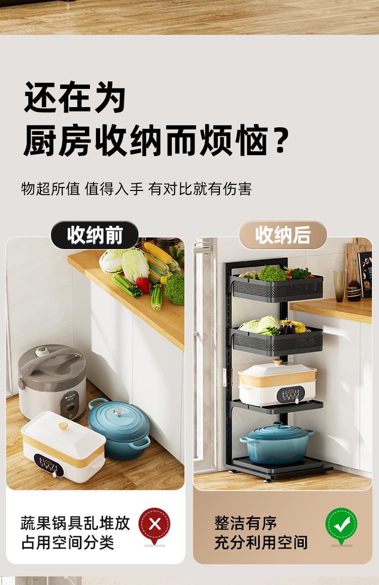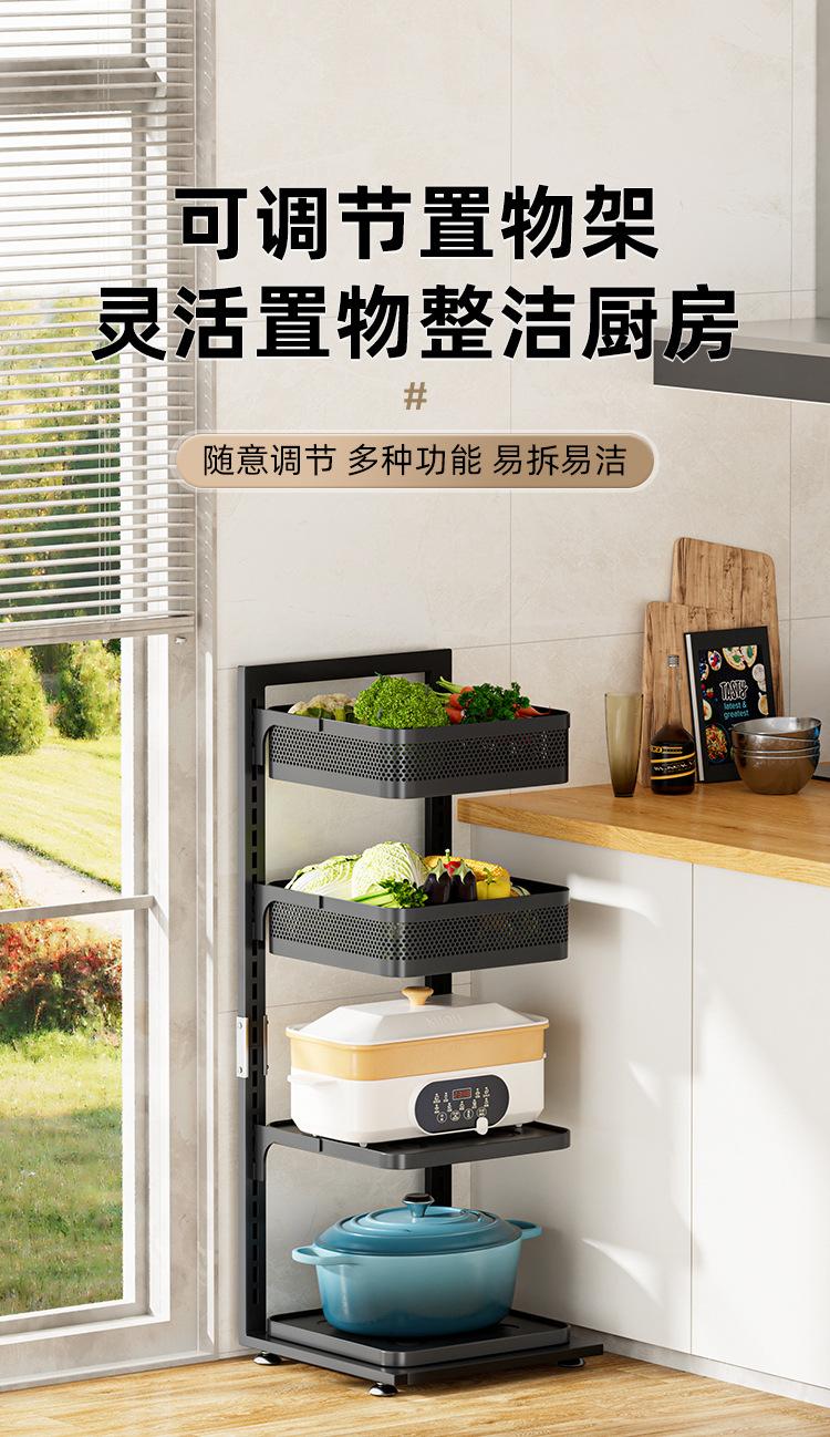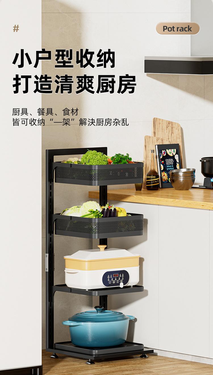 Estante de almacenamiento engrosado para cocina, estante para ollas de piso para el hogar, canasta para frutas y verduras de múltiples capas, estante para ollas ajustable multifuncional