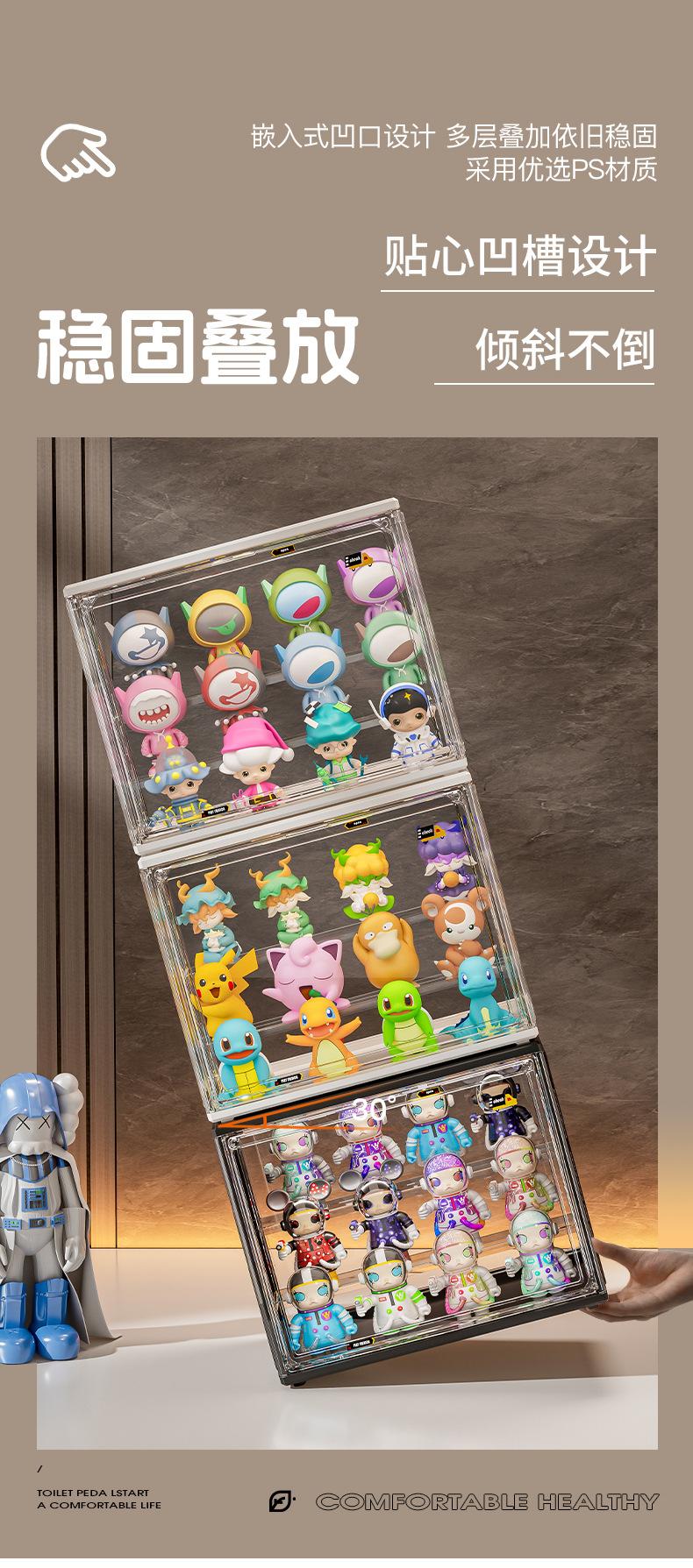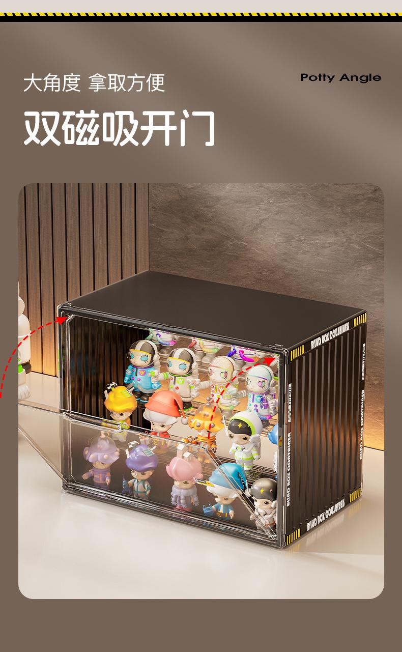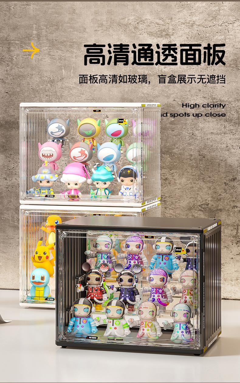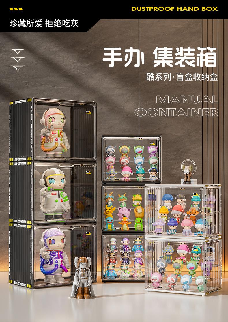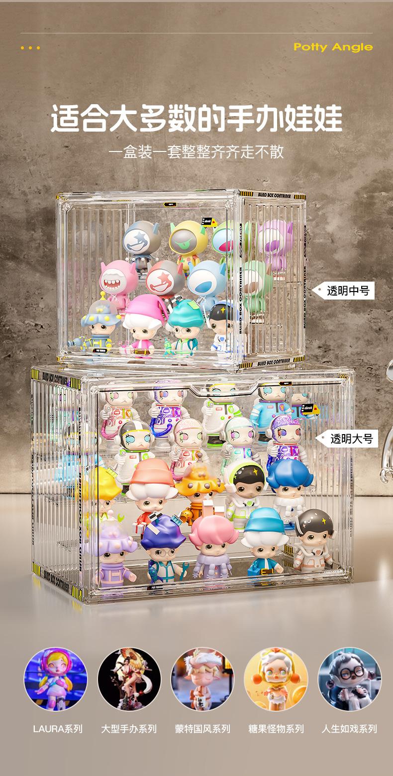 Estante de exhibición de caja ciega, contenedor de burbuja Mart popmart, caja de acrílico transparente, vitrina de exhibición manual