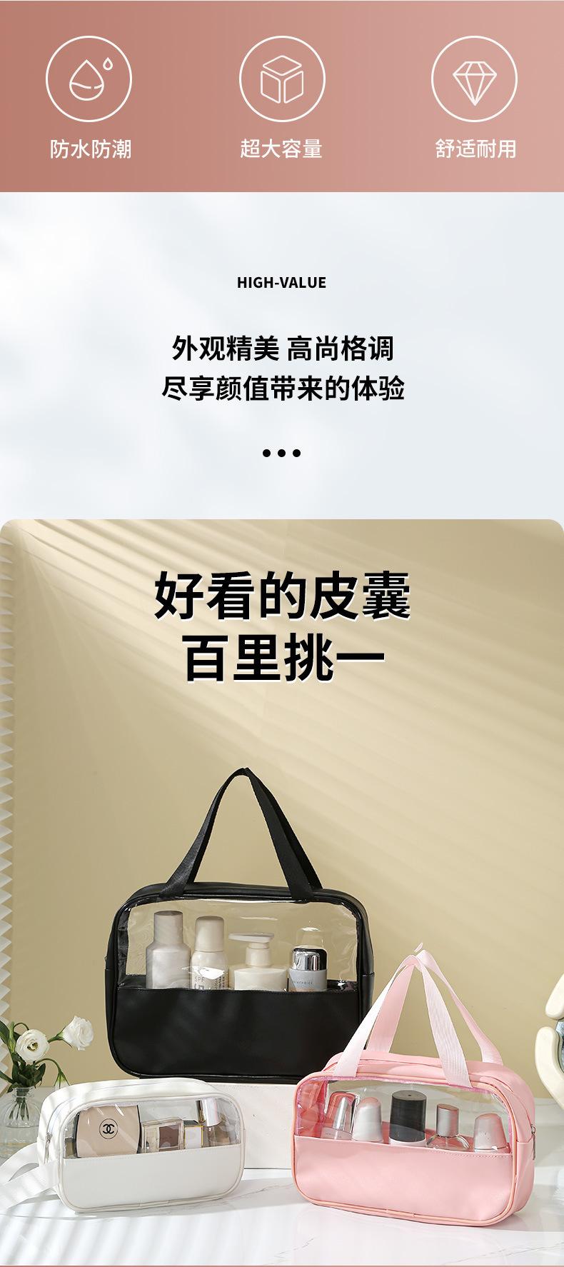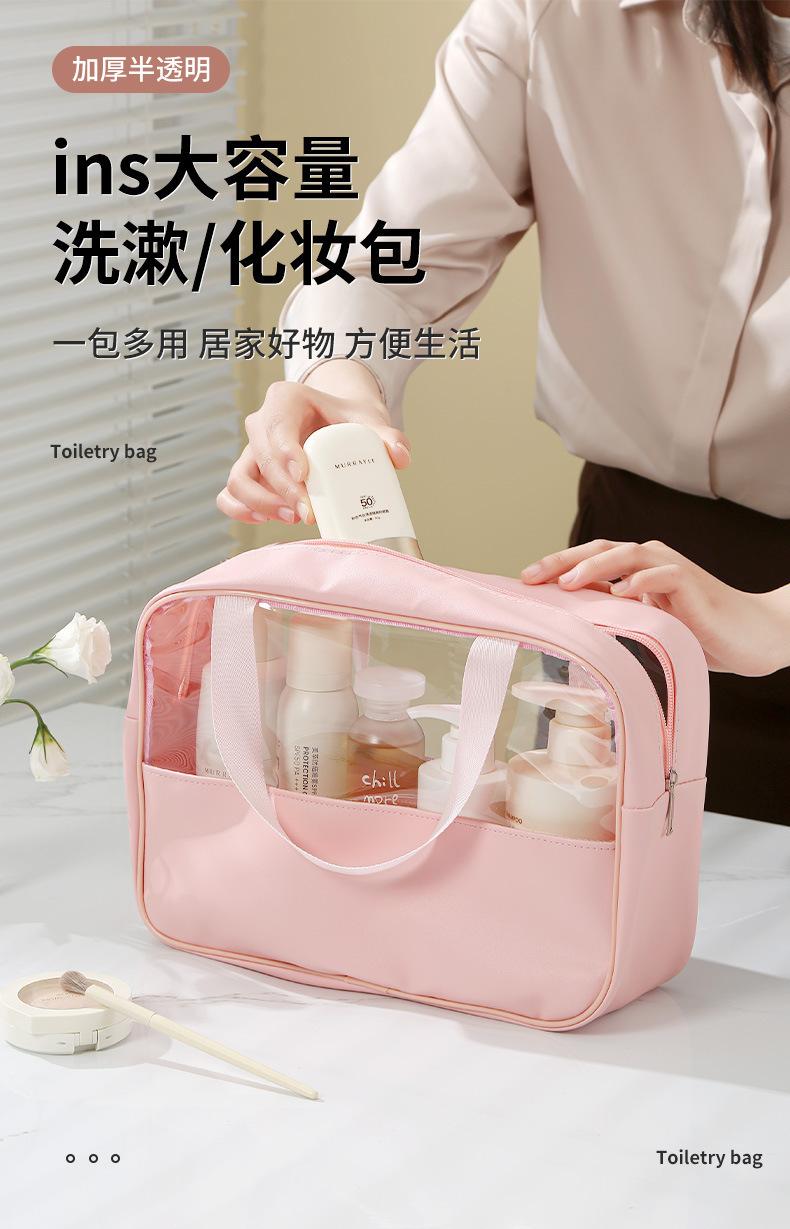 Bolsa de cosméticos transparente de PVC de estilo Ins, nueva bolsa de lavado impermeable, bolsa de almacenamiento de cosméticos portátil y gruesa de fábrica