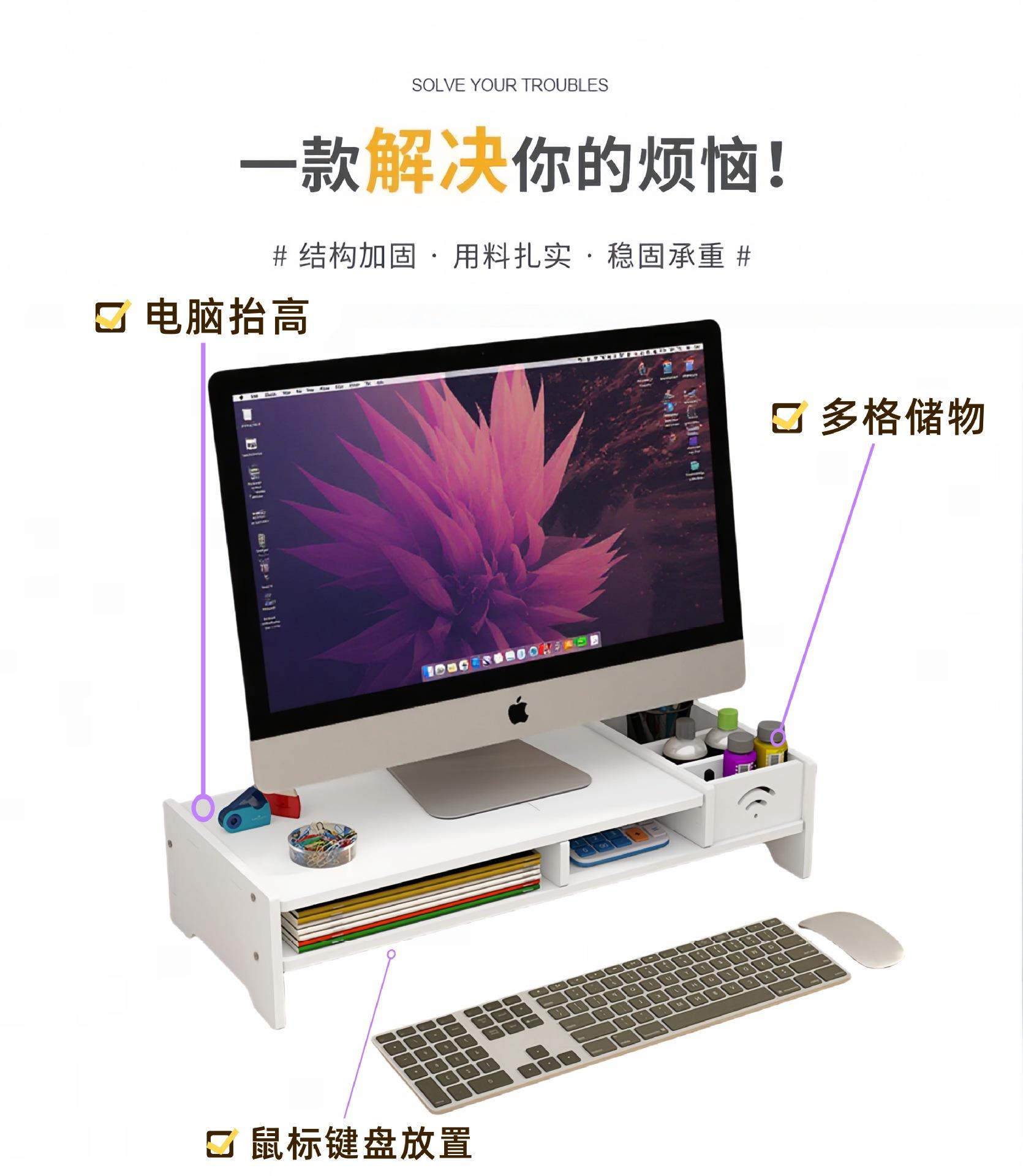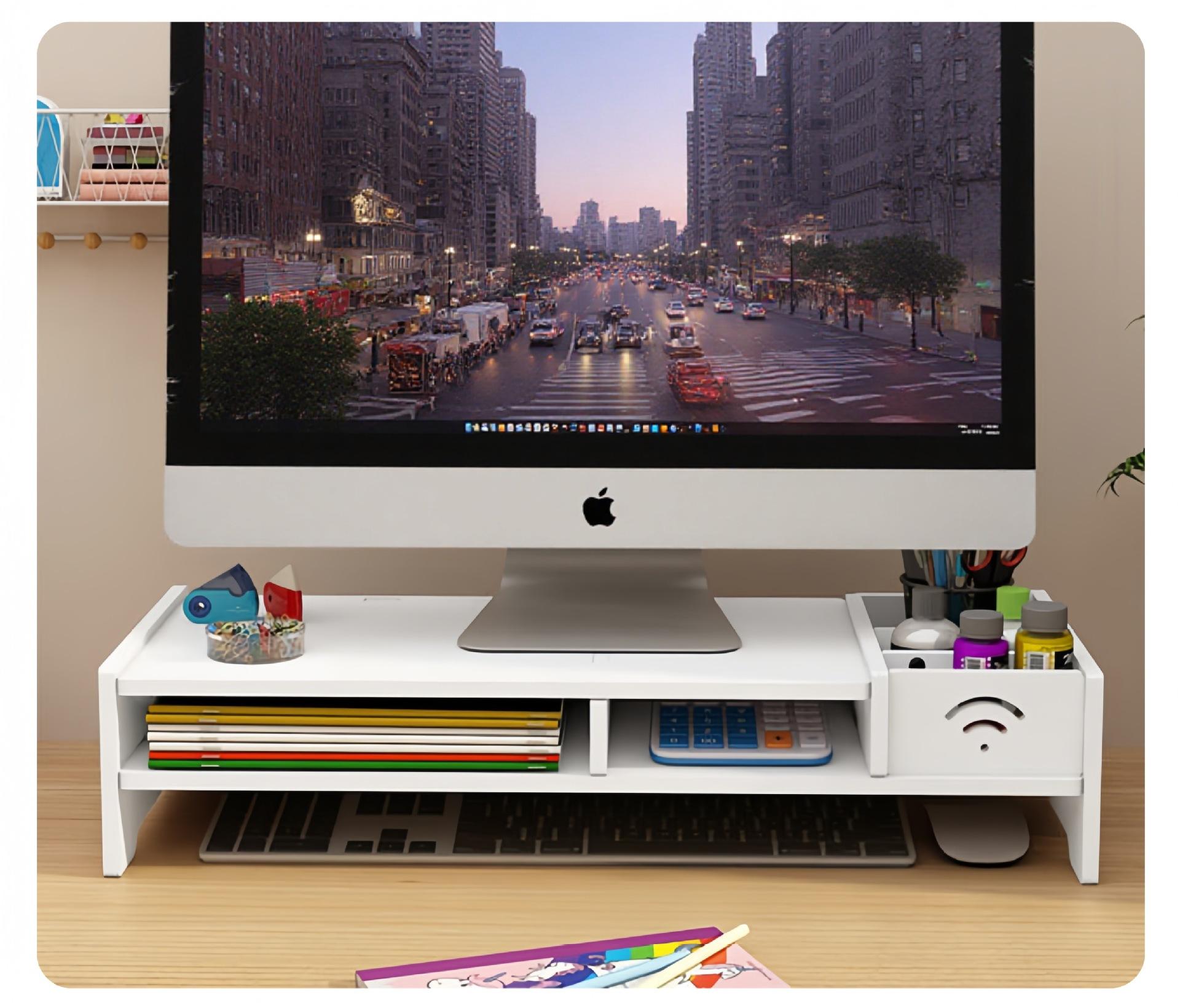 Estante elevado para computadora de oficina, soporte para monitor de escritorio de múltiples capas, base alta, cajón de escritorio, estante de almacenamiento