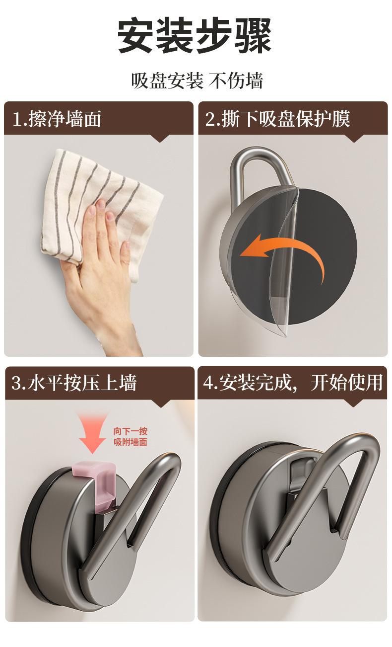 [1 piece] cream white-u-shaped single hook [suction cup type], [1 piece] gun gray-u-shaped single hook [suctio...