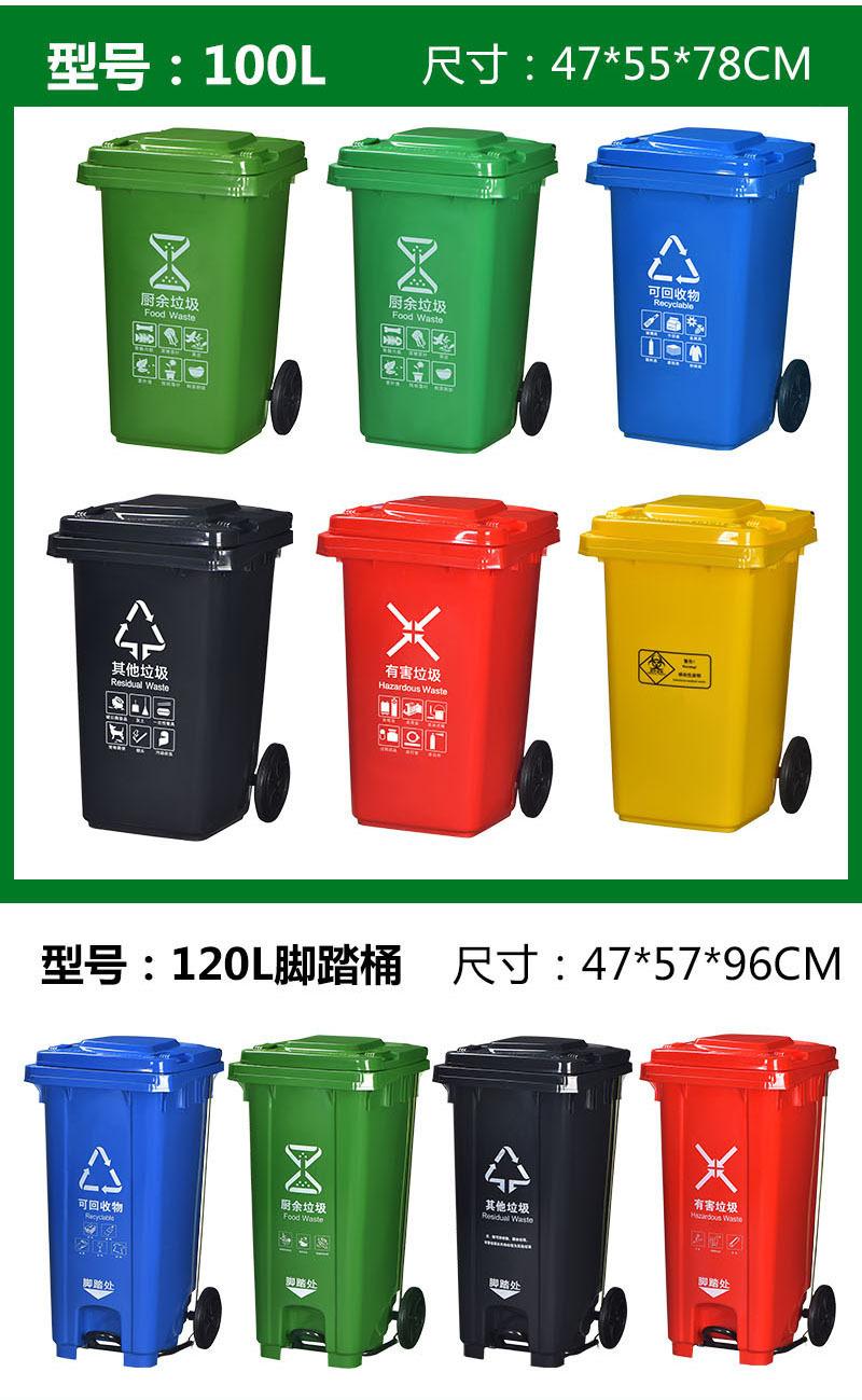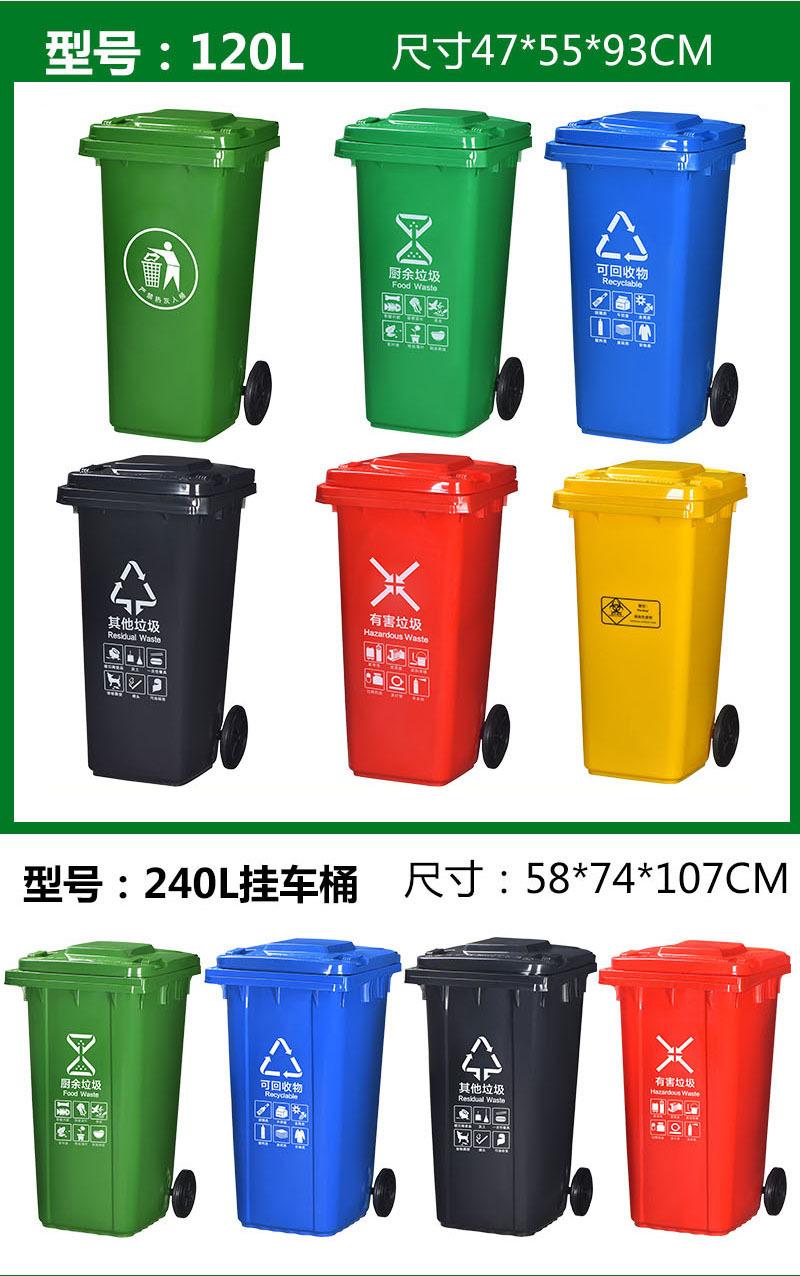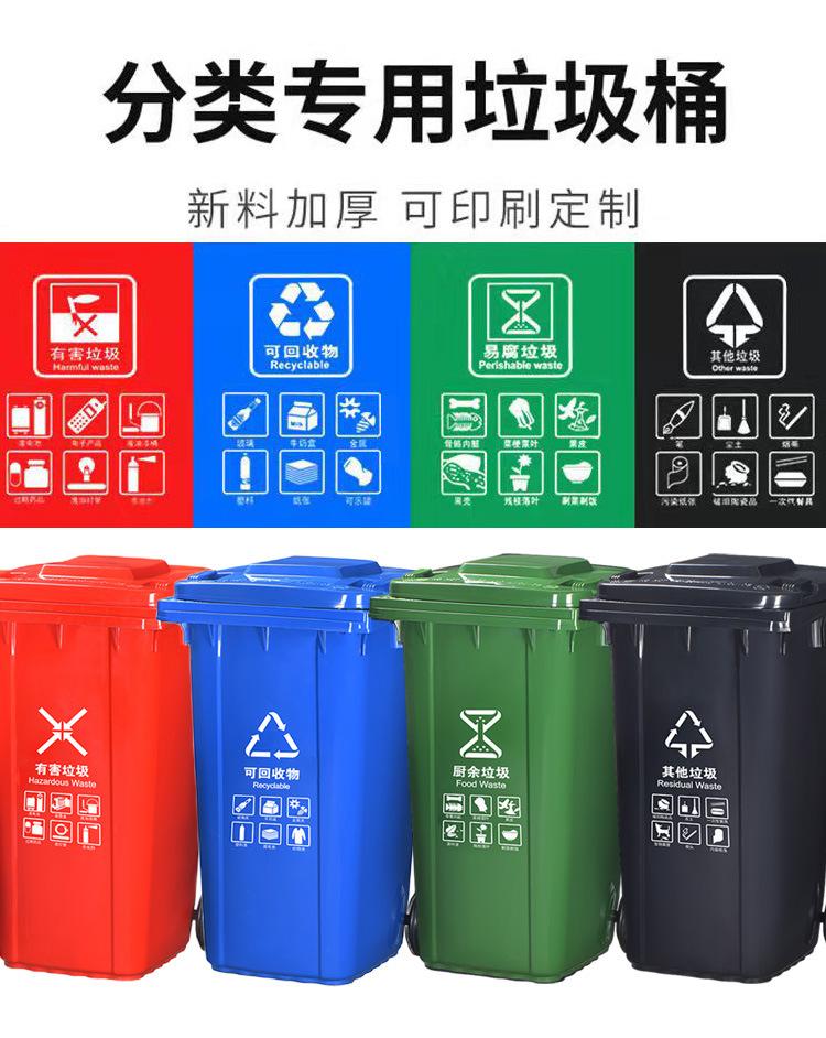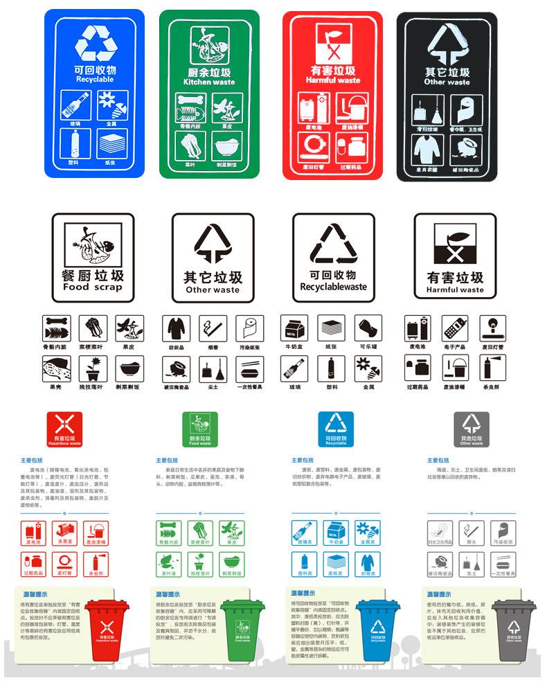 Green/Circular, Green/kitchen waste, Black/Other Garbage, Blue/Recyclable, Red/Hazardous Waste