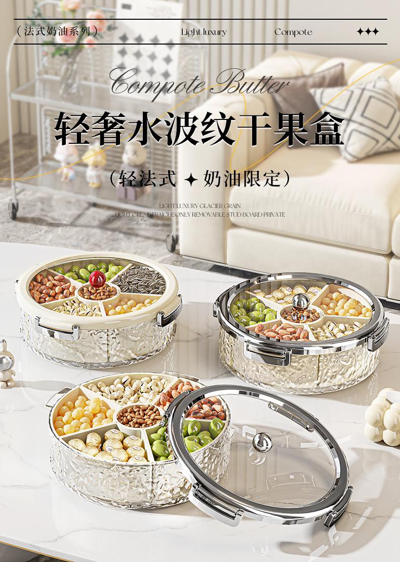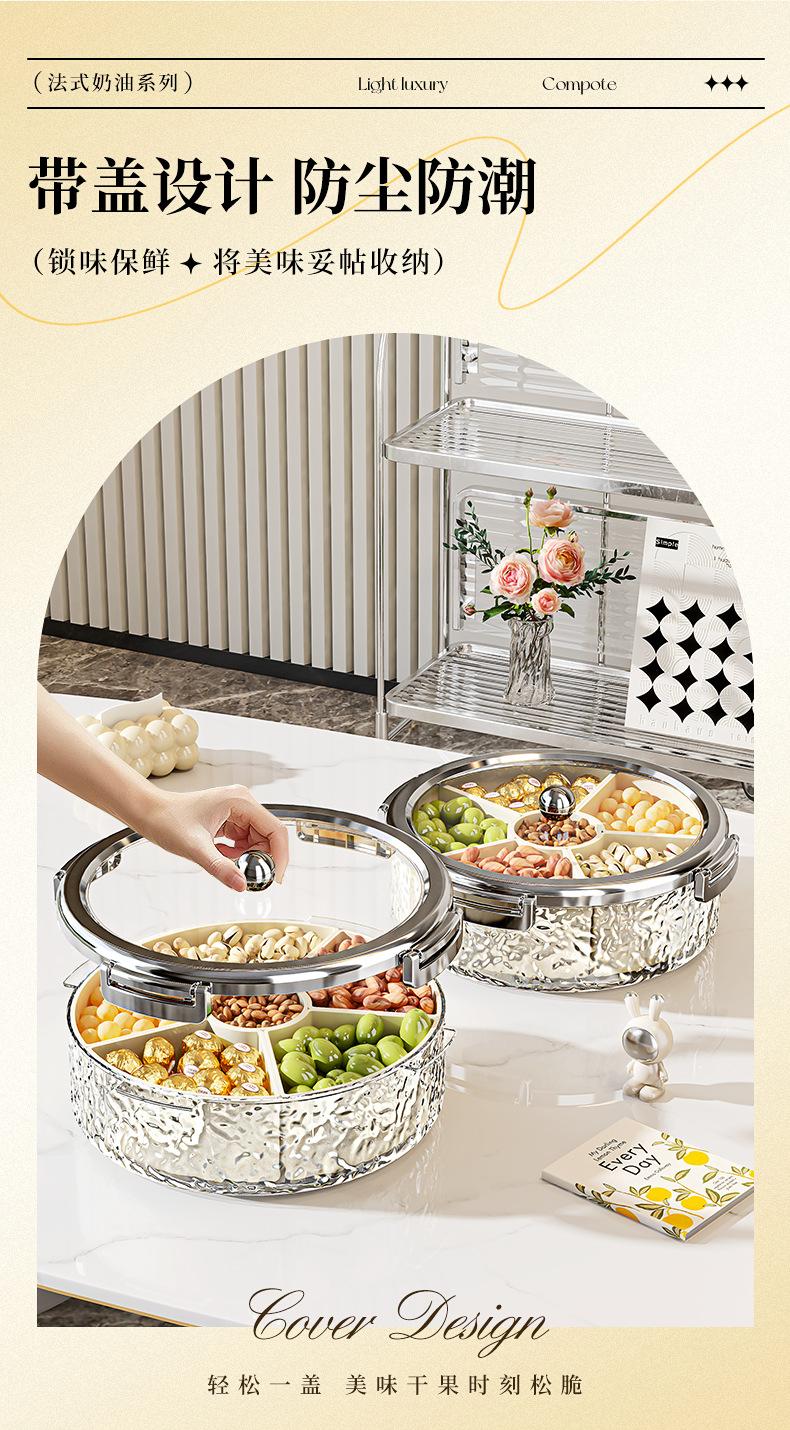 Plato de fruta de lujo ligero de nuevo estilo, de alta calidad, para sala de estar, mesa de centro, plato de fruta, caja de dulces, caja de frutos secos, plato para bocadillos y nueces