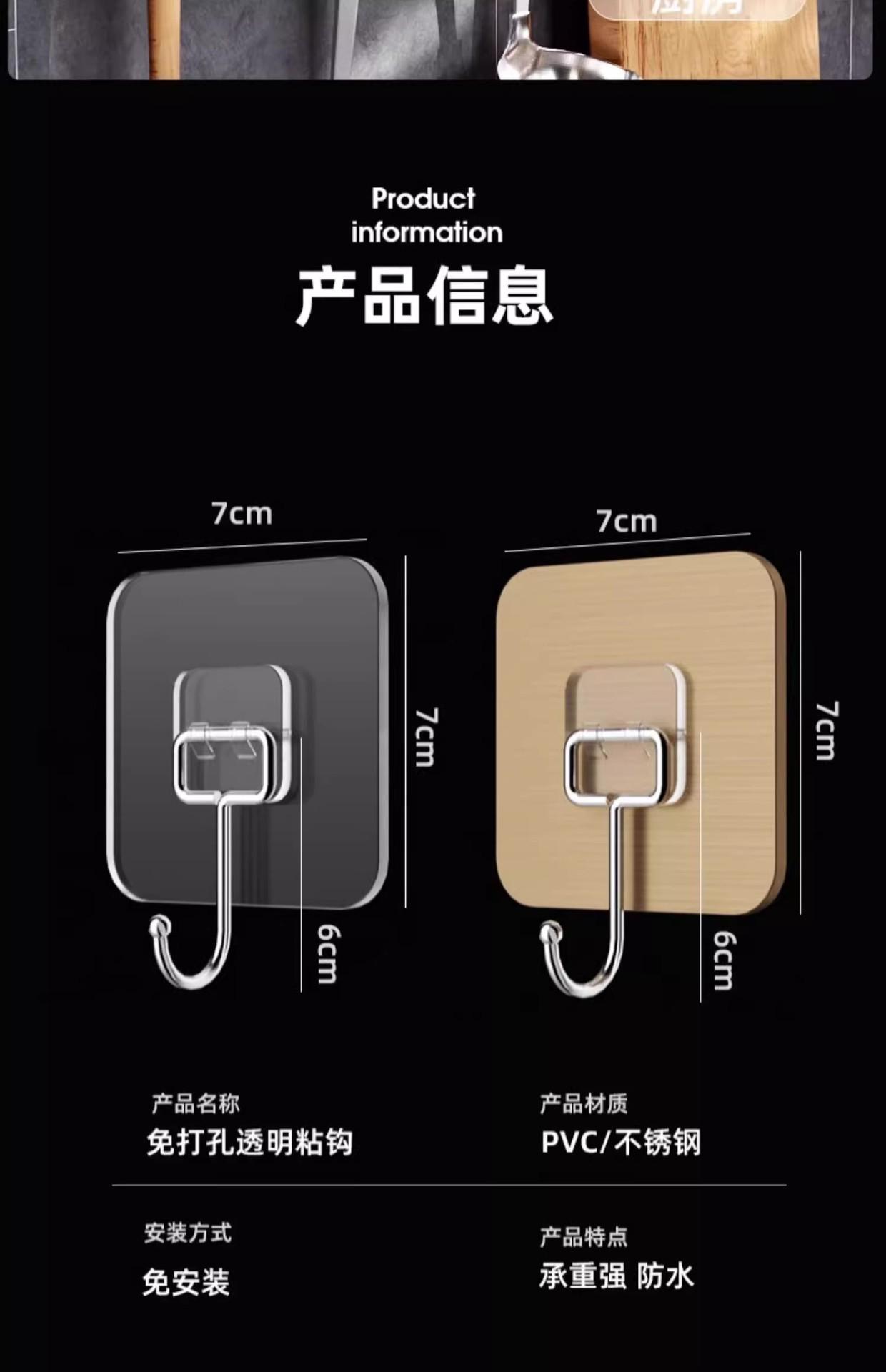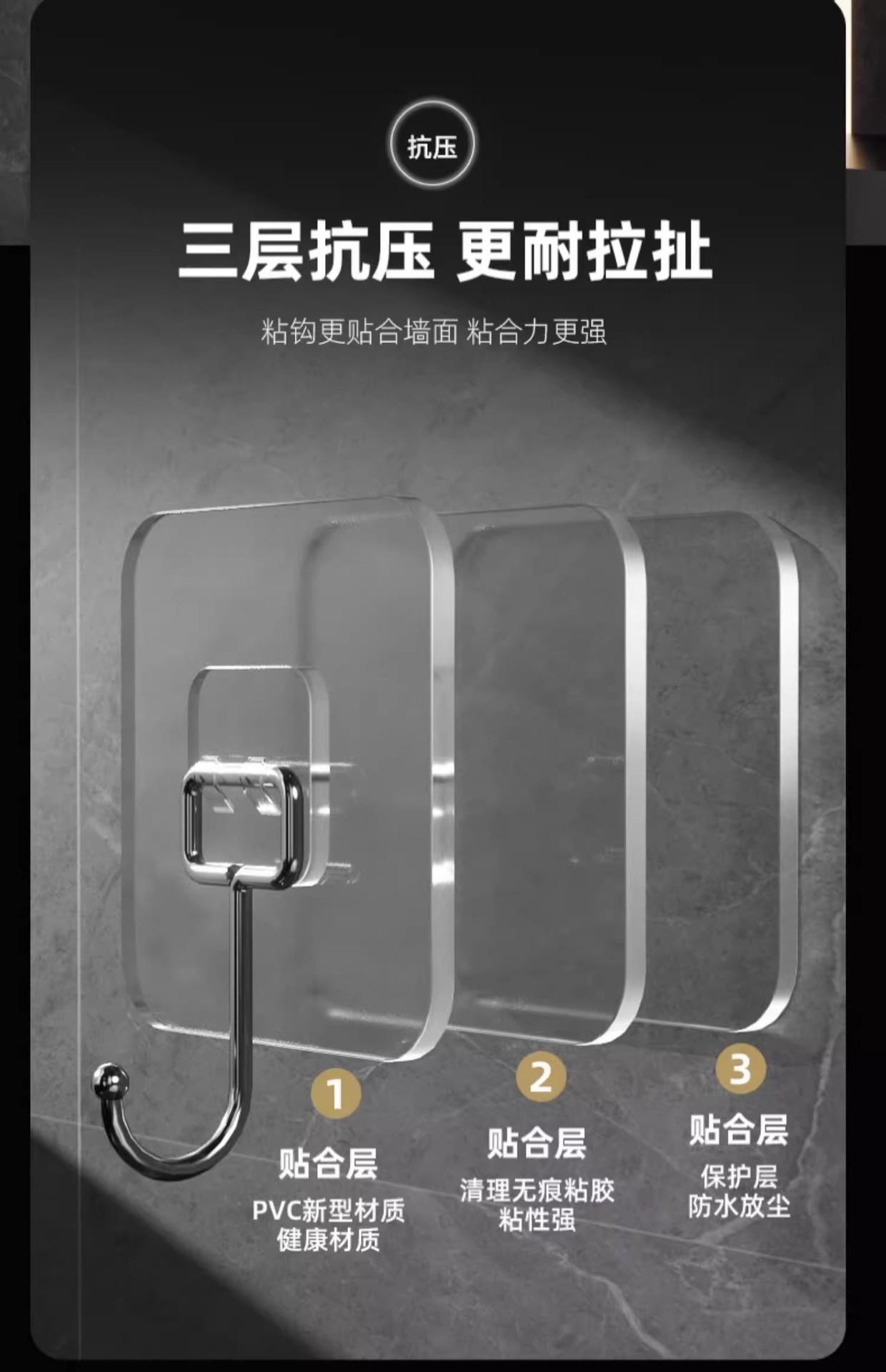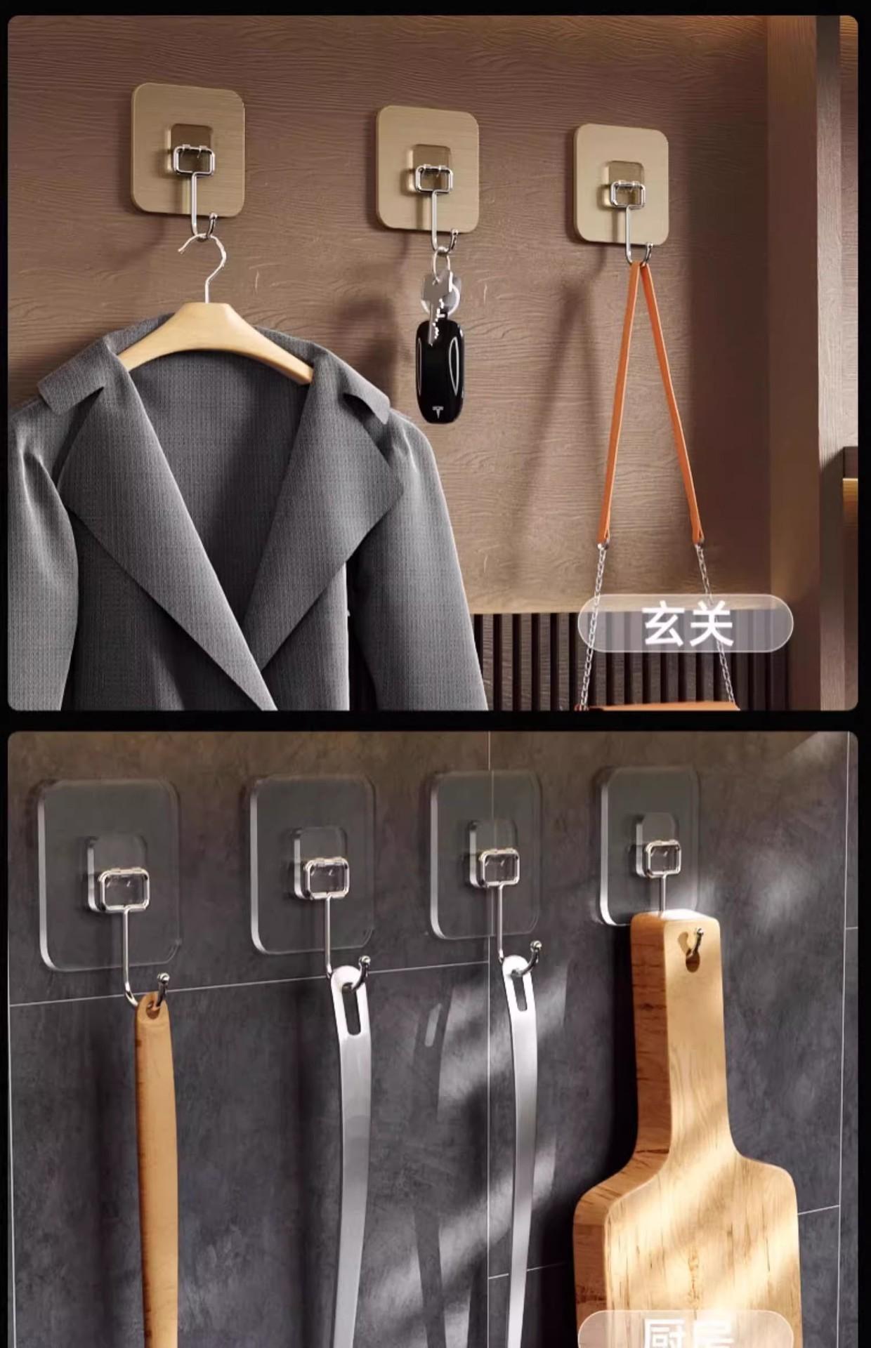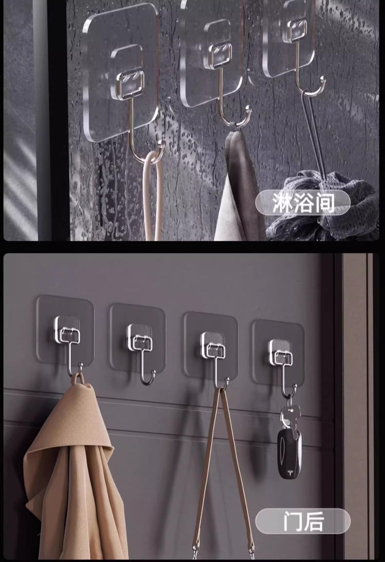 Gancho adhesivo fuerte para colgar en la pared, gancho grande transparente de gran capacidad, gancho sin perforaciones, gancho para pegar.