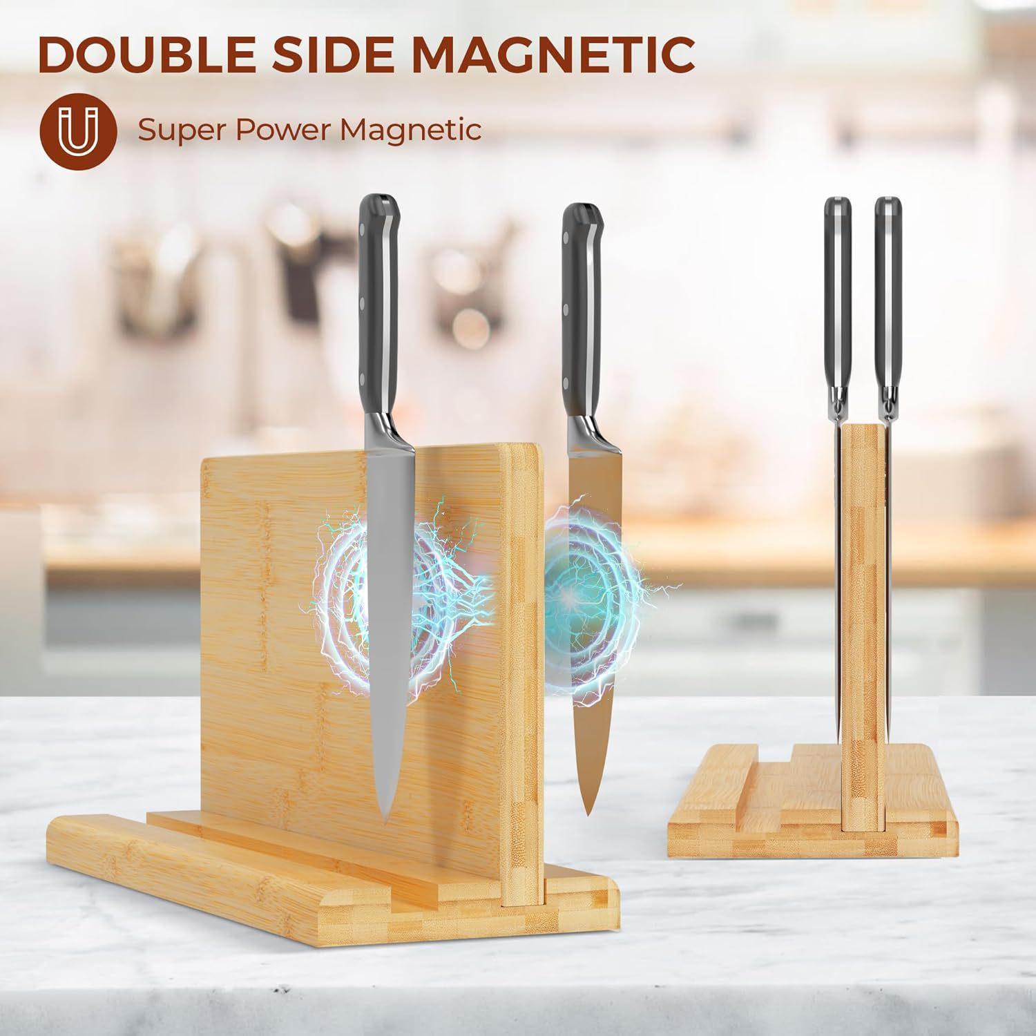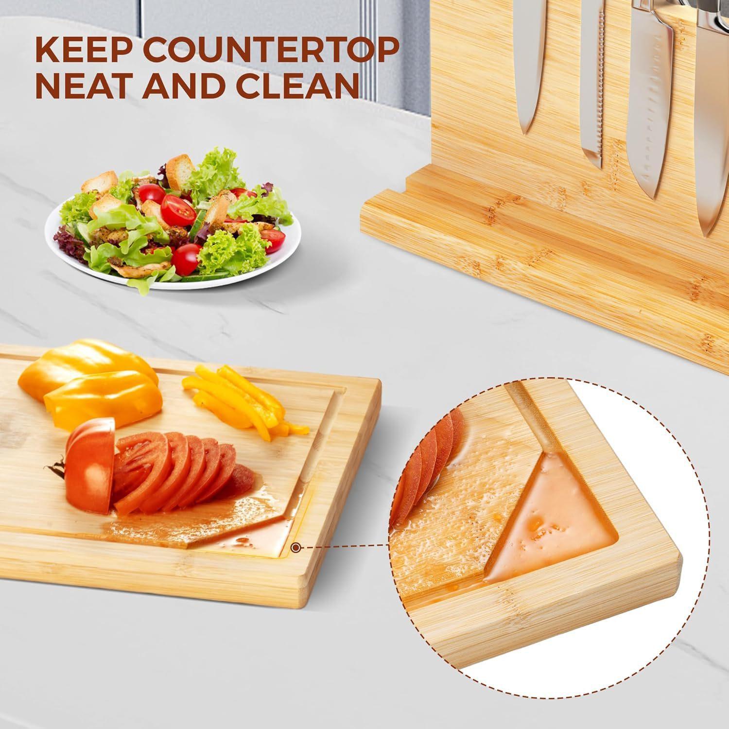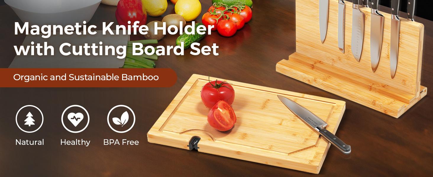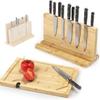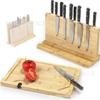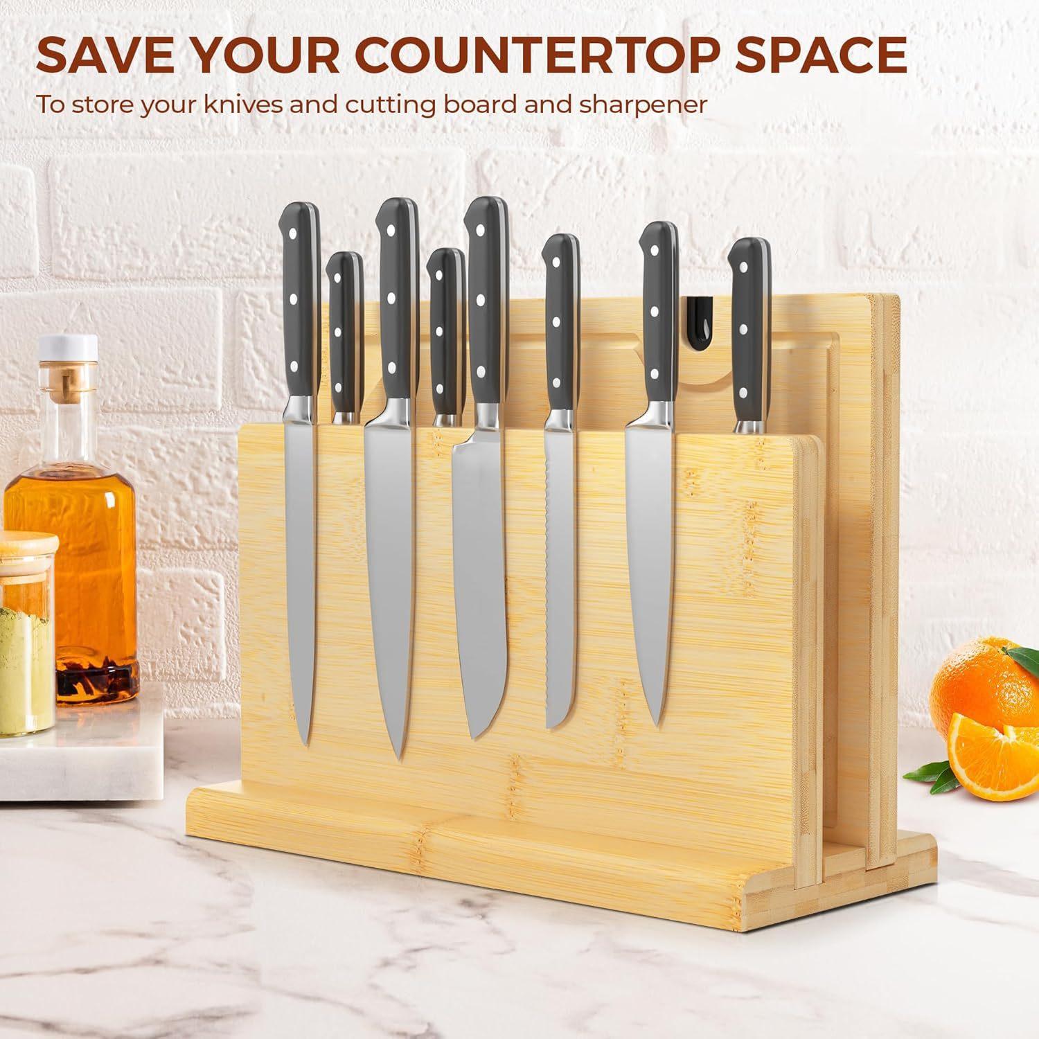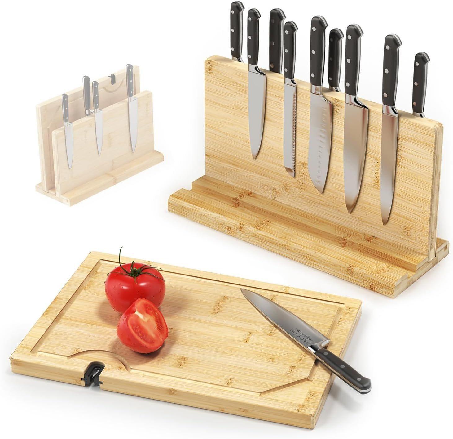 Portacuchillos magnético multifuncional de bambú para cocina, tabla de cortar desmontable para frutas y verduras con afilador de cuchillos, portacuchillos de encimera