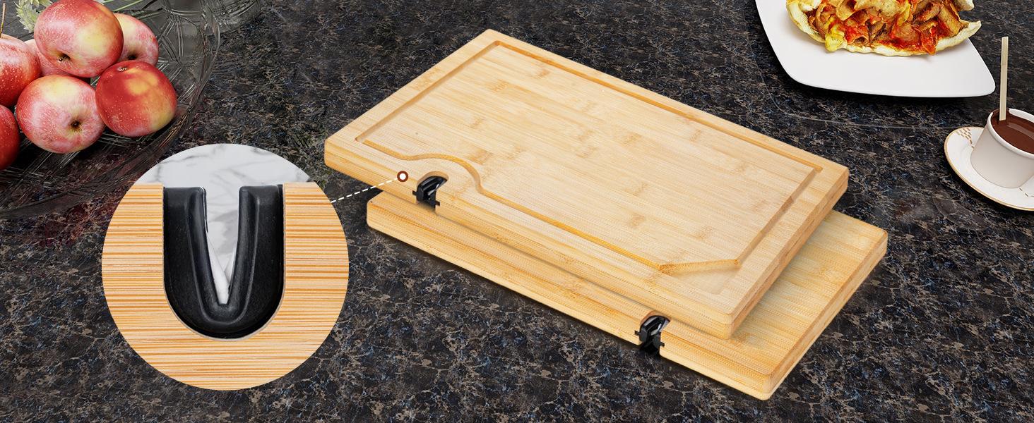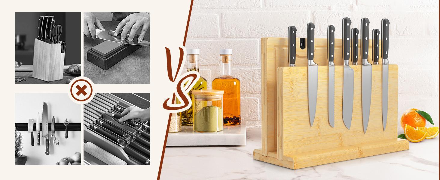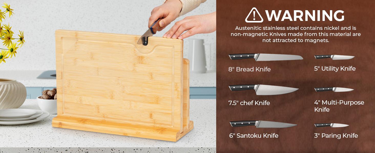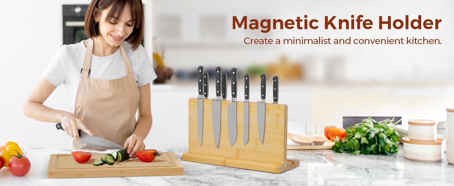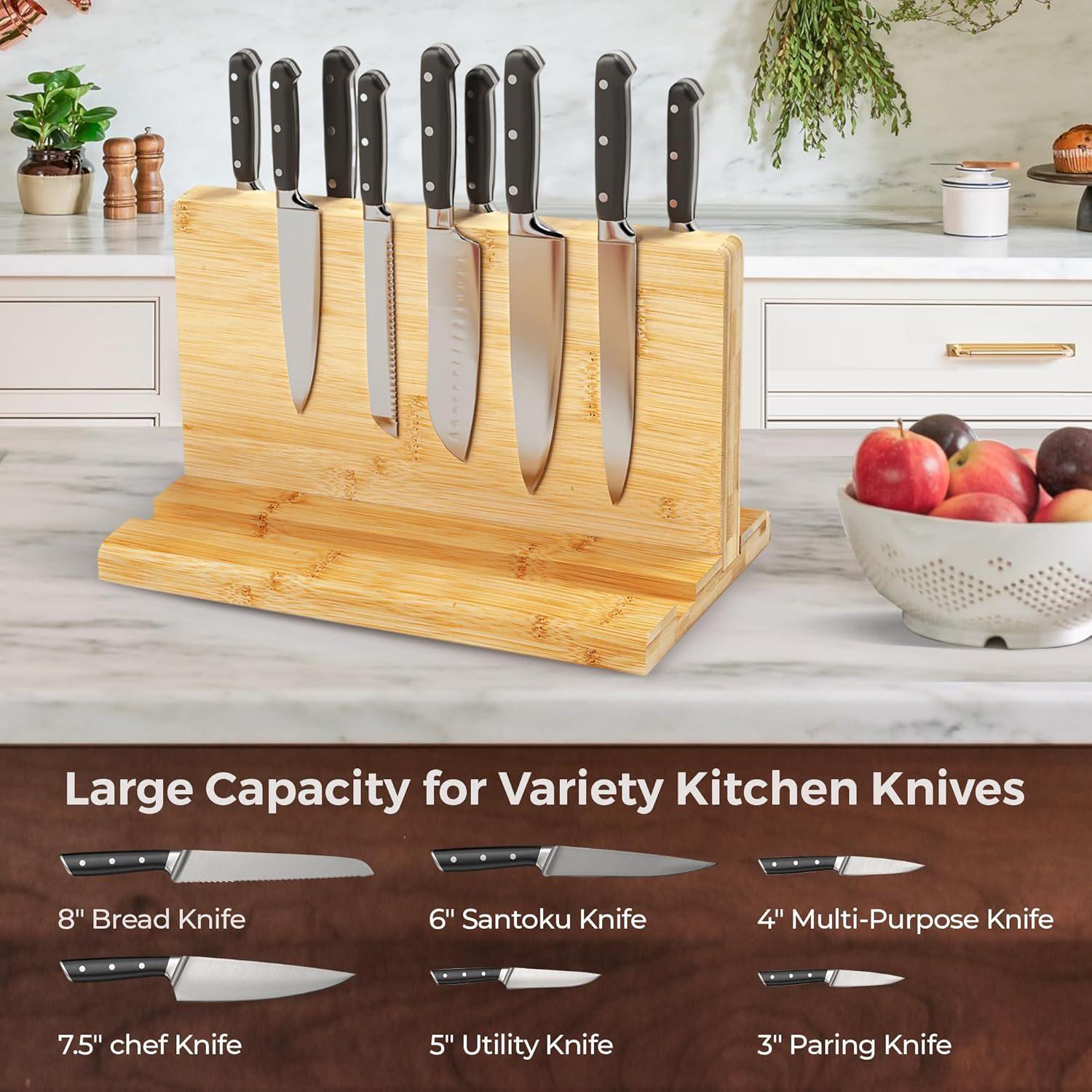 Portacuchillos magnético multifuncional de bambú para cocina, tabla de cortar desmontable para frutas y verduras con afilador de cuchillos, portacuchillos de encimera