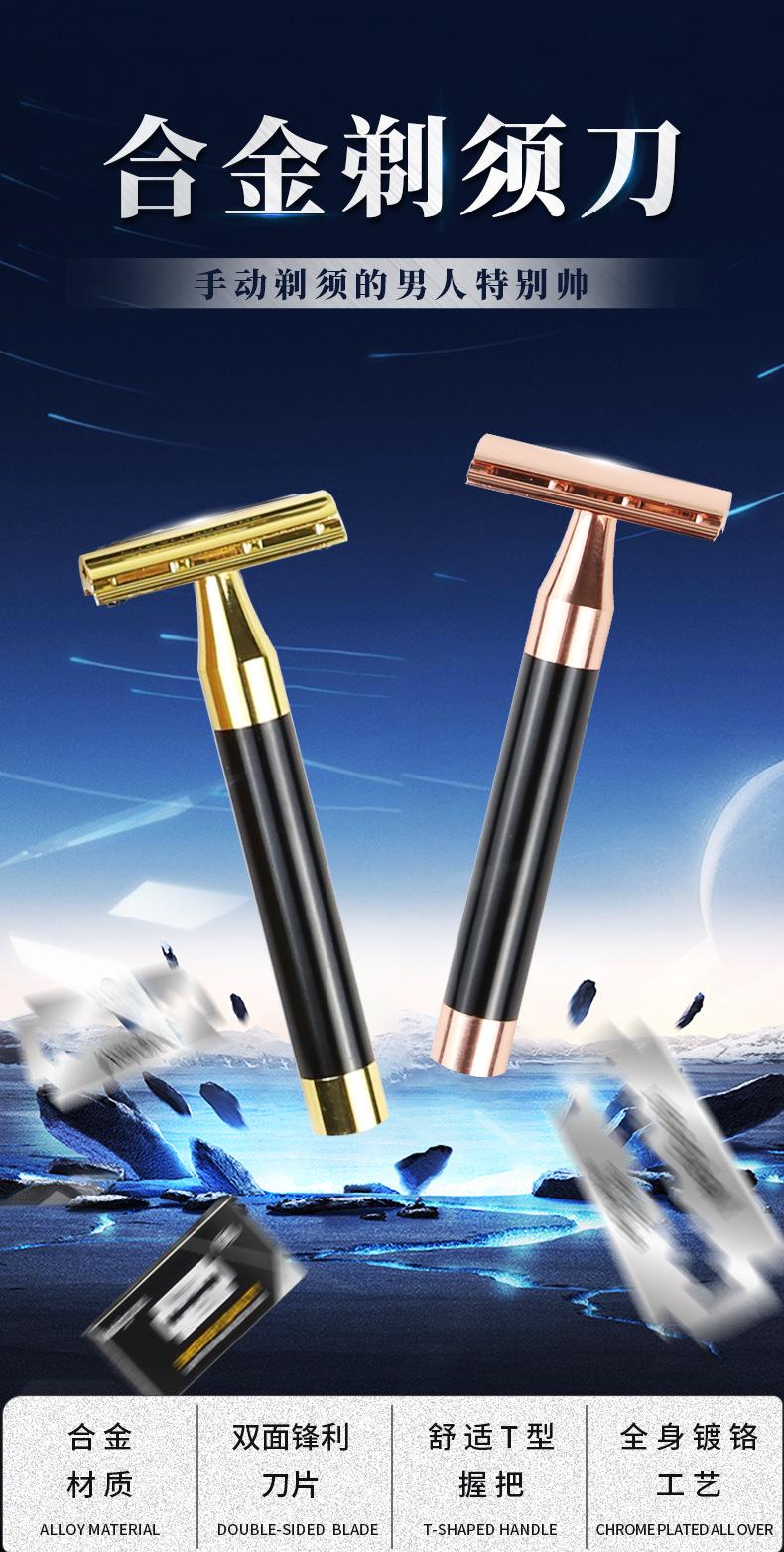 Navaja de Aleación Transfronteriza Navaja Manual a la Antigua Navaja de Afeitar Set de Caja de Regalo con 5 Cuchillas para Depilación