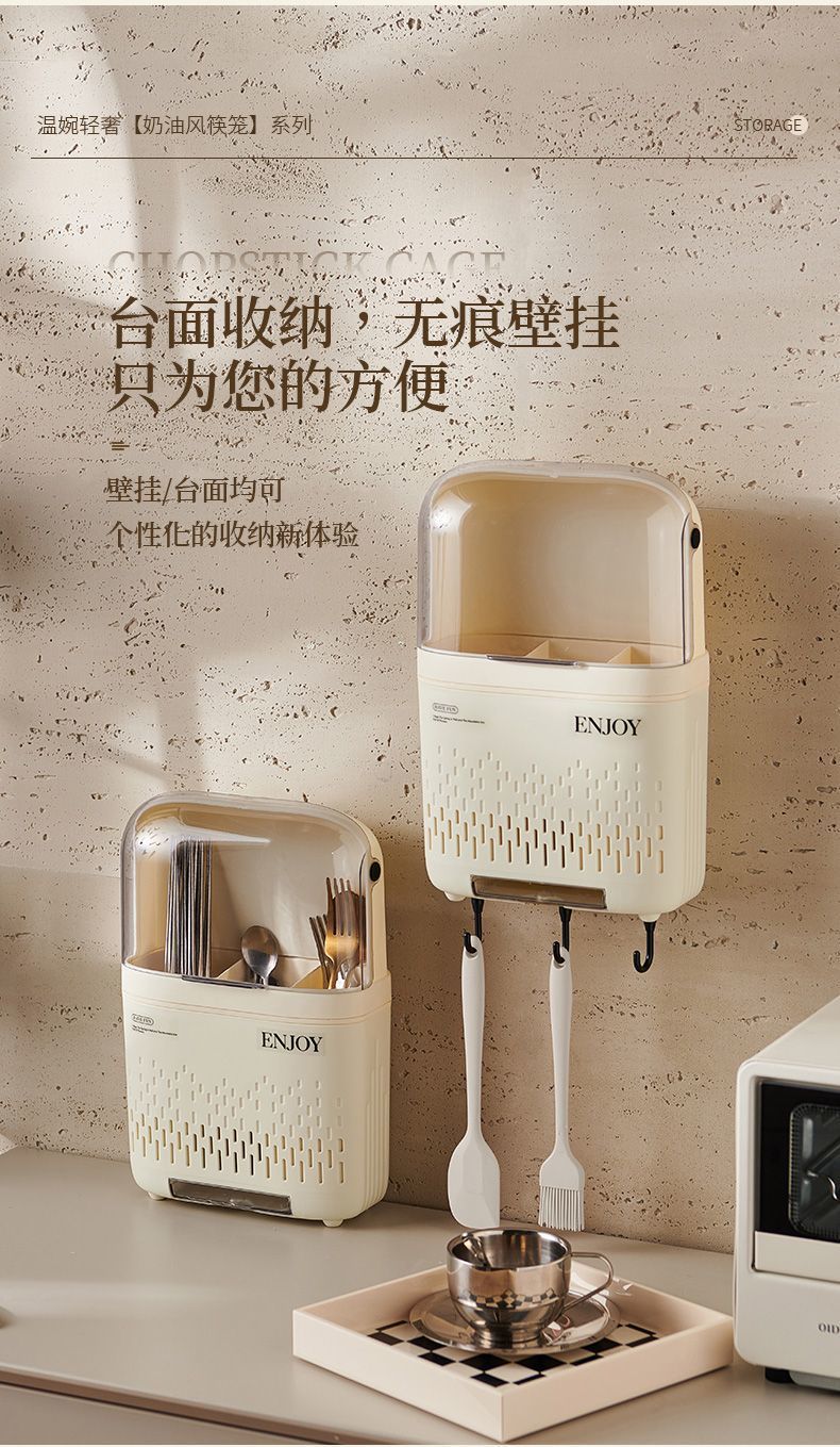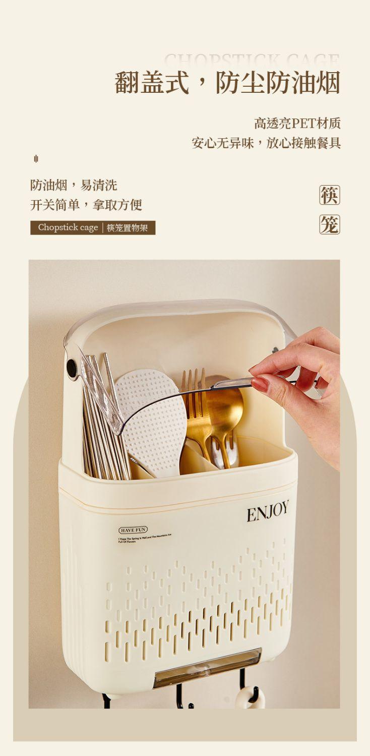 Caja de almacenamiento para palillos, jaula para palillos de cocina de pared para el hogar, nueva cesta para escurrir cucharas a prueba de polvo, venta al por mayor