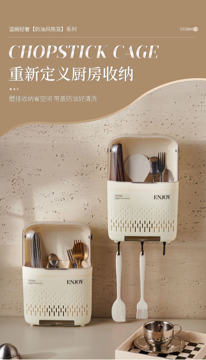 Compra Caja de almacenamiento para palillos, jaula para palillos de cocina de pared para el hogar, nueva cesta para escurrir cucharas a prueba de polvo, venta al por mayor al por mayor en Joom.pro