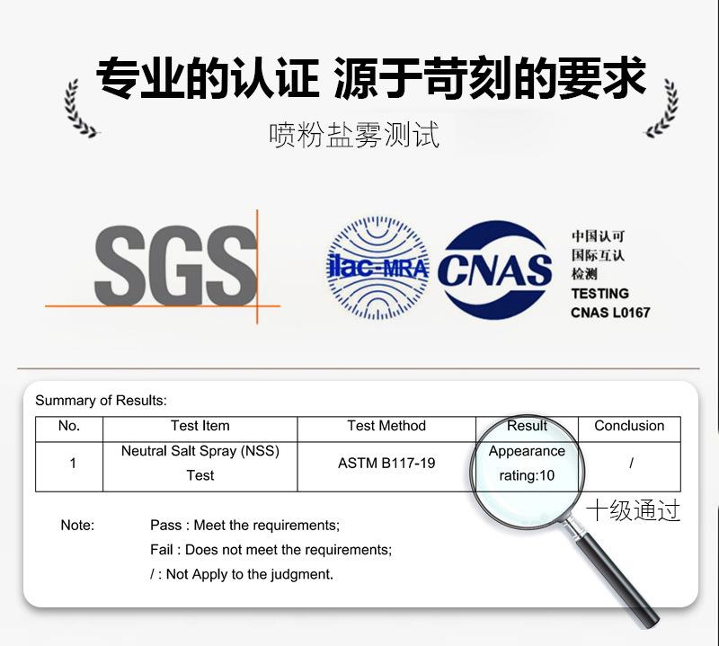 Sus procedimientos de producción cumplen con los estándares internacionales.(Inspección estricta de calidad mediante prueba de niebla salina)