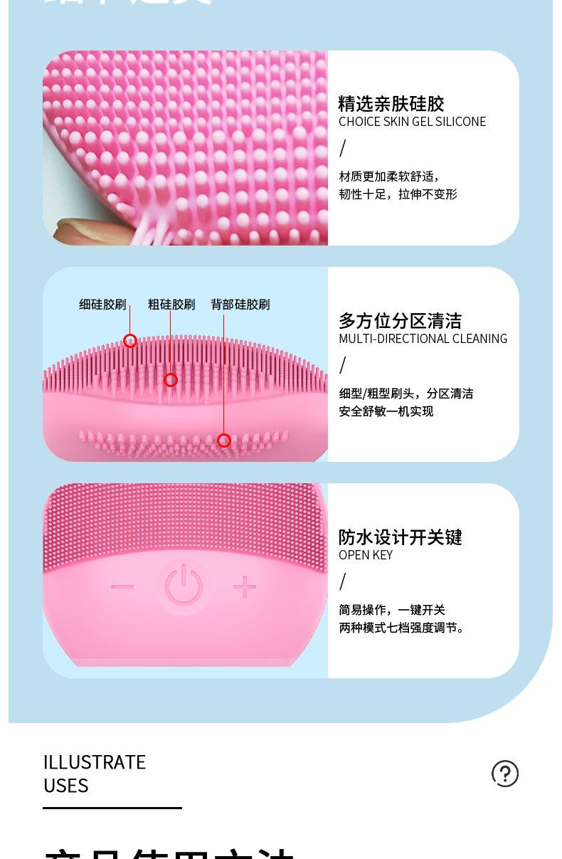 Cross-border hot-selling silicone facial cleansing brush with 3-speed frequency conversion, one-piece dropshipping, mixed batch