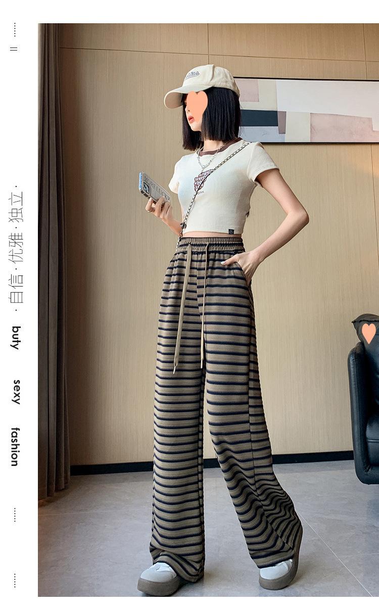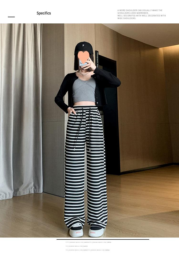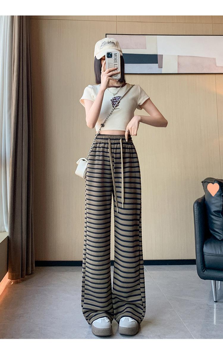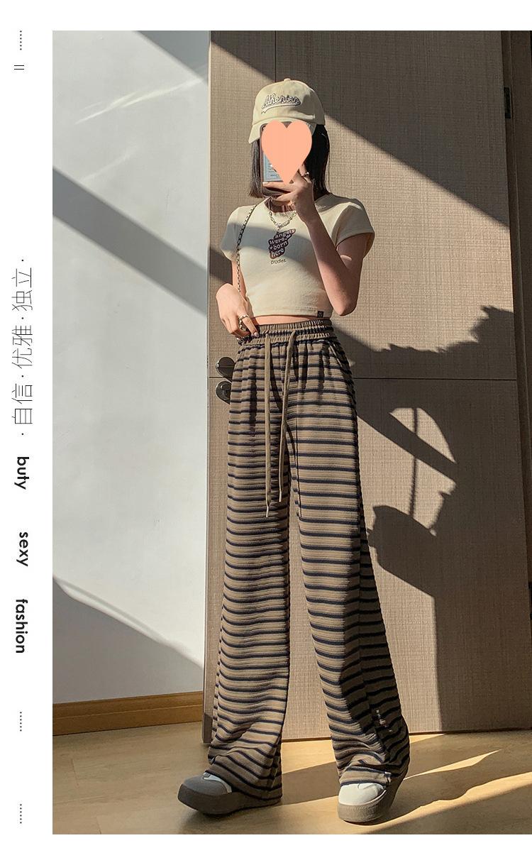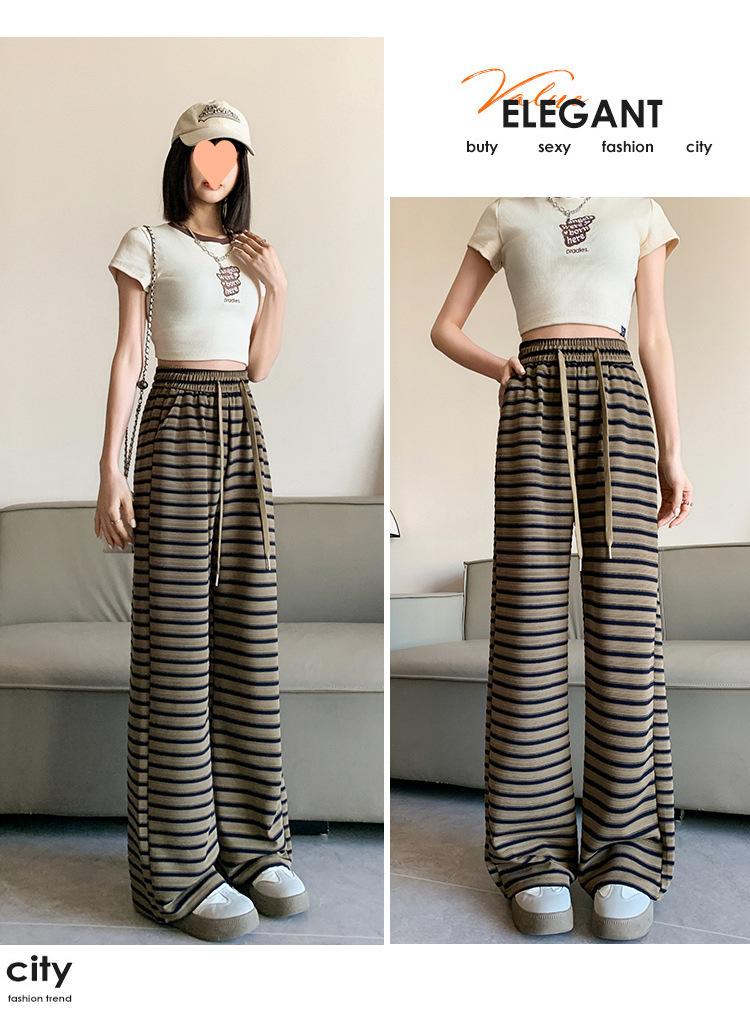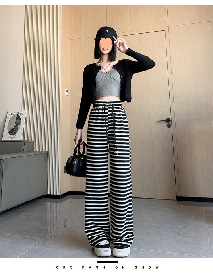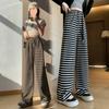 Pantalones casuales a rayas de pierna ancha para mujer Verano 2025 Cintura alta Sueltos Modernos Estilo coreano Tendencia Adelgazantes Rectos