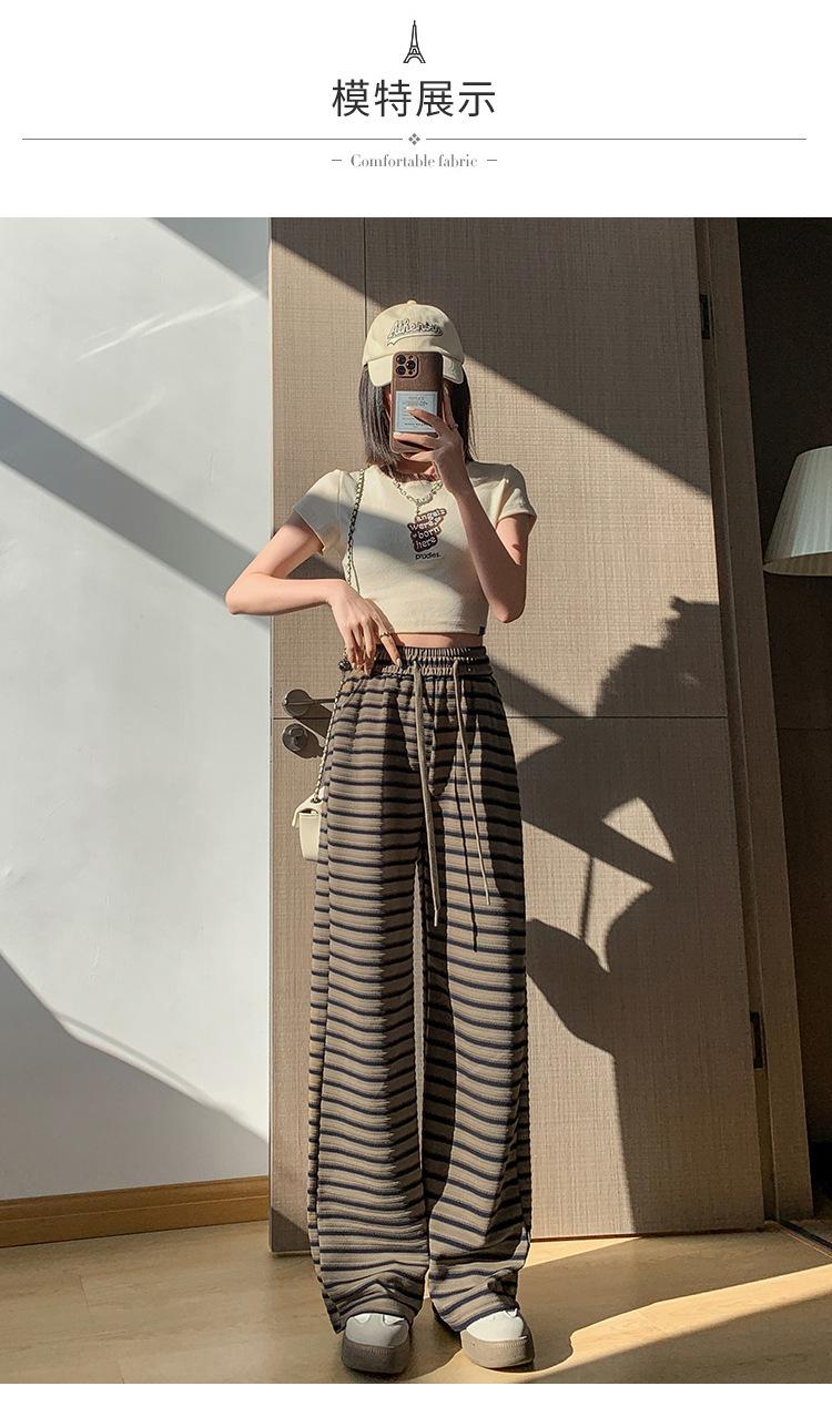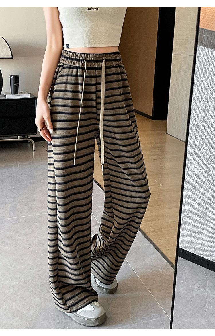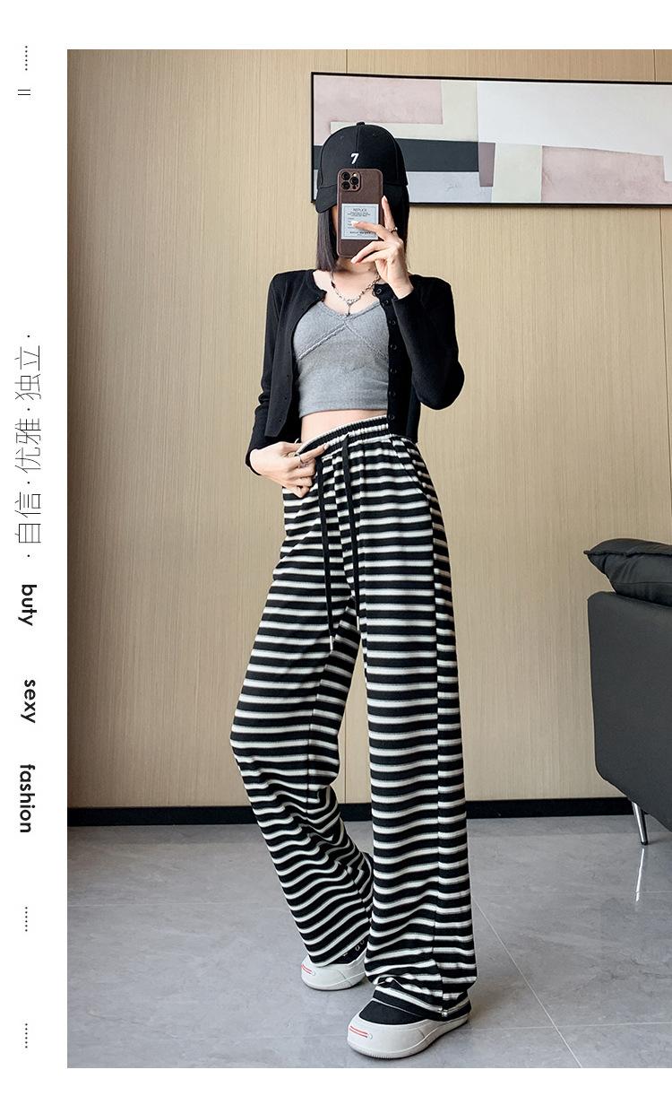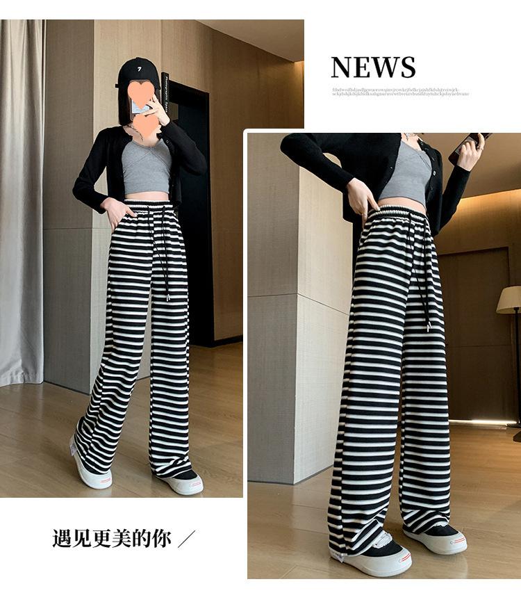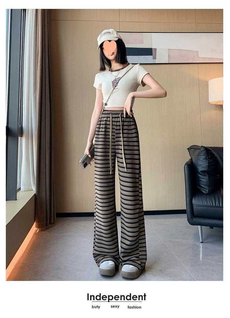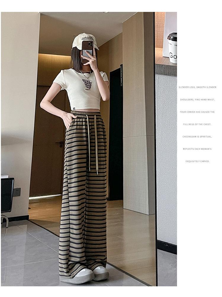 Pantalones casuales a rayas de pierna ancha para mujer Verano 2025 Cintura alta Sueltos Modernos Estilo coreano Tendencia Adelgazantes Rectos