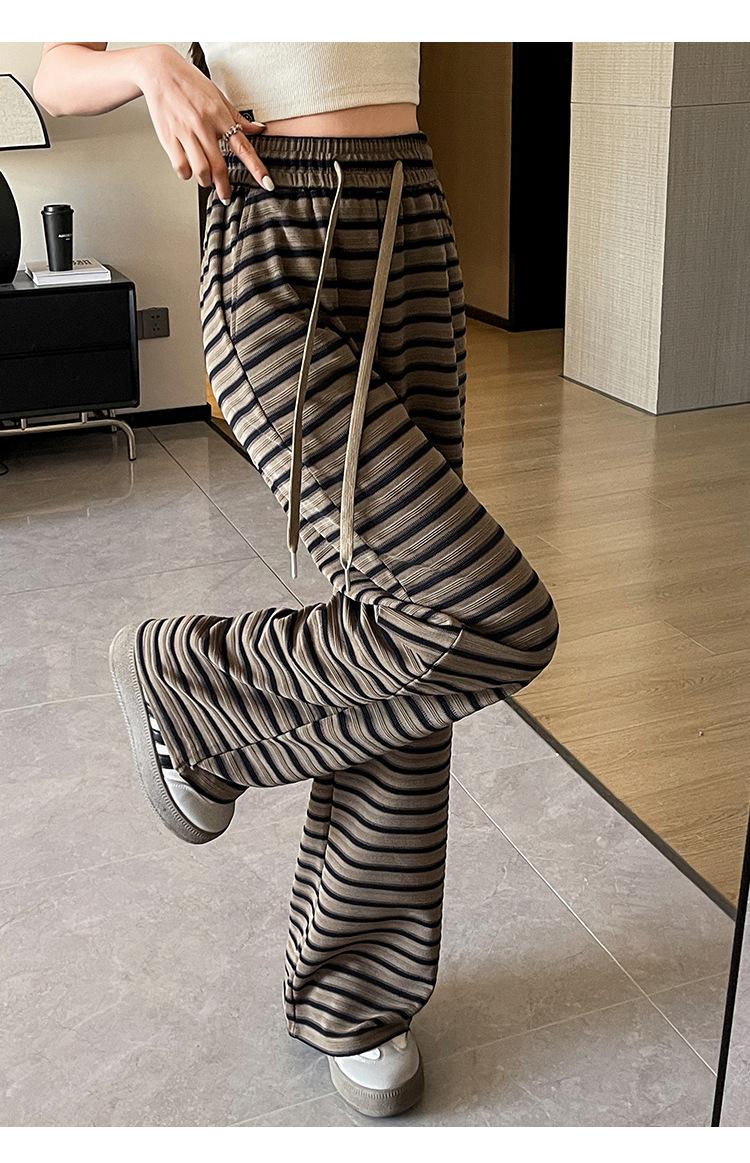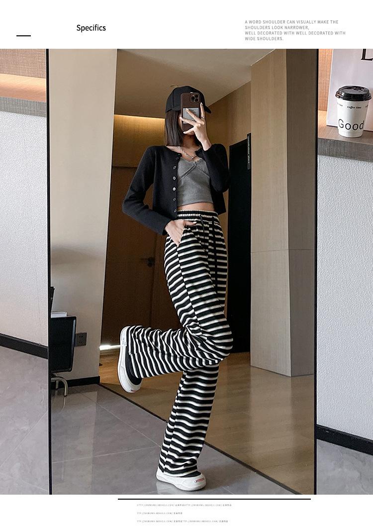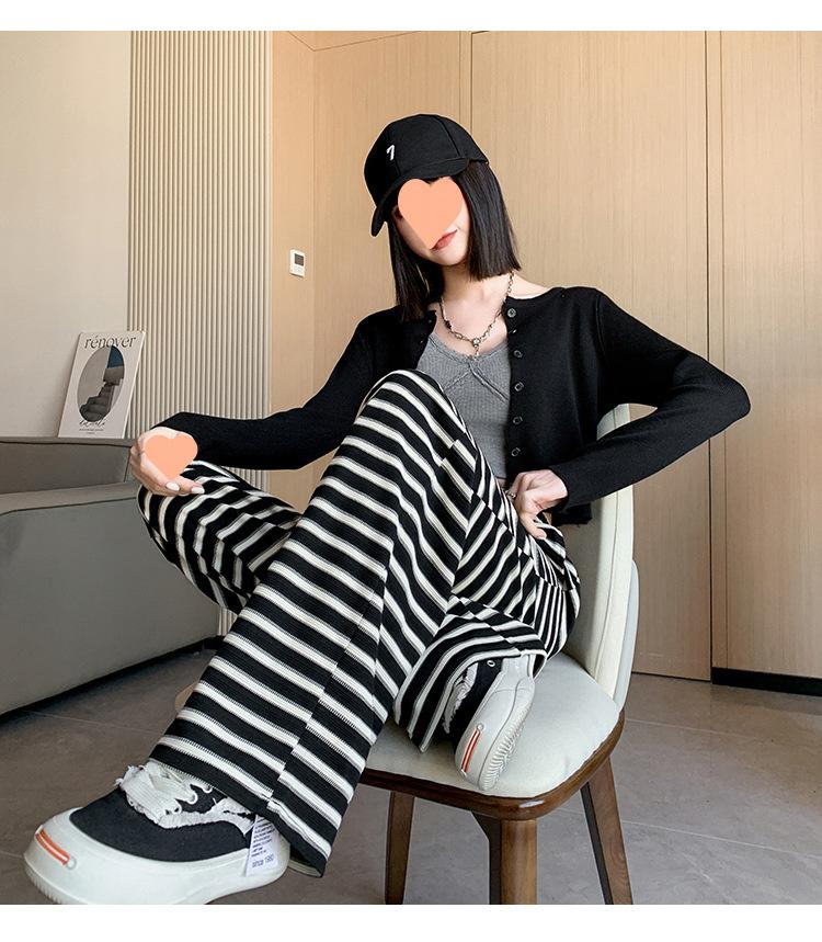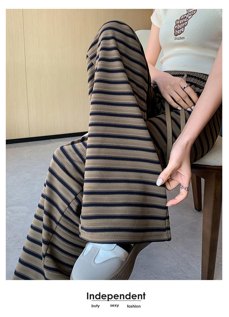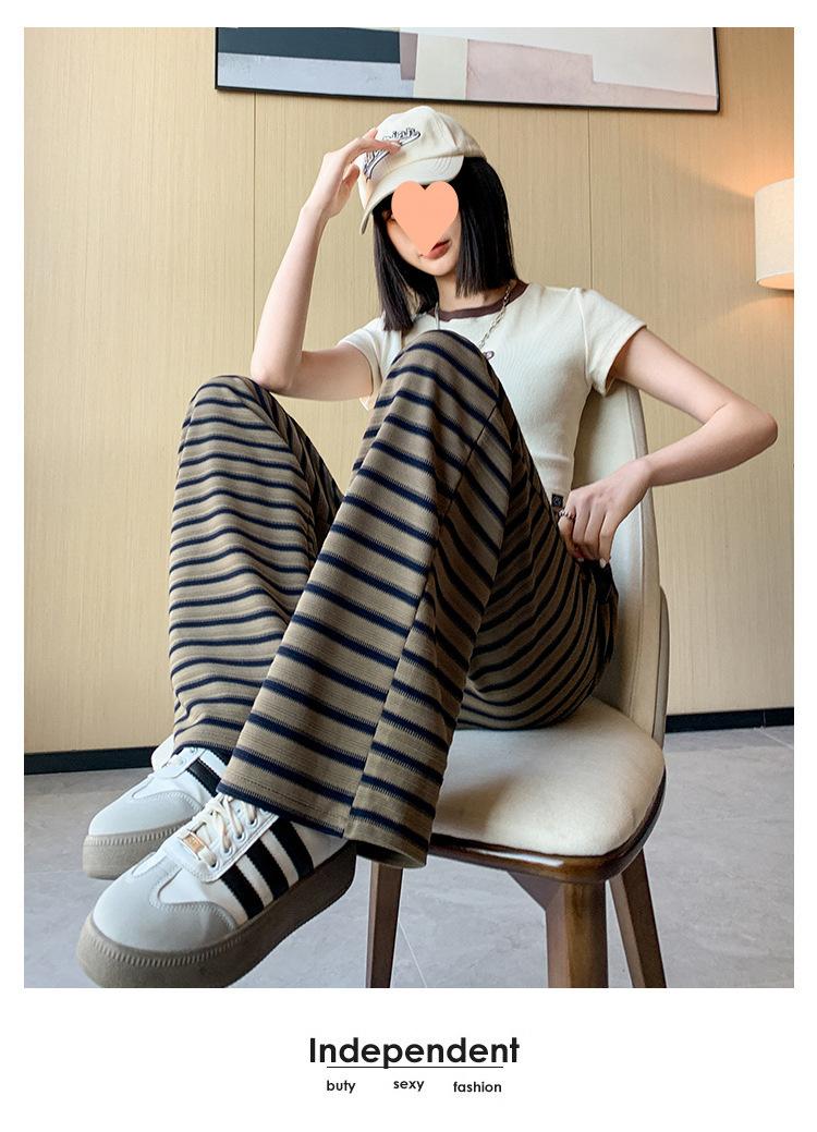 Pantalones casuales a rayas de pierna ancha para mujer Verano 2025 Cintura alta Sueltos Modernos Estilo coreano Tendencia Adelgazantes Rectos