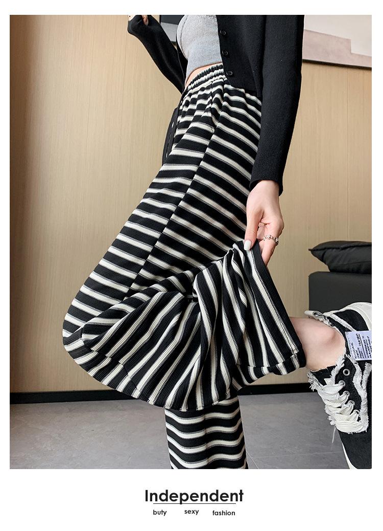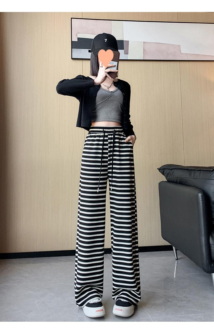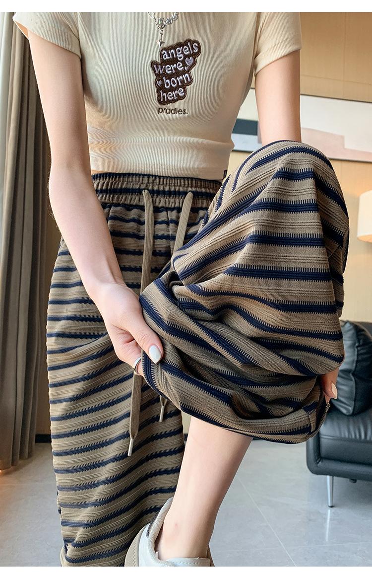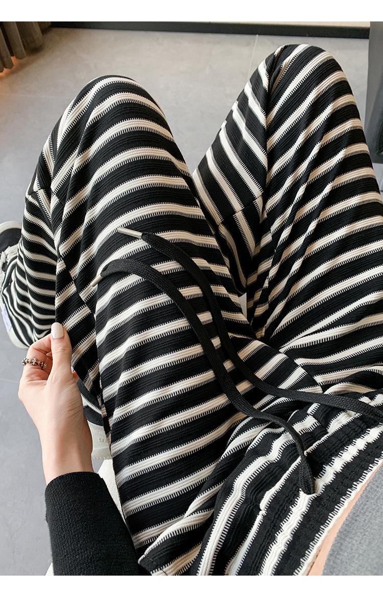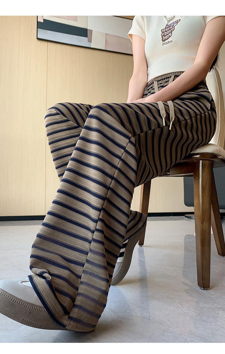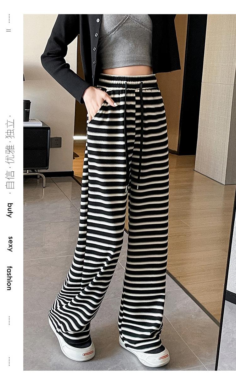 Pantalones casuales a rayas de pierna ancha para mujer Verano 2025 Cintura alta Sueltos Modernos Estilo coreano Tendencia Adelgazantes Rectos