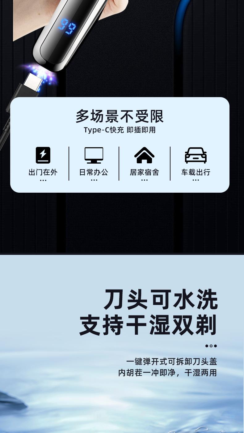 Afeitadora de doble propósito transfronteriza para hombre, afeitadora de barba eléctrica portátil, carga rápida, pantalla digital inteligente, afeitadora portátil