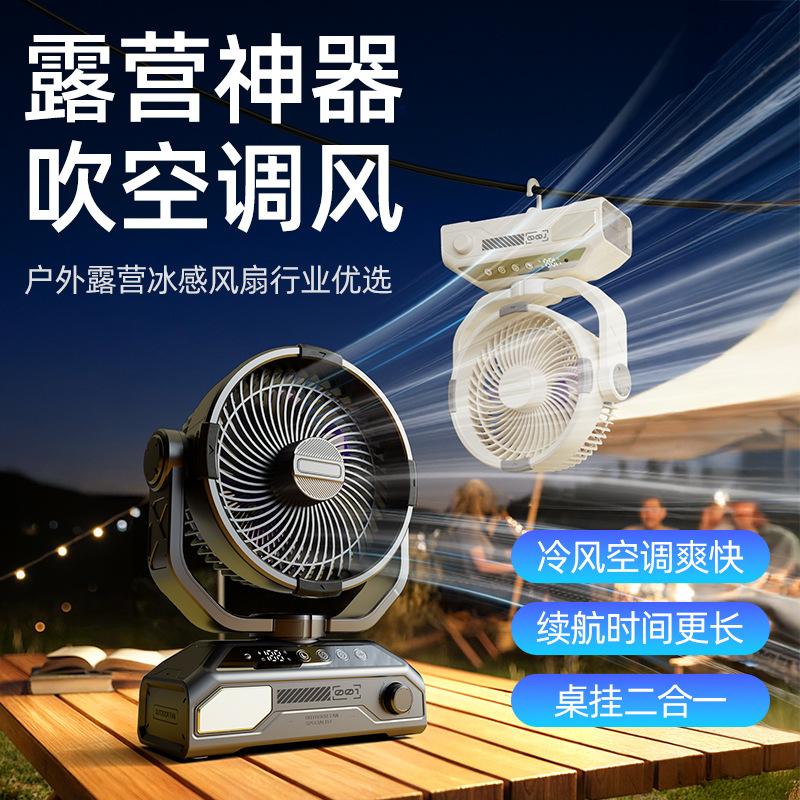 Ventilador de camping al aire libre transfronterizo, ventilador eléctrico automático con vibración para el hogar, ventilador de techo portátil de viento fuerte, iluminación con control remoto