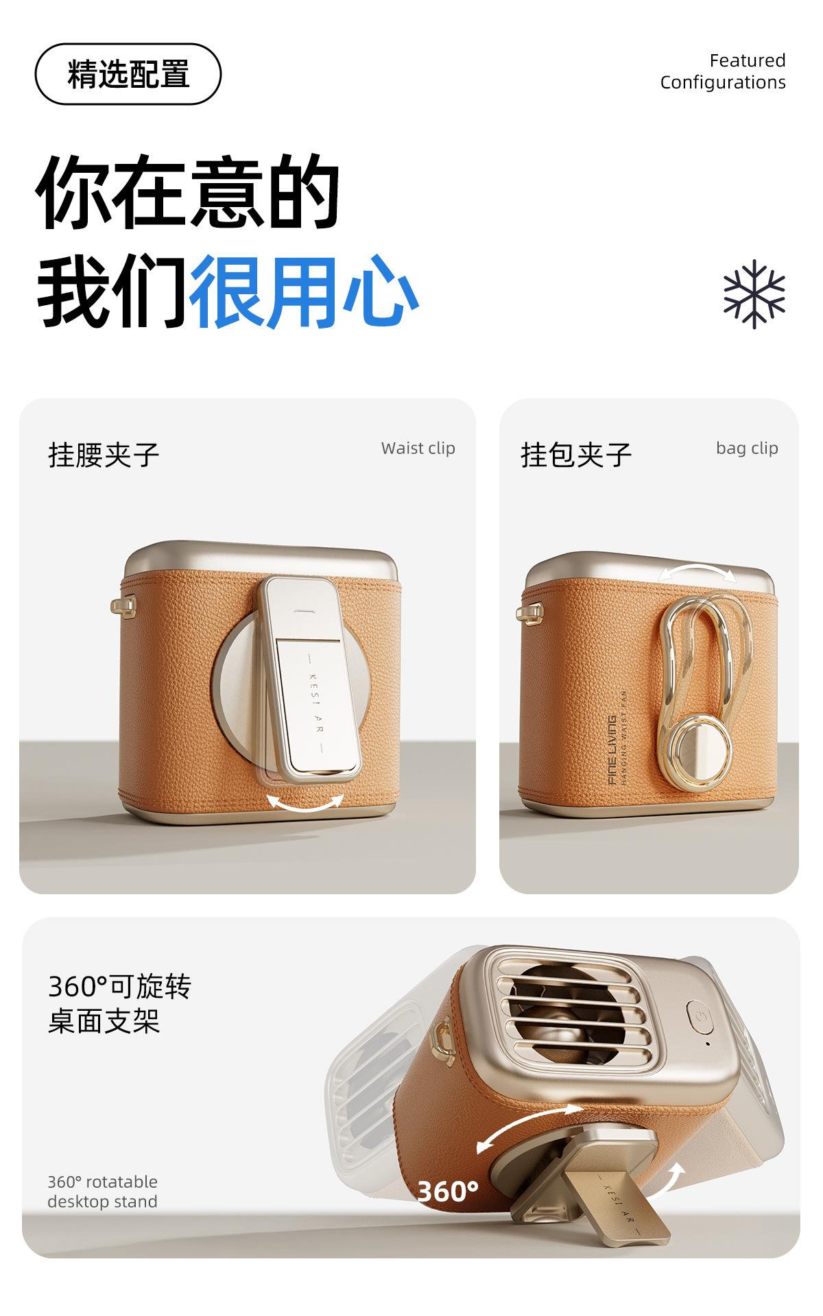 Ventilador portátil para colgar en la cintura, con clip de carga, pequeño ventilador para compras al aire libre, artefacto de enfriamiento para viajes, venta al por mayor transfronteriza