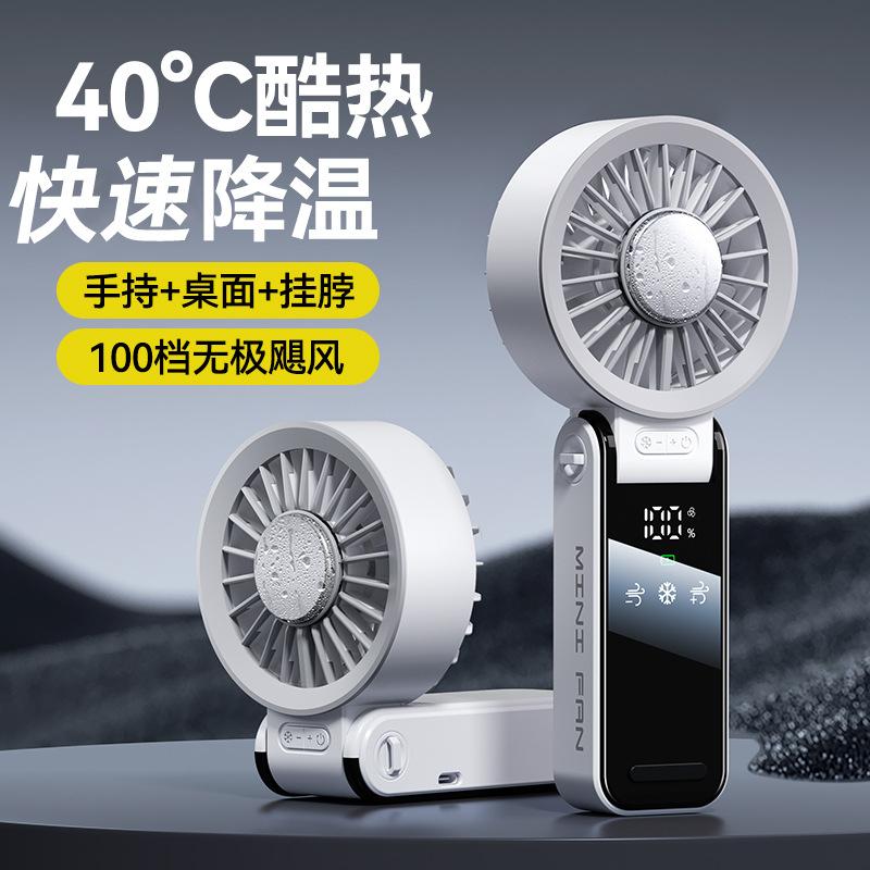 Ventilador de refrigeración de ultra alta velocidad, viento fuerte, ventilador pequeño de mano, pantalla digital, mini ventilador de escritorio USB portátil de 100 velocidades