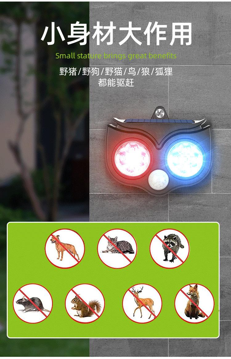 Compra Repelente solar para ratones, para exteriores, con luz roja y azul intermitente de pared, repelente ultrasónico automático para animales. al por mayor en Joom.pro