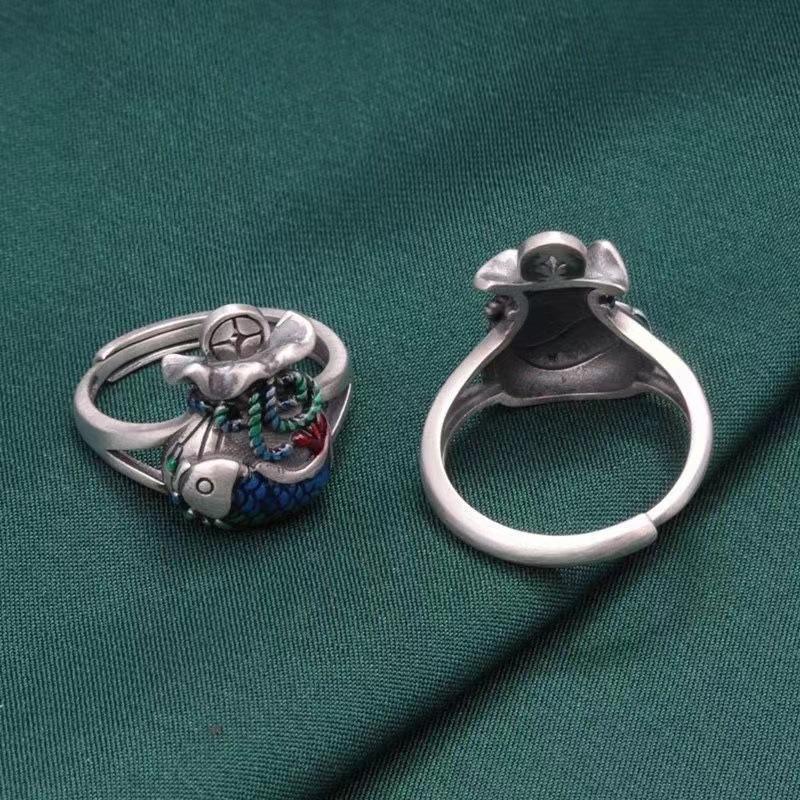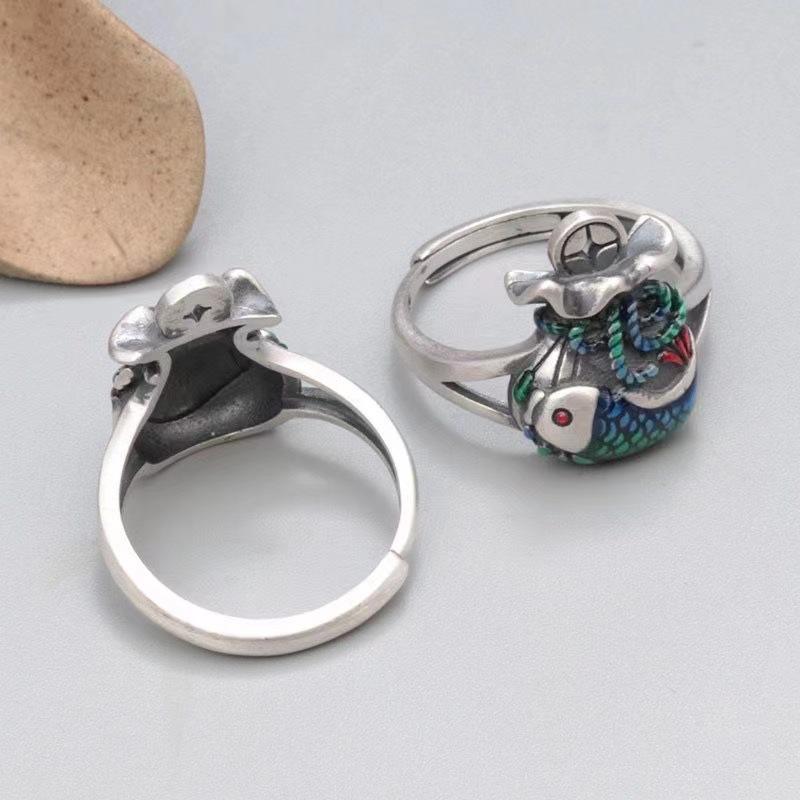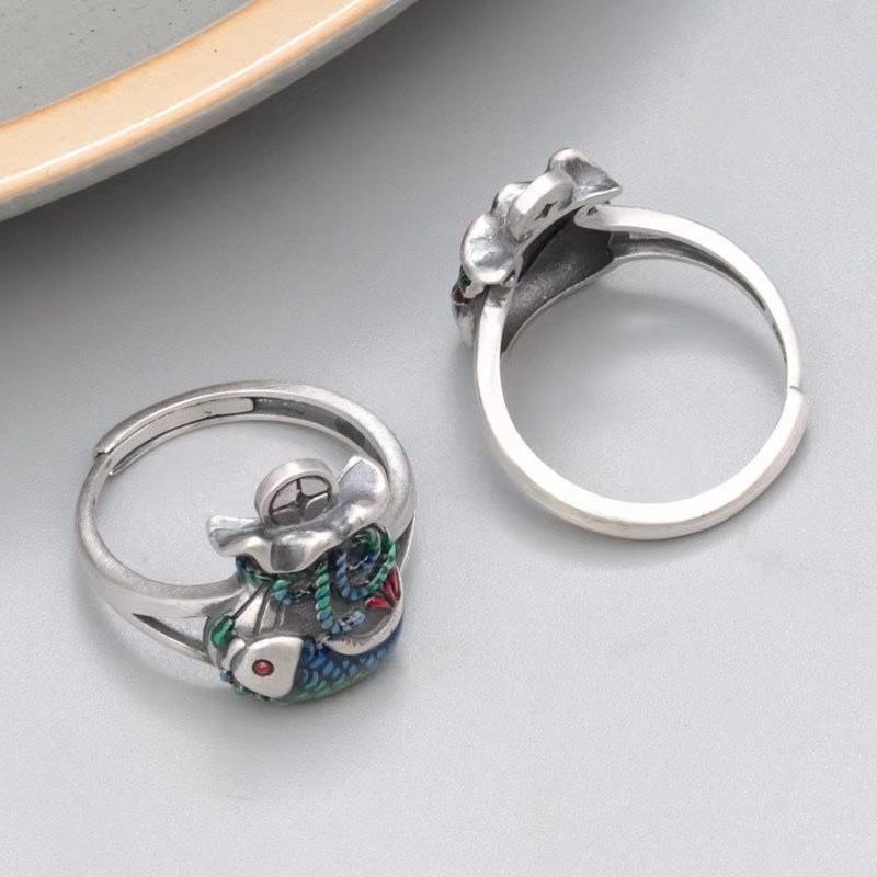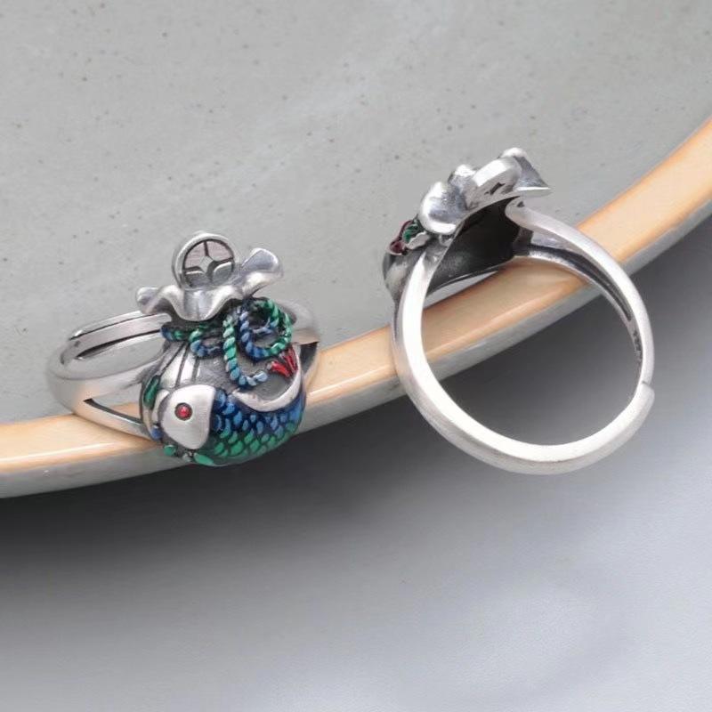 Xiangxu Gel Gotas de Aceite Artesanía Bolsa de Dinero Anillo Koi Retro Abierto Moneda Anillo Pez Pequeño Salida de Fábrica