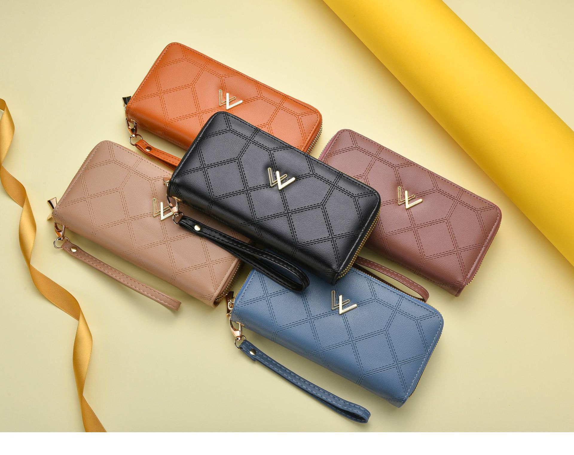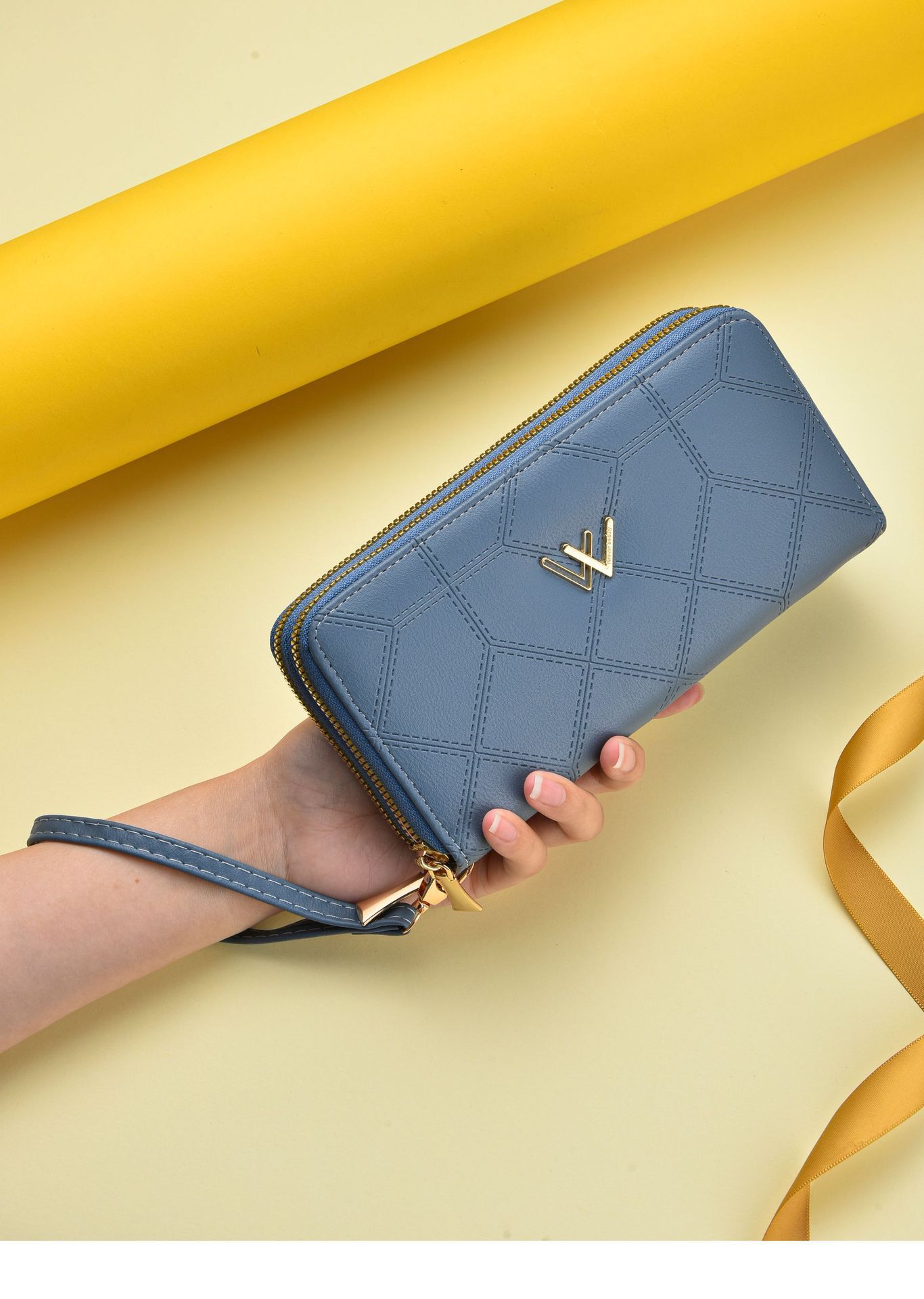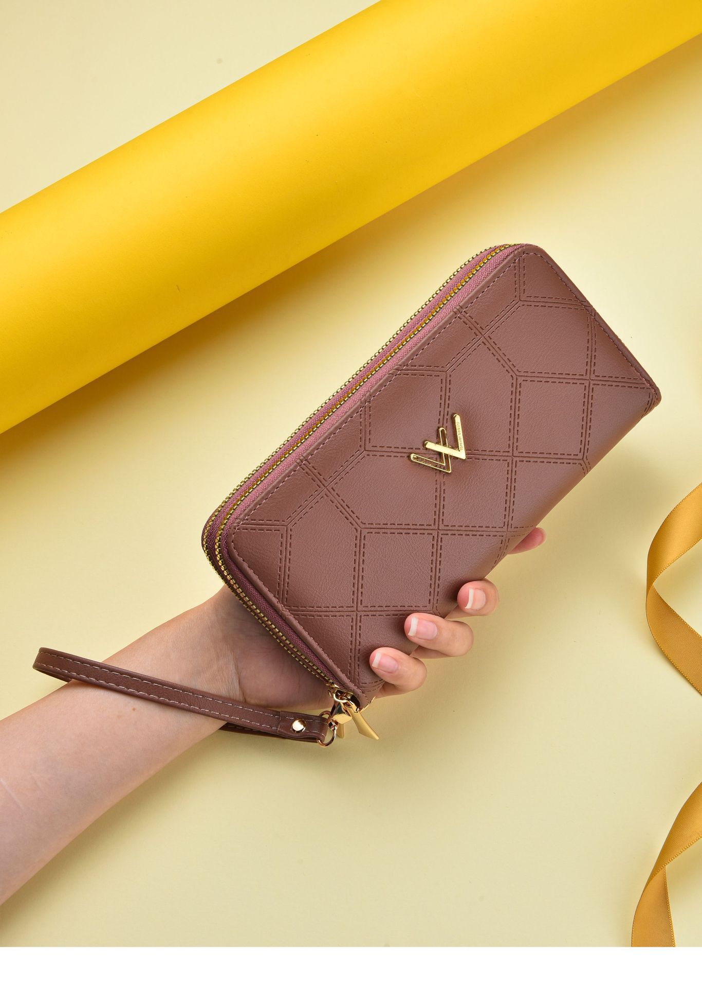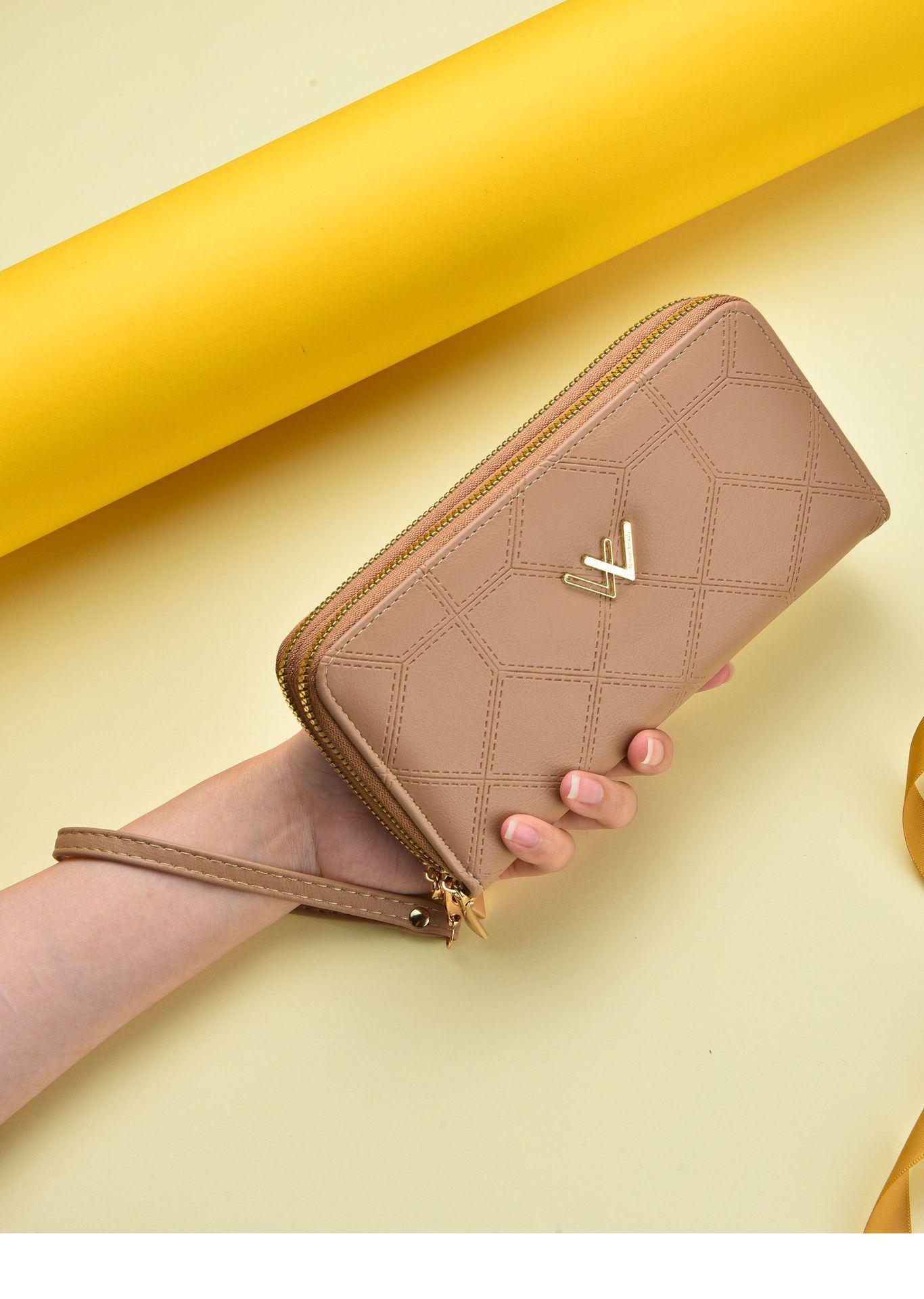 Nueva cartera con cremallera de doble capa de estilo coreano para mujer, bolso de mano largo para mujer, cartera con pulsera multifunción y múltiples tarjetas para mujer