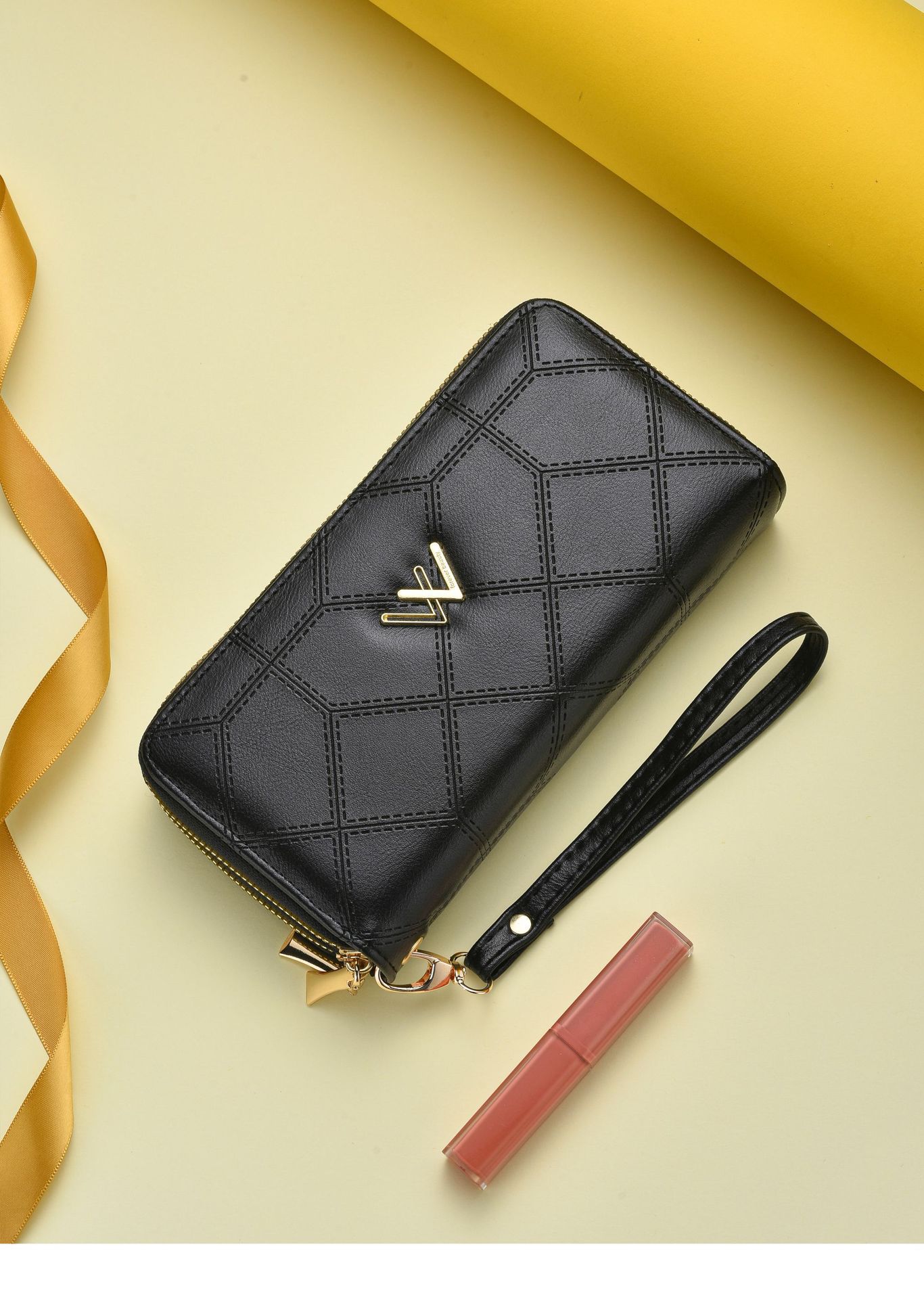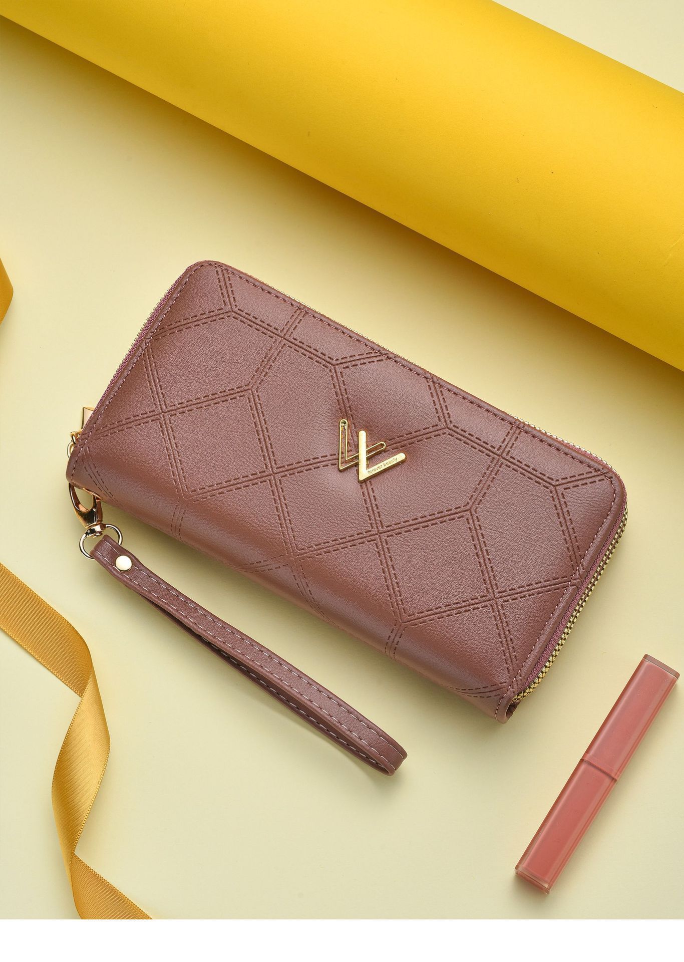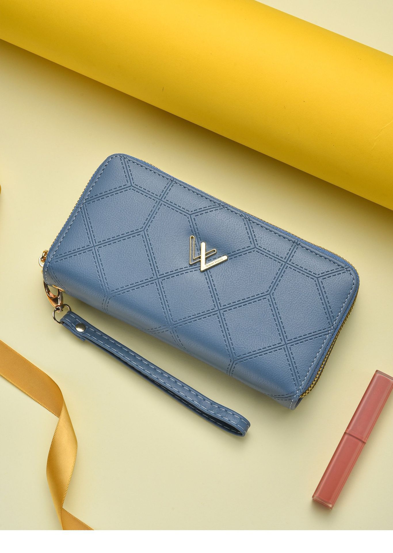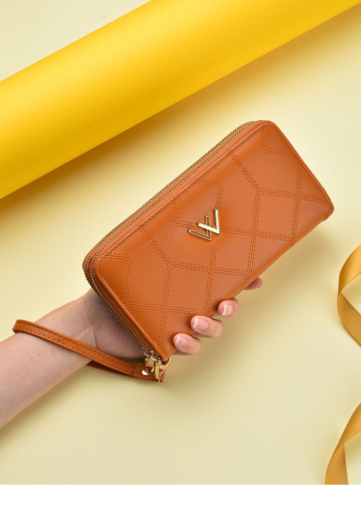 Nueva cartera con cremallera de doble capa de estilo coreano para mujer, bolso de mano largo para mujer, cartera con pulsera multifunción y múltiples tarjetas para mujer