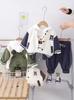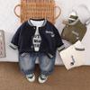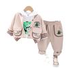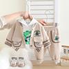Traje de primavera y otoño para niños 2025, nuevo traje de béisbol con capucha de tres piezas con dibujos animados de patchwork para bebés de estilo extranjero para niños