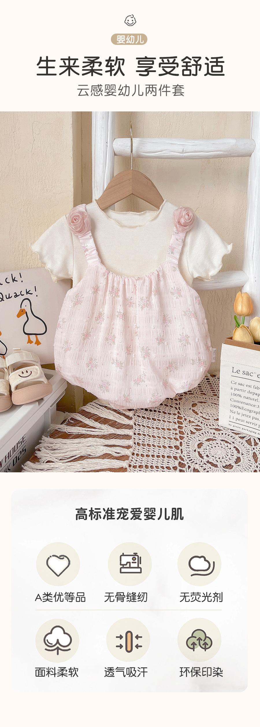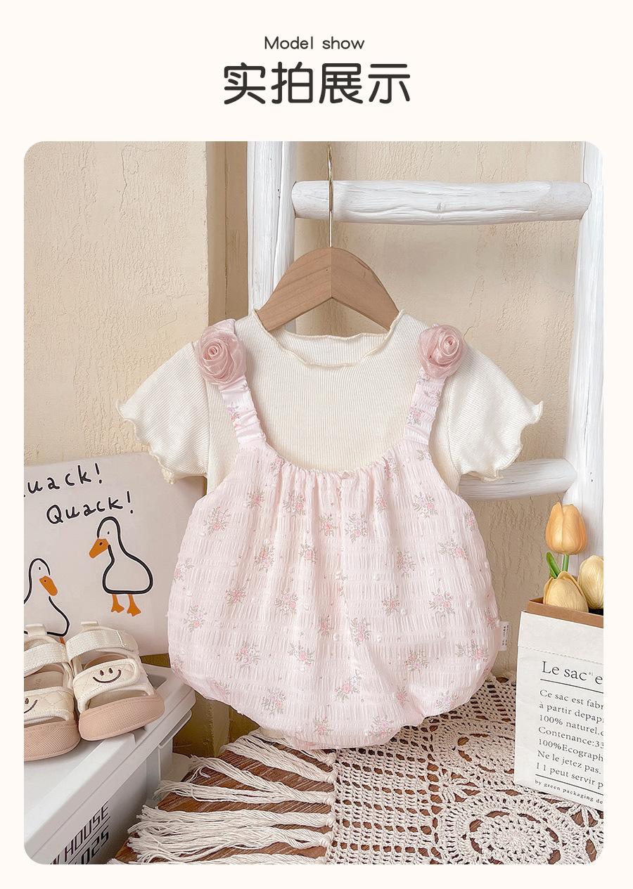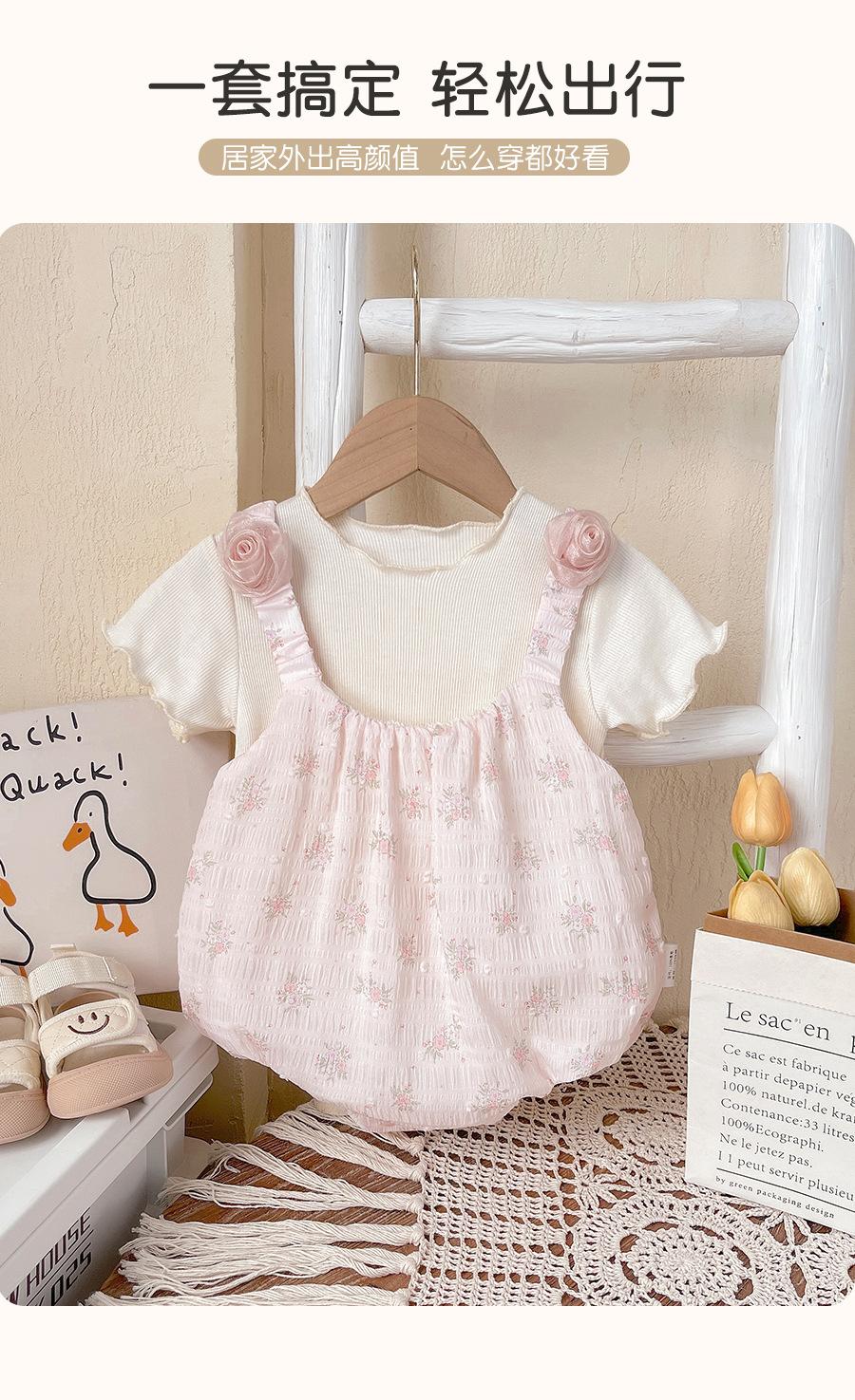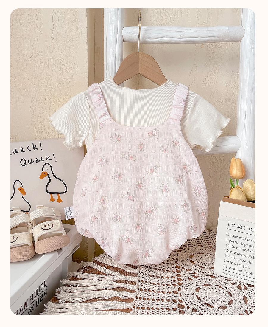 Bolsa de Verano para Bebé 2025 Traje de Ropa de Pedos Ropa de Verano para Recién Nacido Tesoro de Mujer Floral Triángulo Ropa de Escalada Conjunto de Dos Piezas