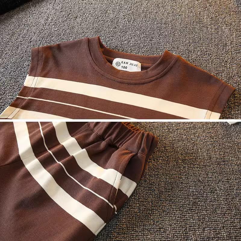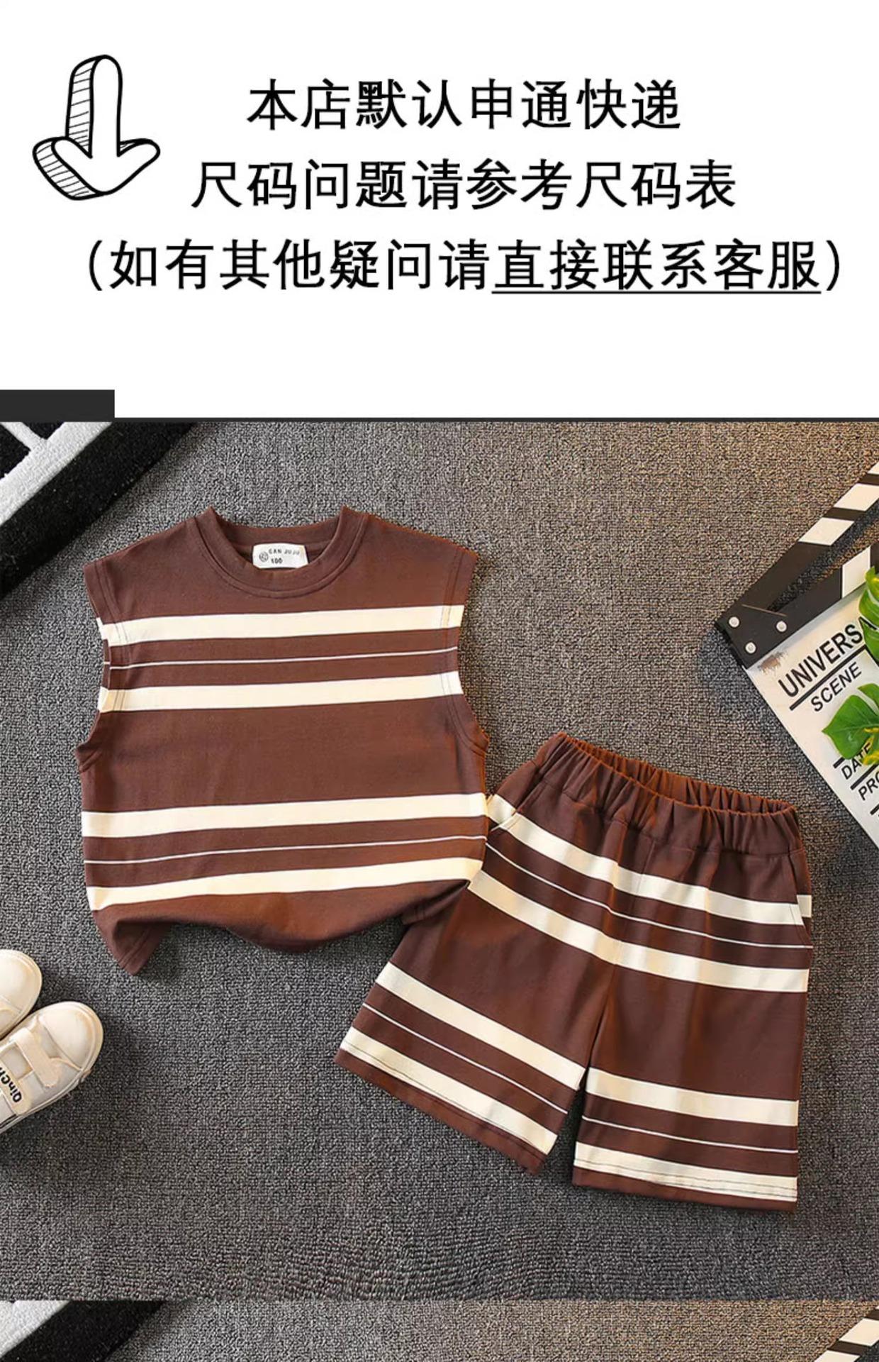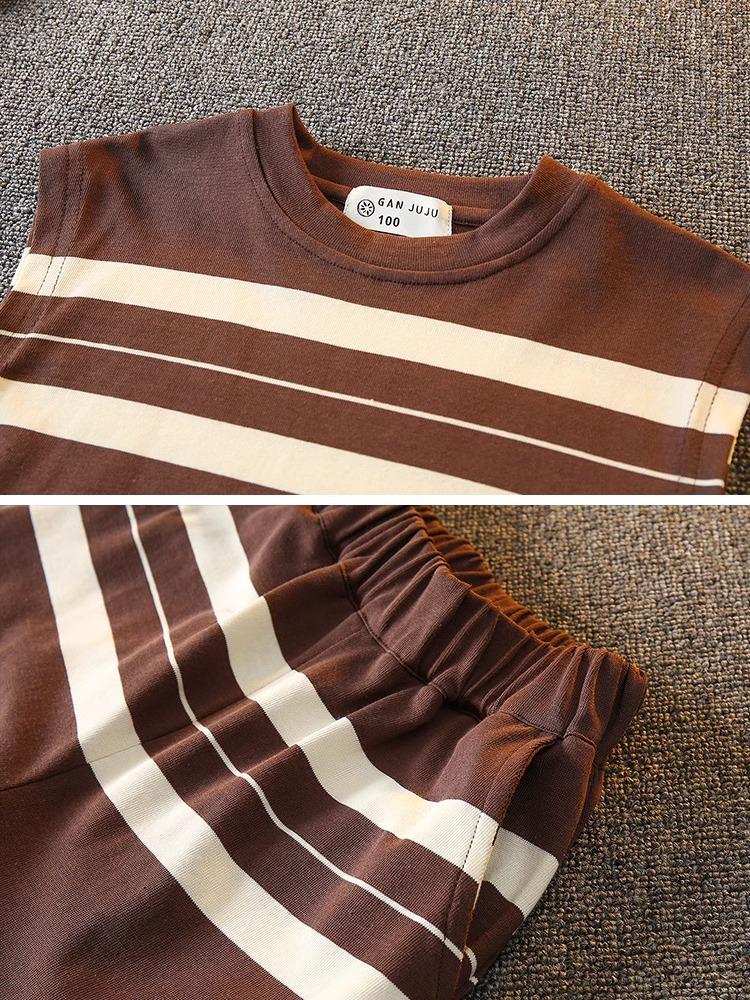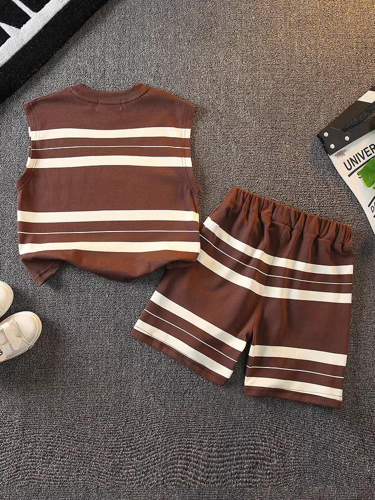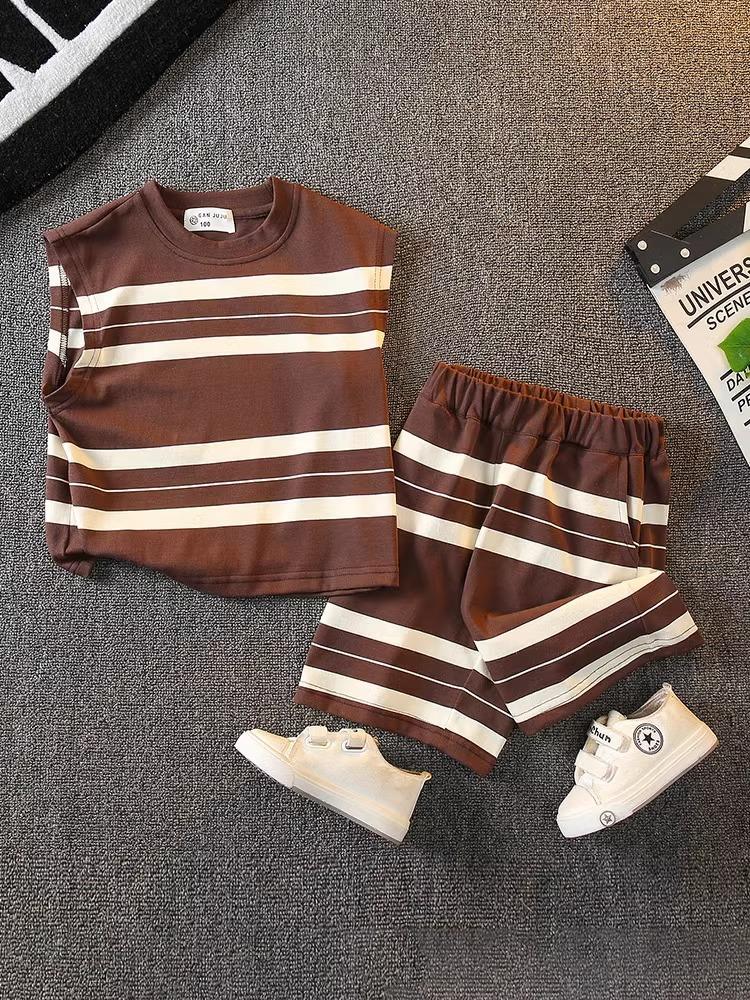 Traje de Verano para Niño 2025 Nuevo Estilo Estilo Infantil Rayas Tops de Chaleco sin Mangas Niños Niño Bebé Pantalones Cortos