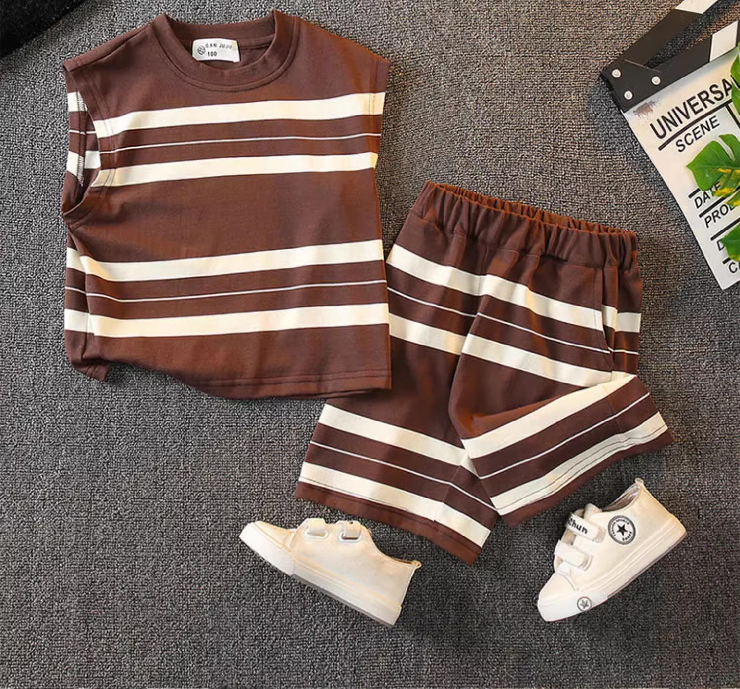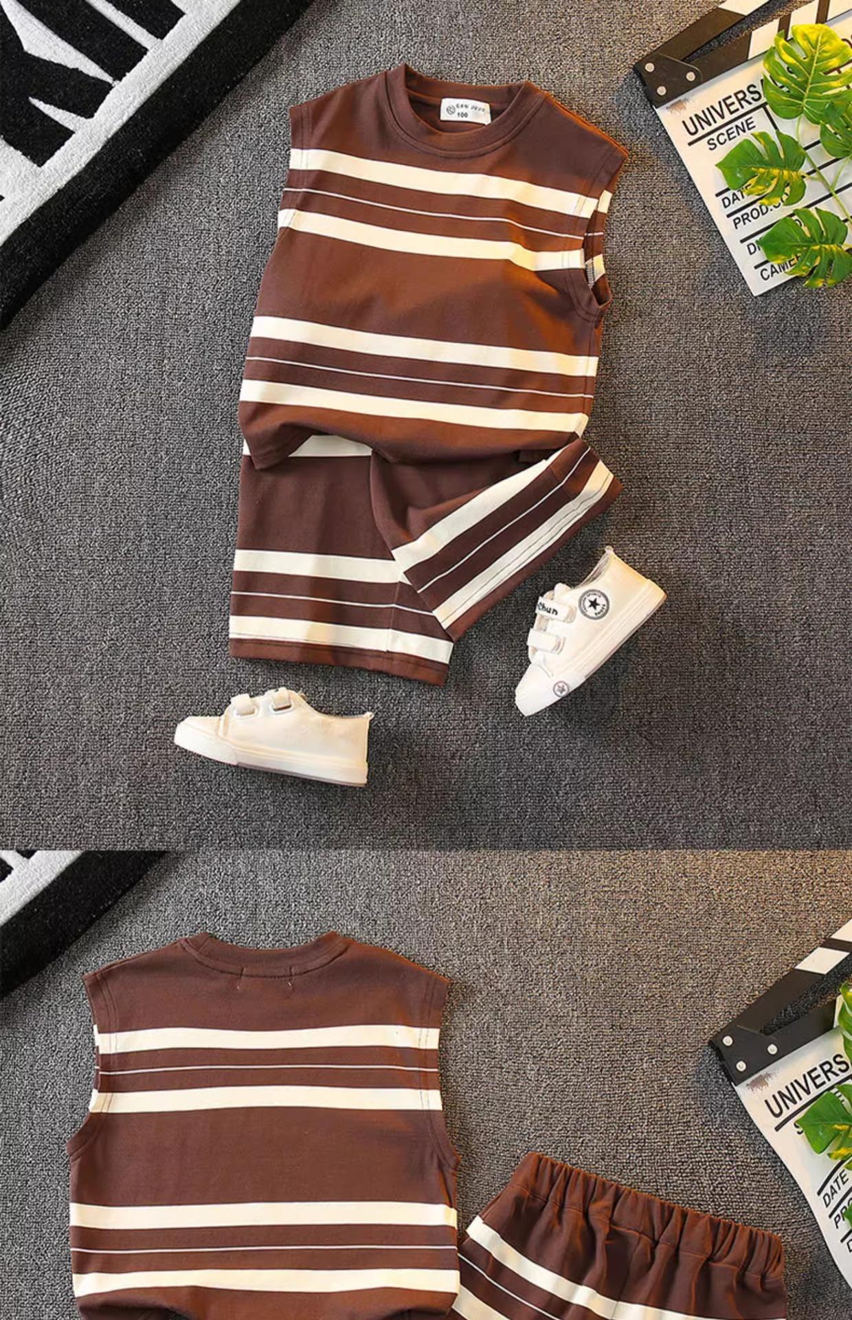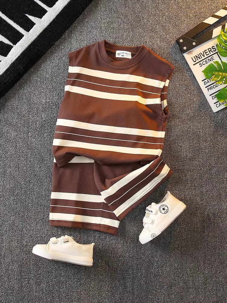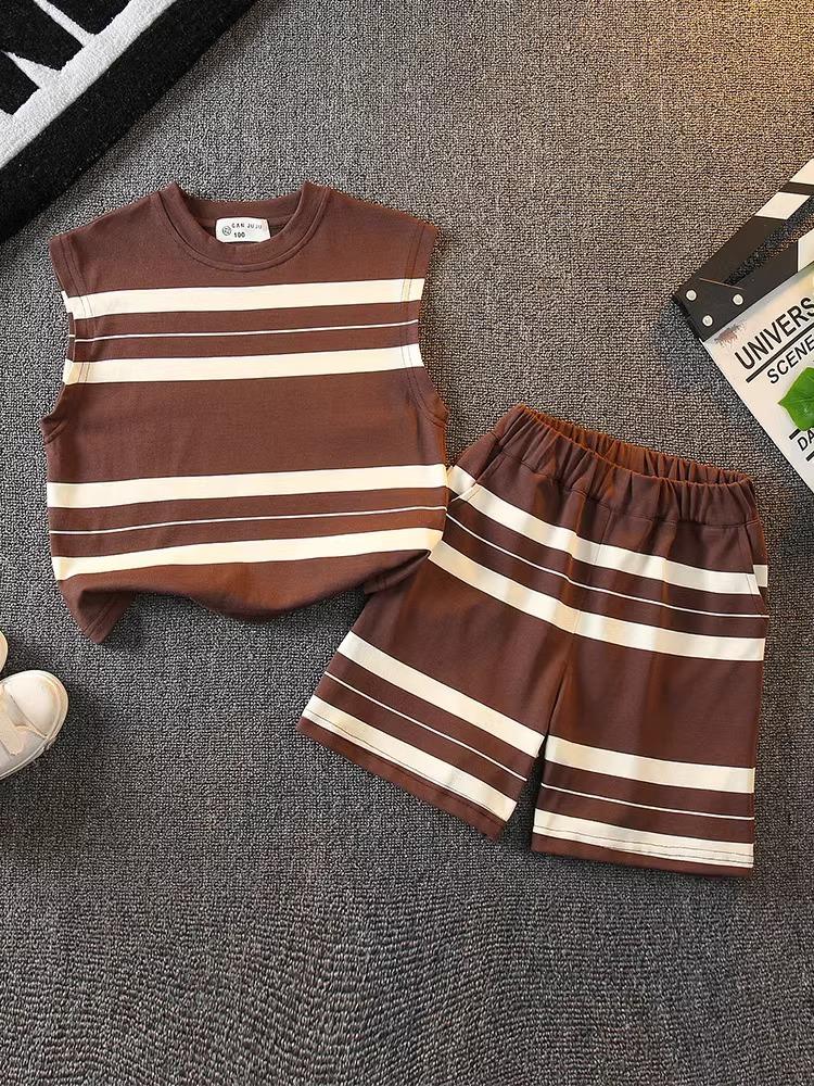 Traje de Verano para Niño 2025 Nuevo Estilo Estilo Infantil Rayas Tops de Chaleco sin Mangas Niños Niño Bebé Pantalones Cortos