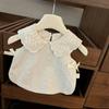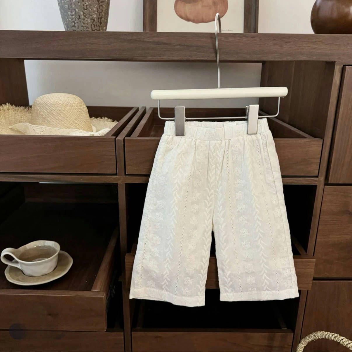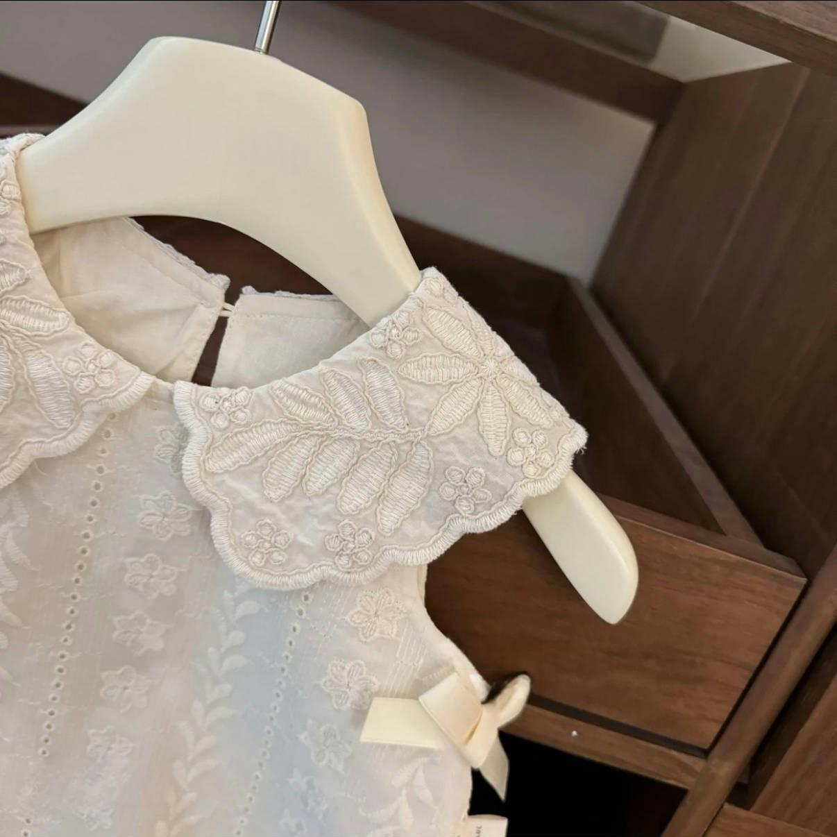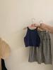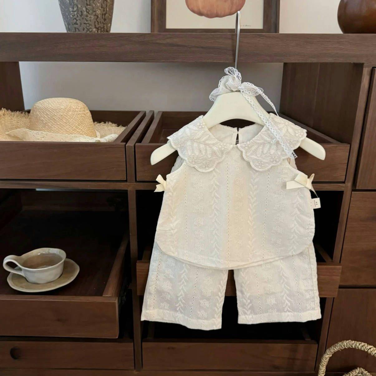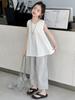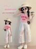 Traje de estilo occidental para niñas 2025 Verano Algodón Lazo Chaleco Top sin mangas Tirantes Pantalones rectos de pierna ancha Conjunto de dos piezas