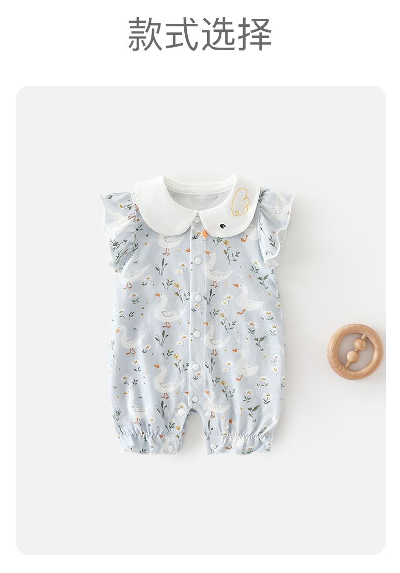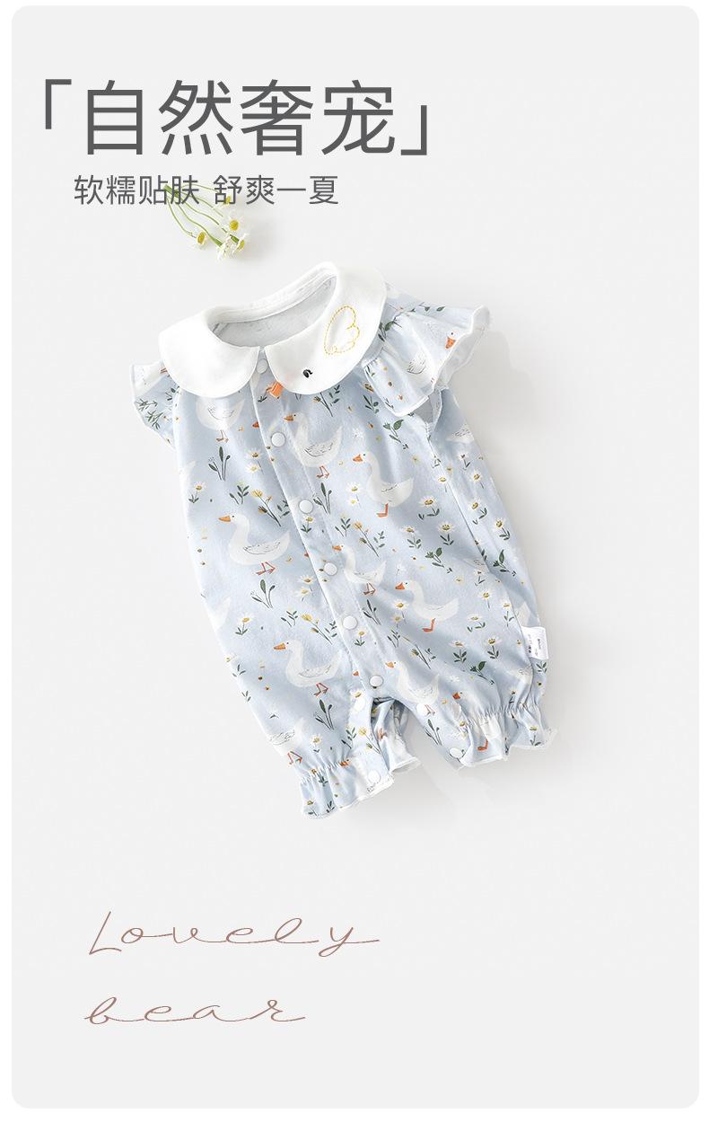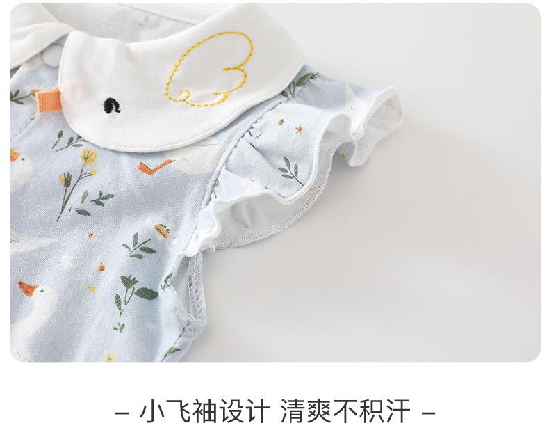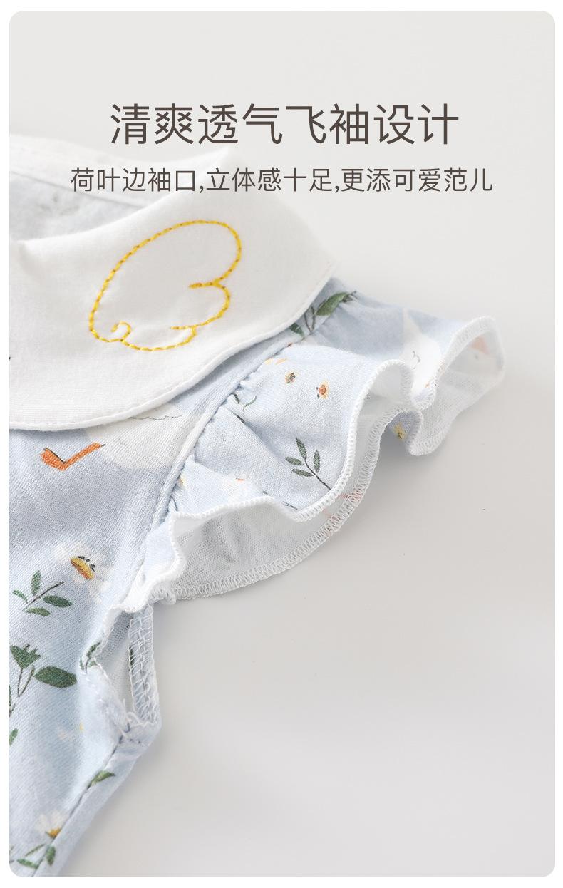 Traje de una pieza de manga volada de verano para bebé, traje delgado Hakayama para recién nacido para verano de niña, conjunto sin costuras de algodón puro