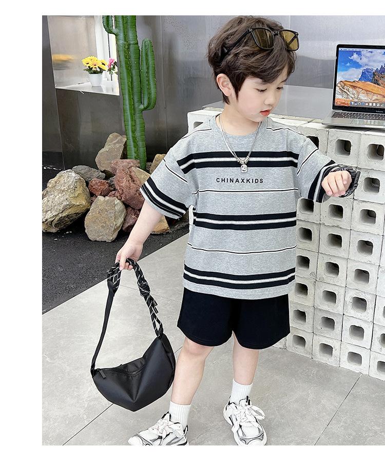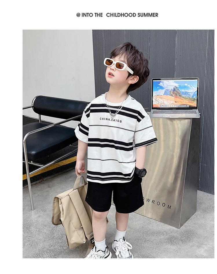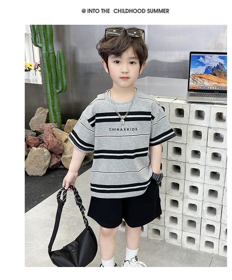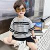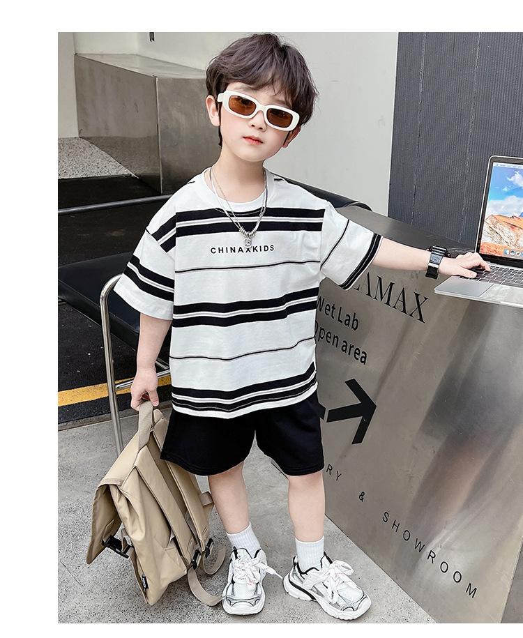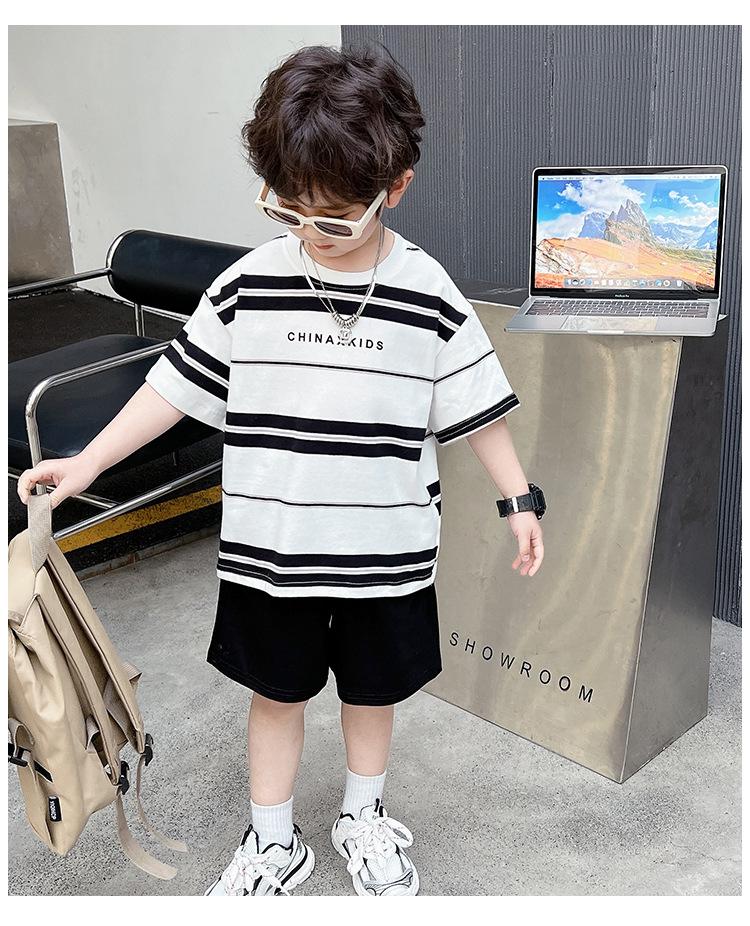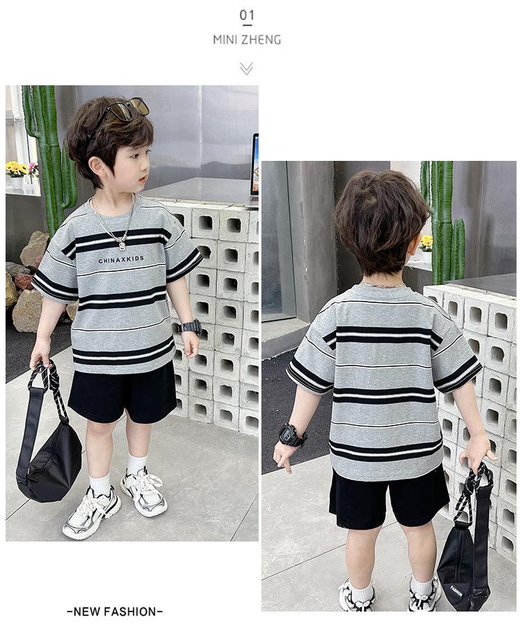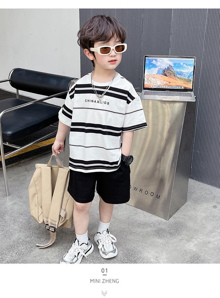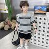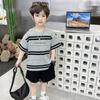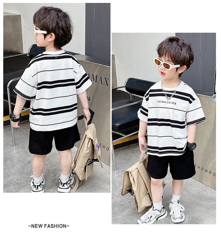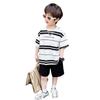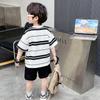 Traje de manga corta para niños, novedad de verano 2025, ropa a rayas para niños, traje informal de verano de dos piezas a la moda para bebés.