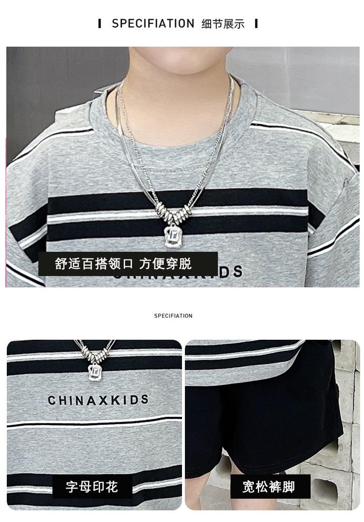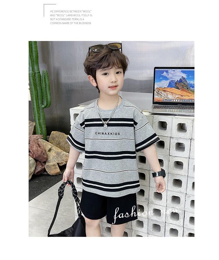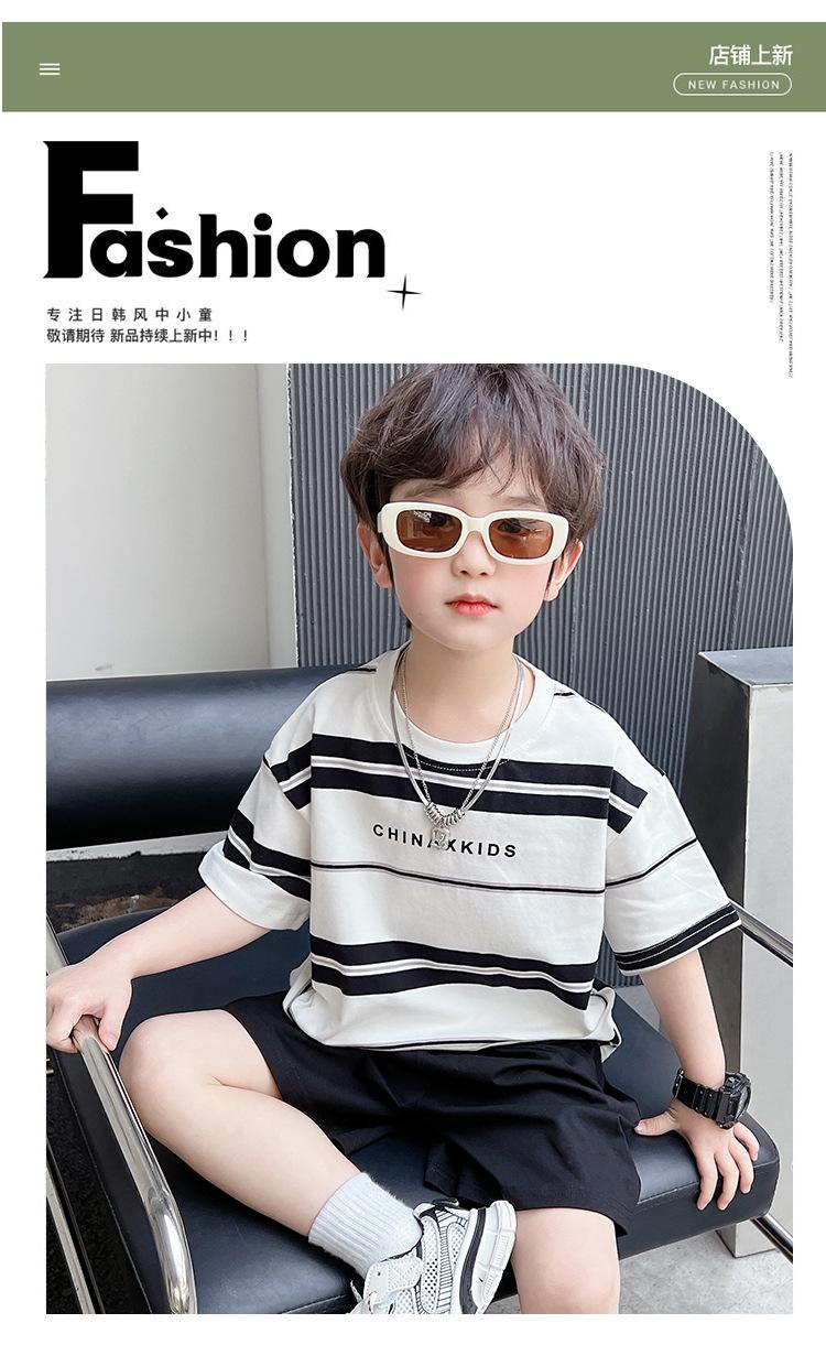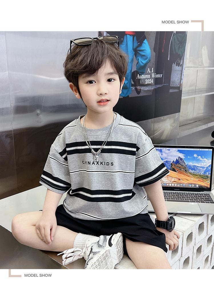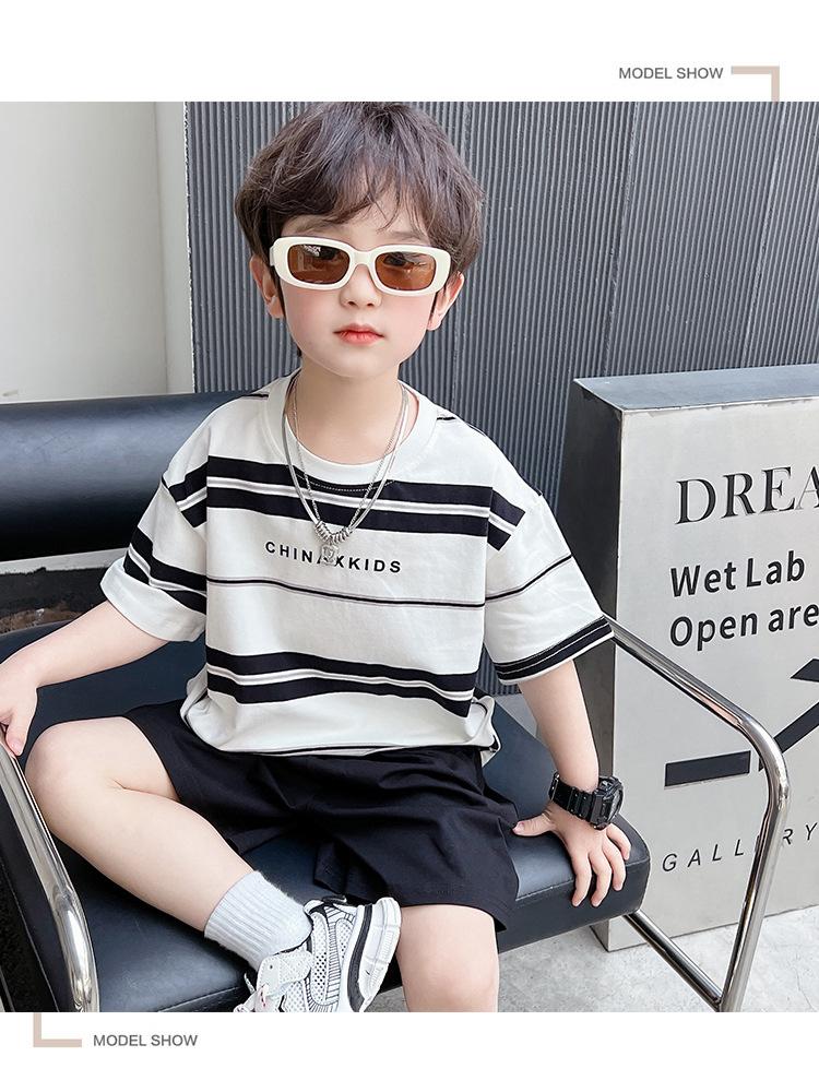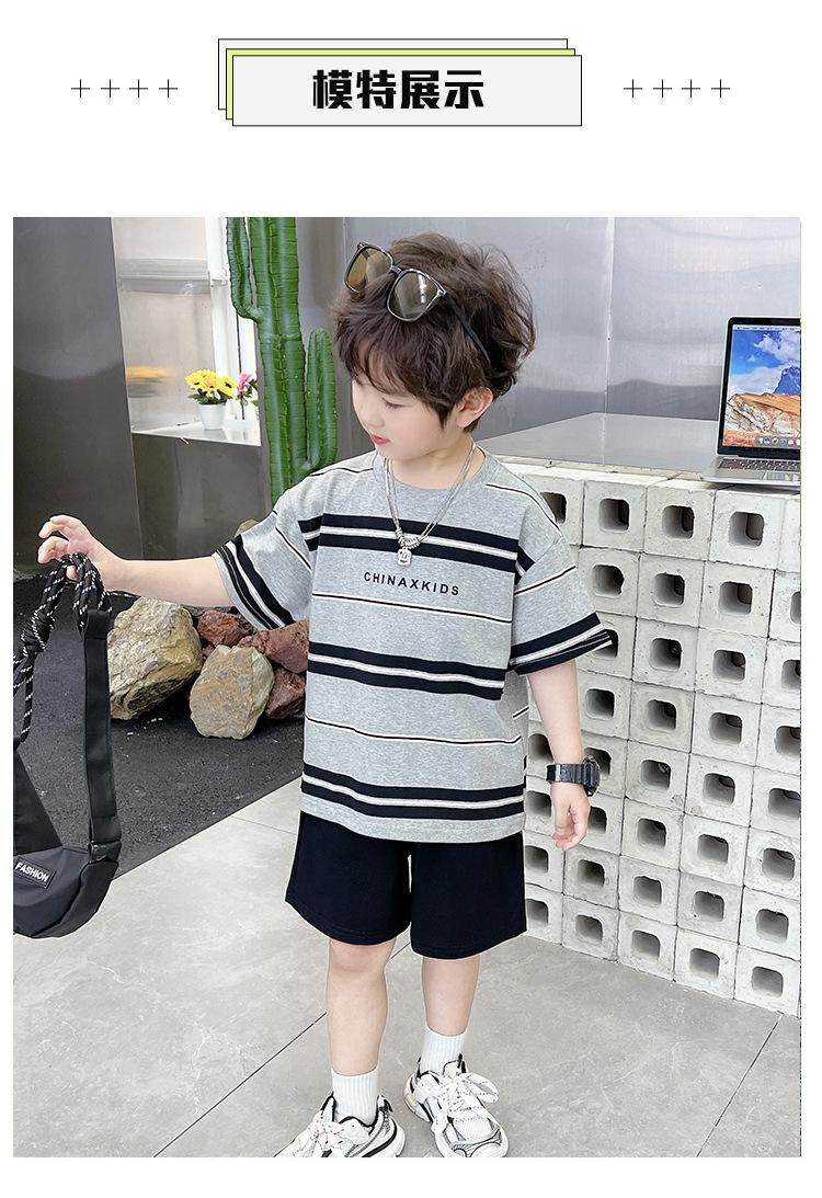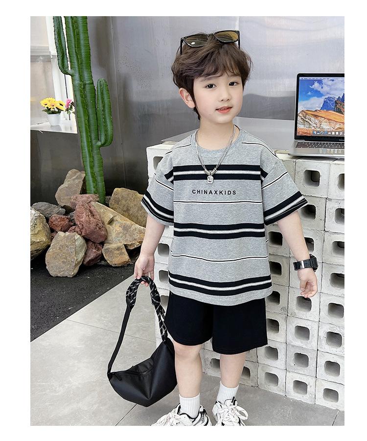 Traje de manga corta para niños, novedad de verano 2025, ropa a rayas para niños, traje informal de verano de dos piezas a la moda para bebés.