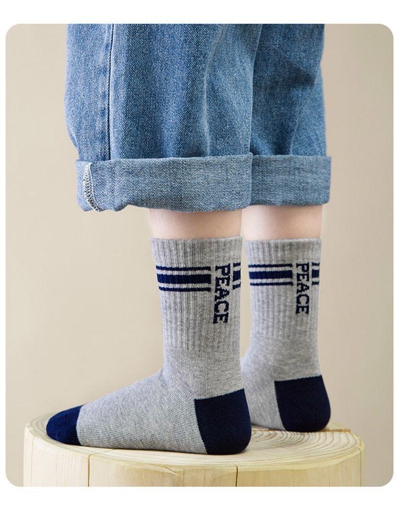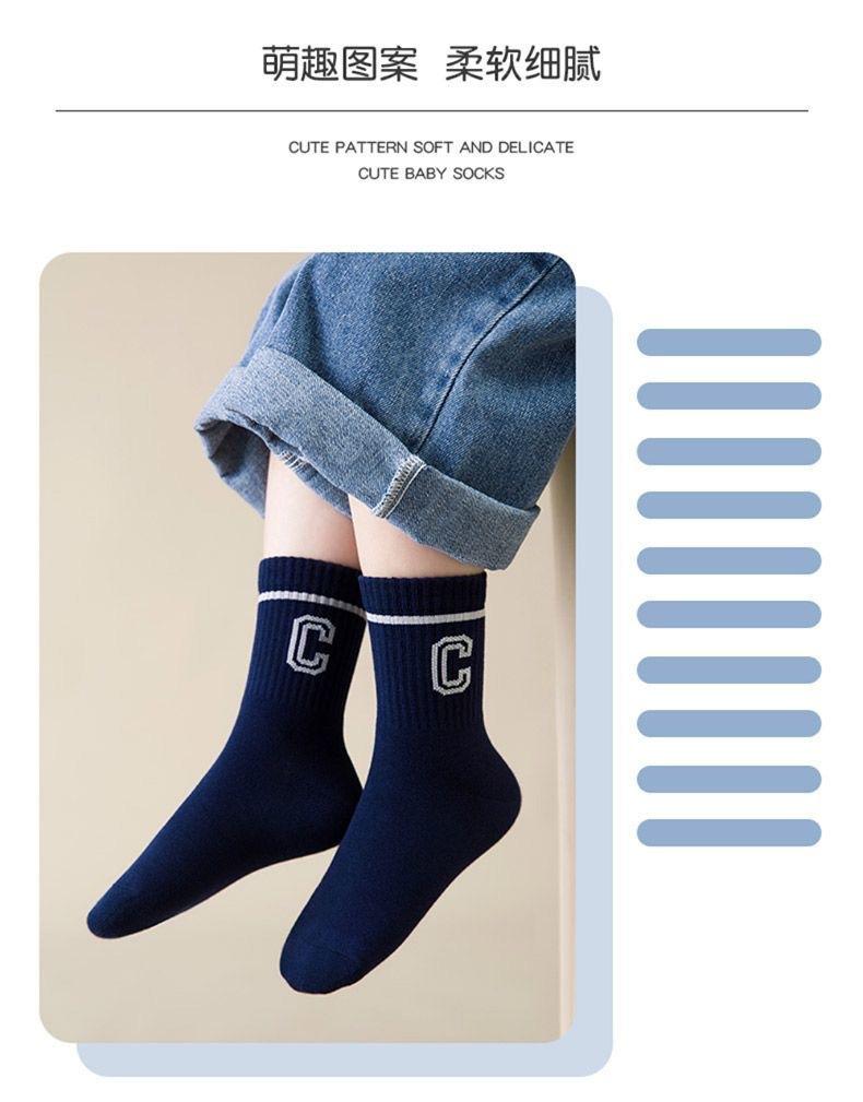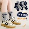 Calcetines para niños otoño e invierno nuevos calcetines de tubo transpirables para niños desodorantes absorbentes de sudor con letras a rayas moda calcetines deportivos medias