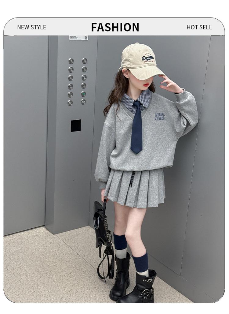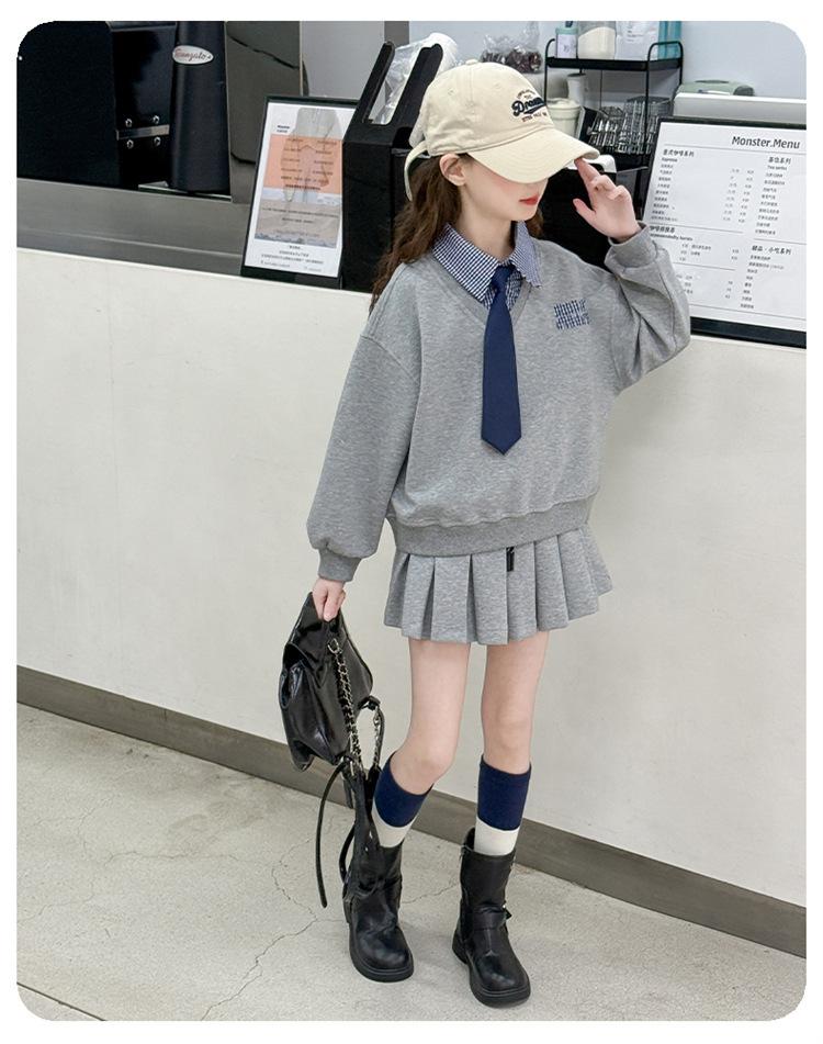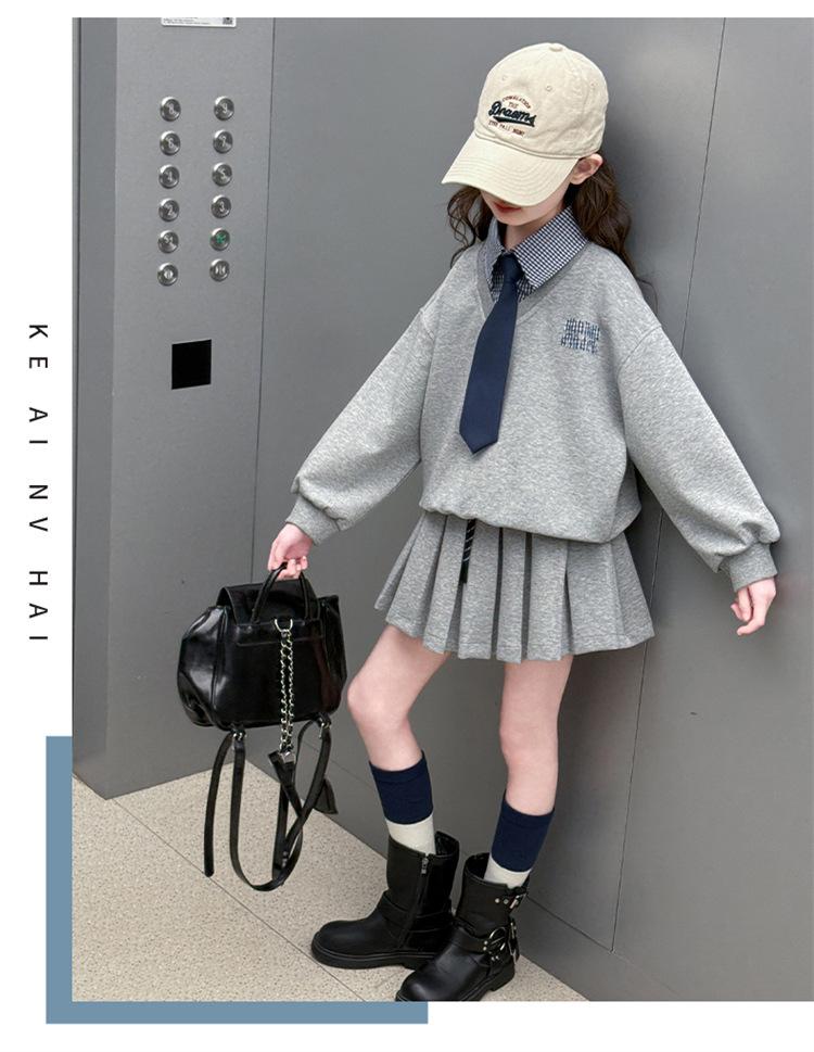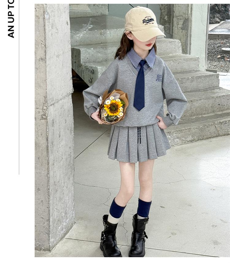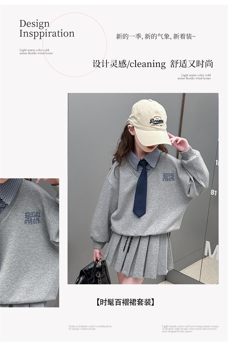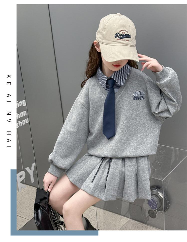 Compra Traje de estilo universitario para niñas primavera 2025 nuevo suéter falso de dos piezas para niños falda de niña grande conjunto de dos piezas al por mayor en Joom.pro