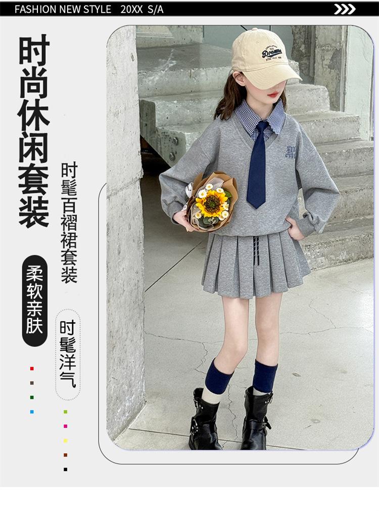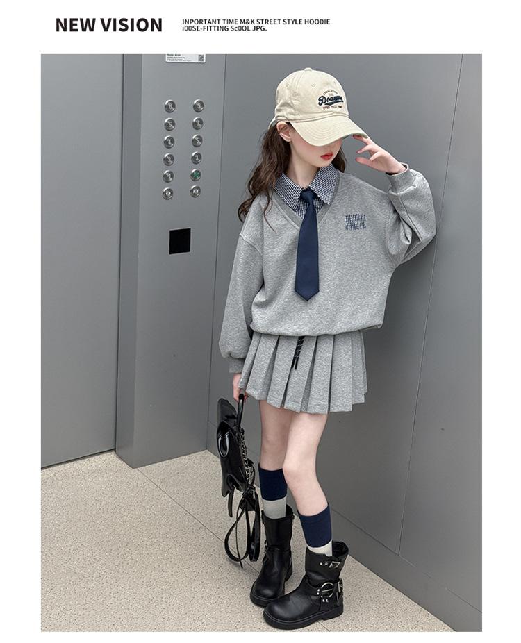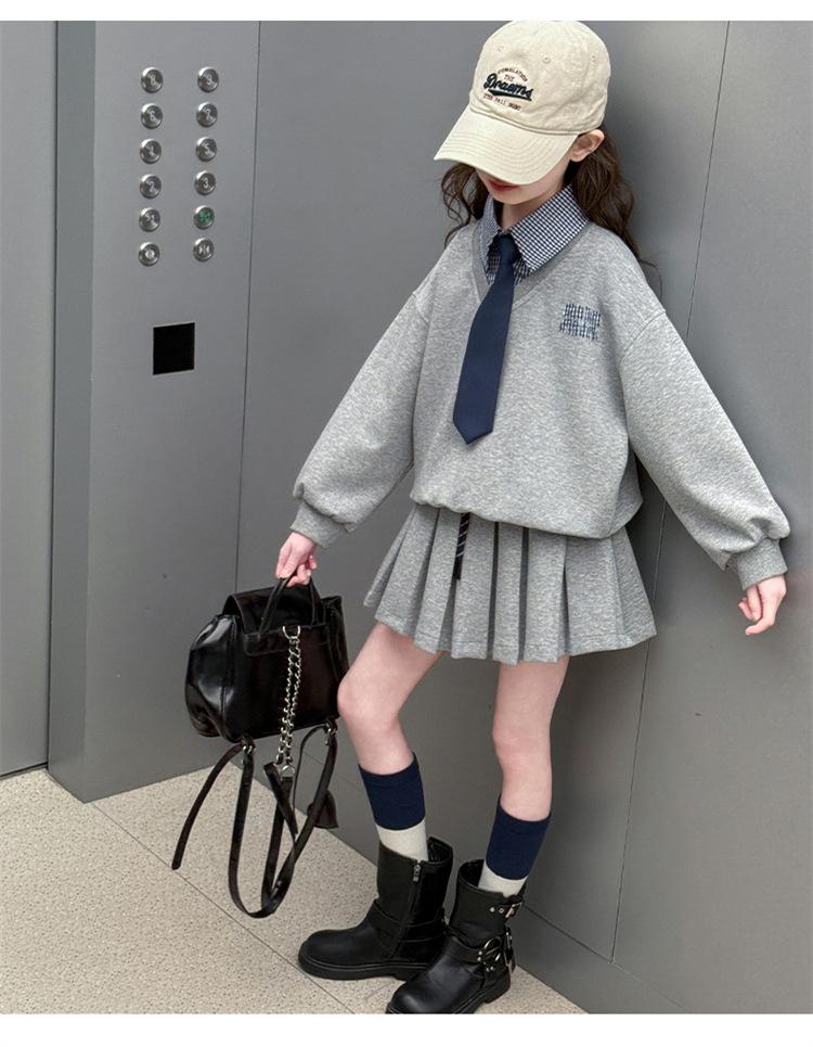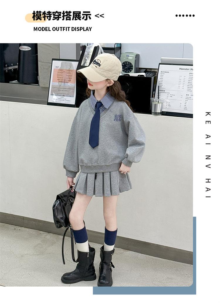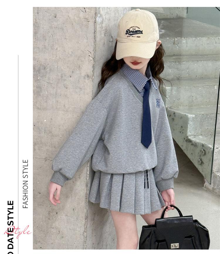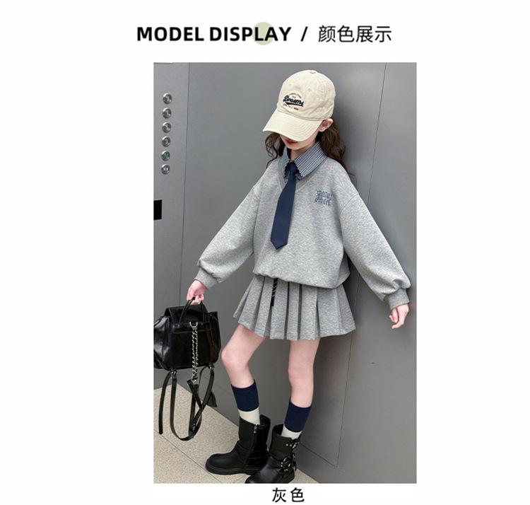 Compra Traje de estilo universitario para niñas primavera 2025 nuevo suéter falso de dos piezas para niños falda de niña grande conjunto de dos piezas al por mayor en Joom.pro