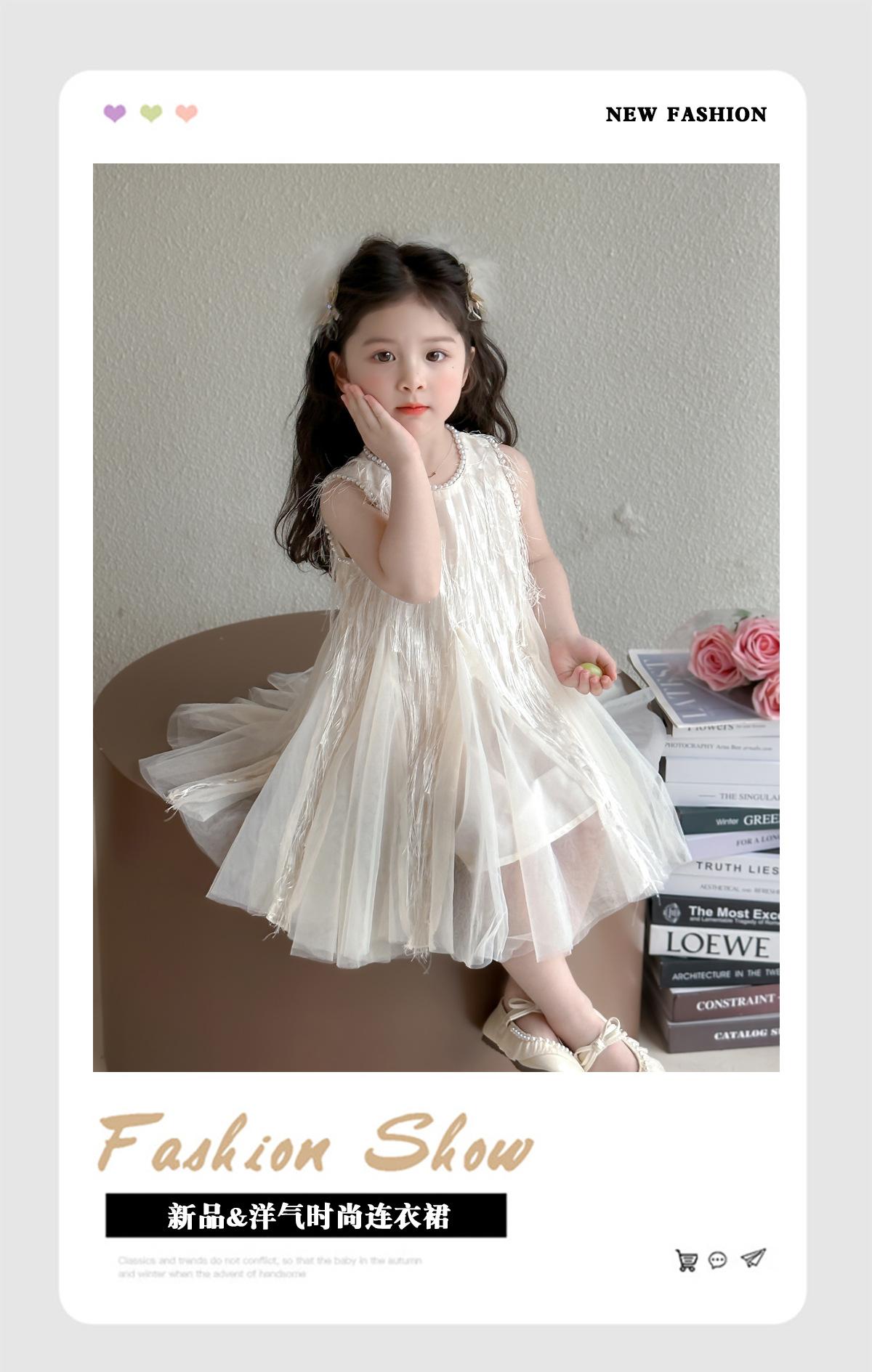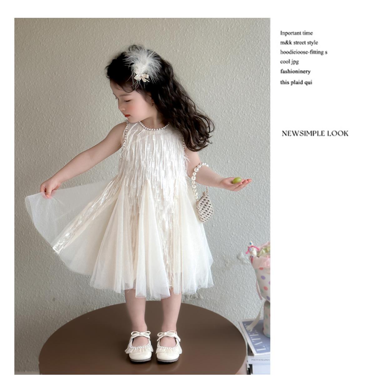 Vestido de Princesa Blanco con Flecos para Niñas 2025 Verano Nueva Moda Vestido Elegante para Niña Vestido de Verano para Niños